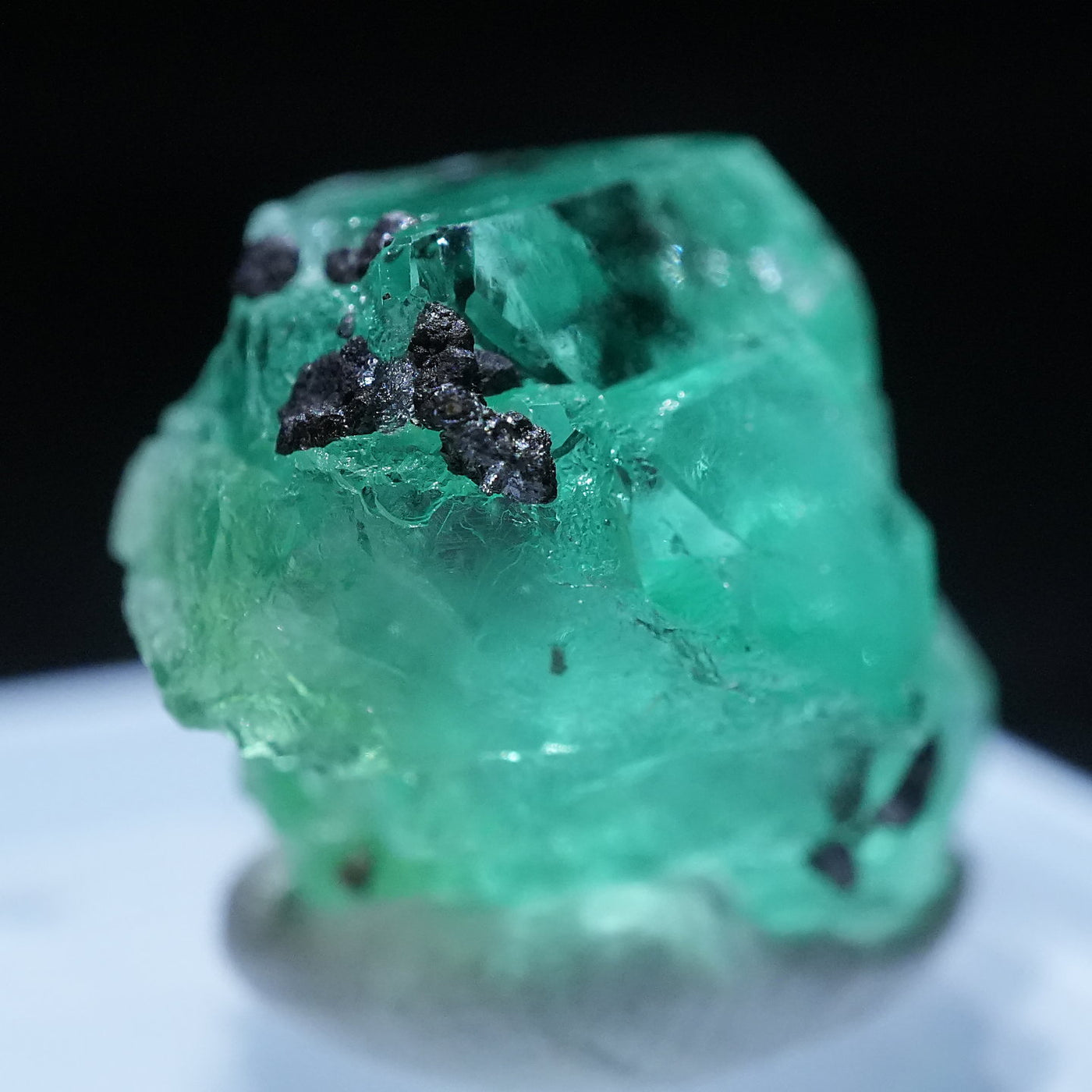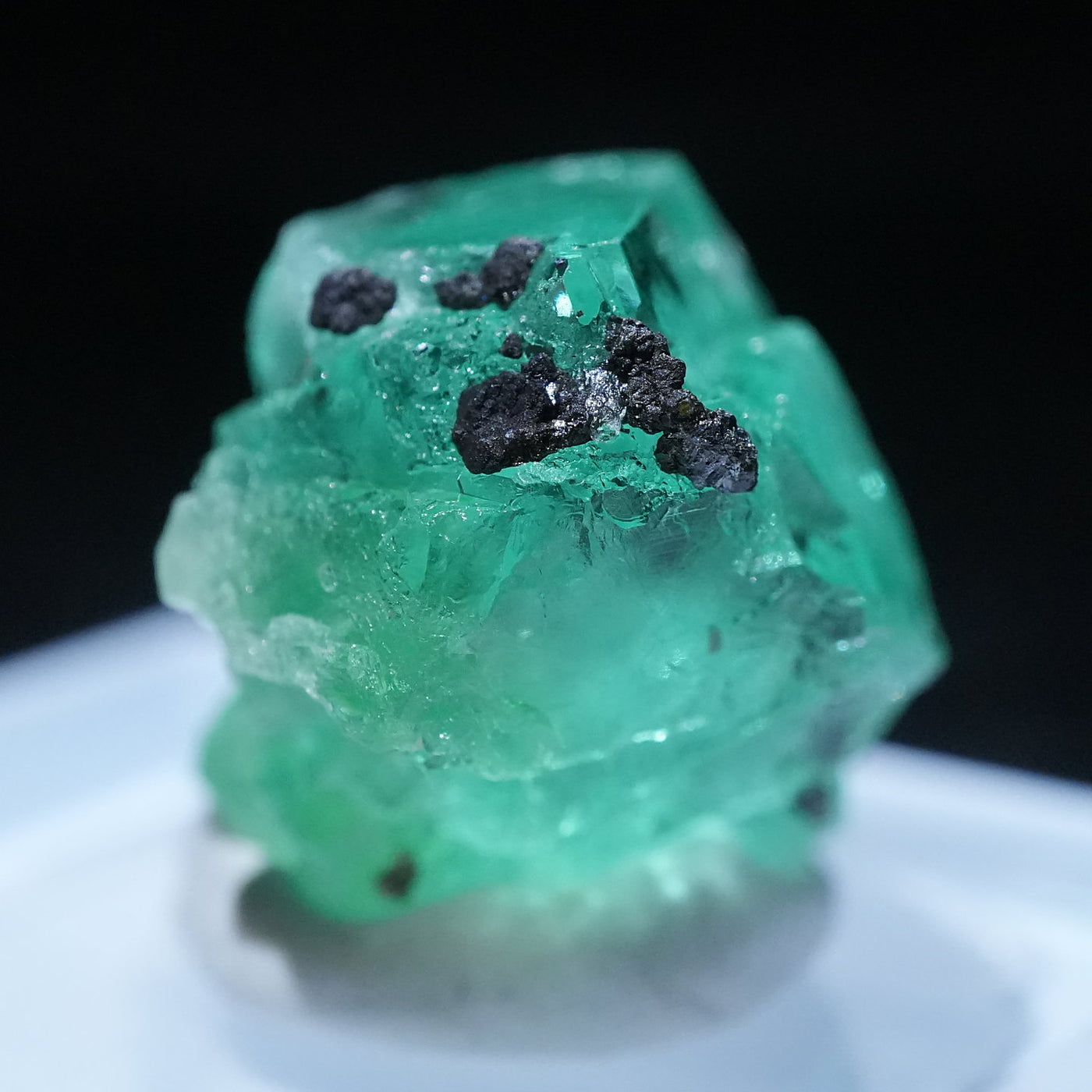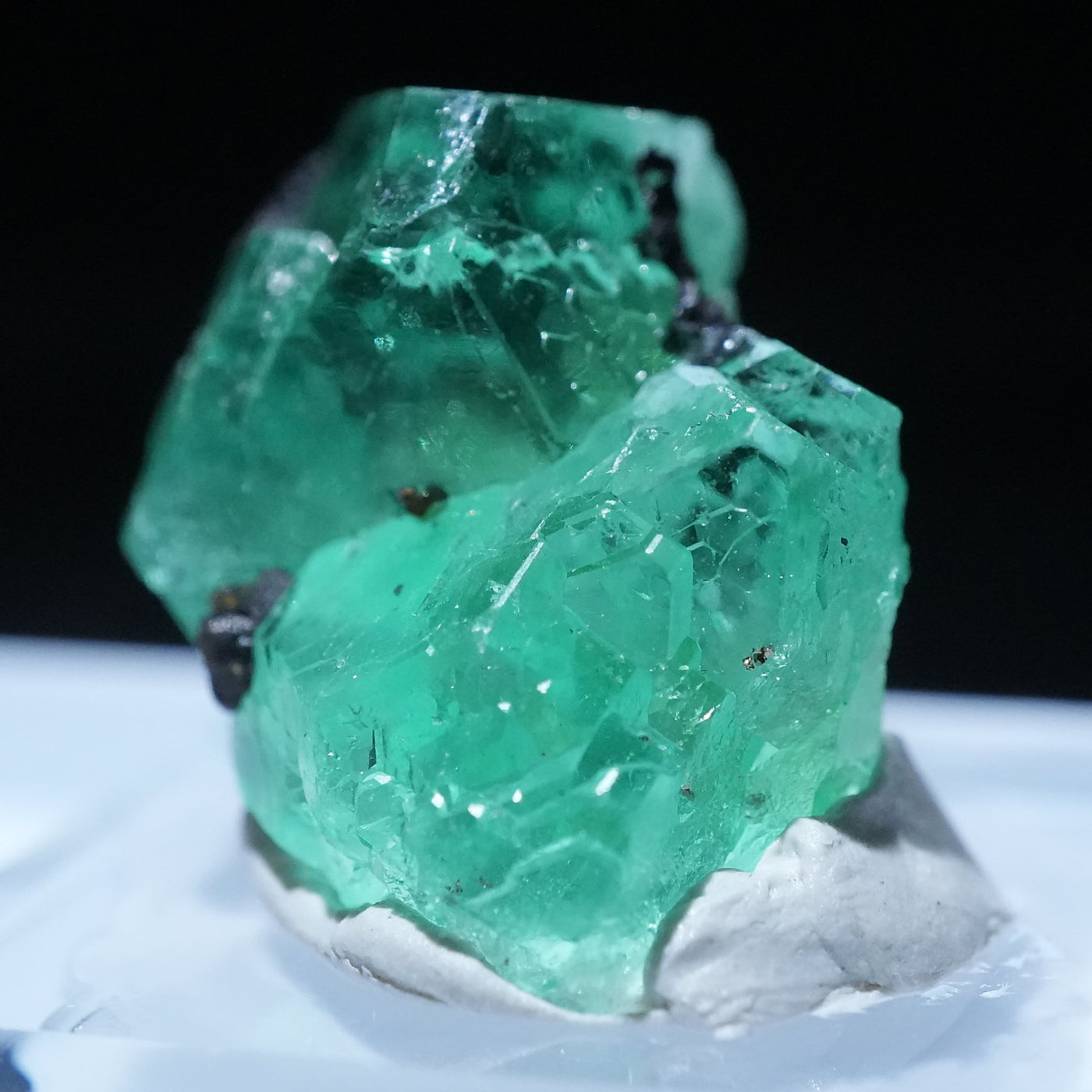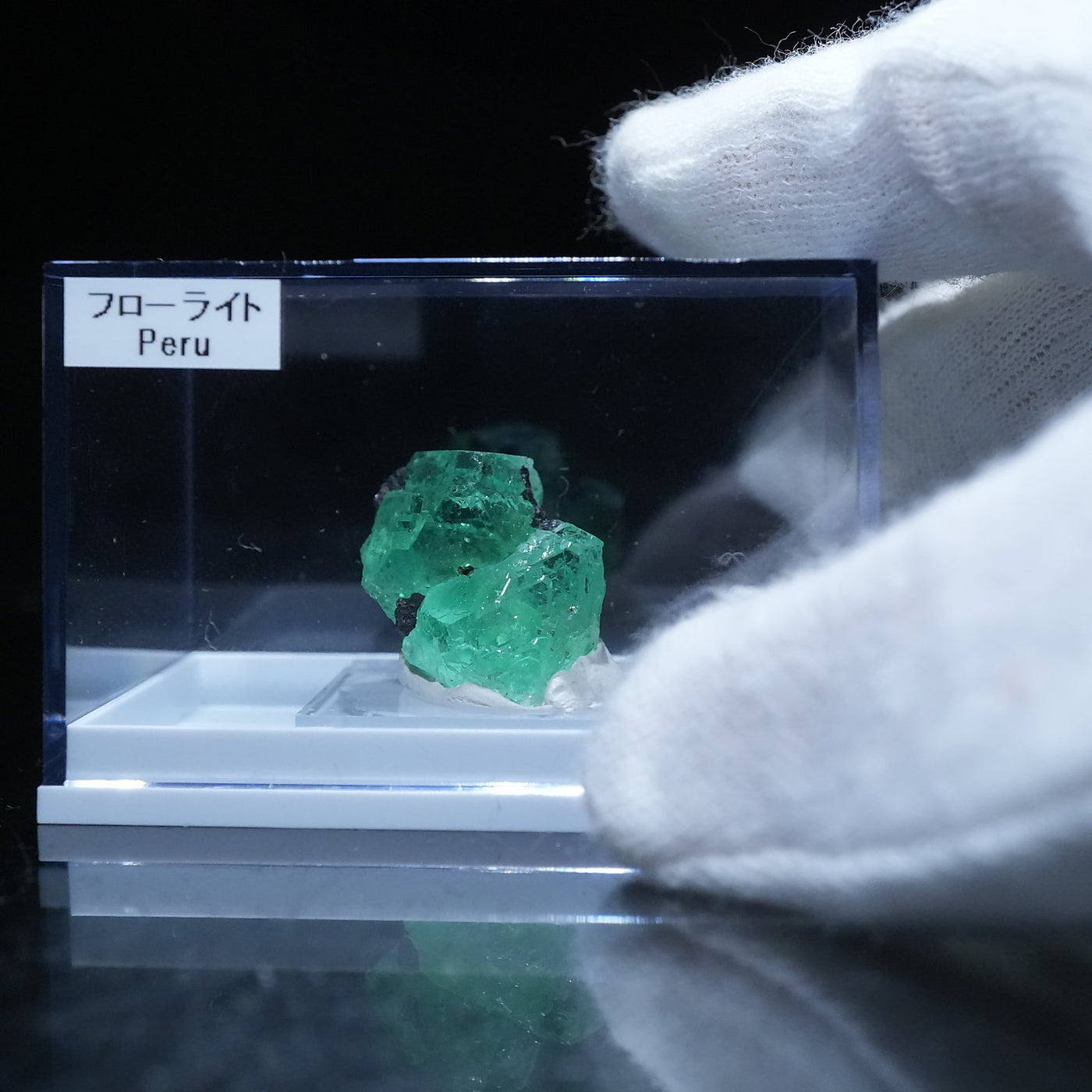美しいエメラルドグリーンに魅せられます。紫外線ライトを当てると蛍光します。