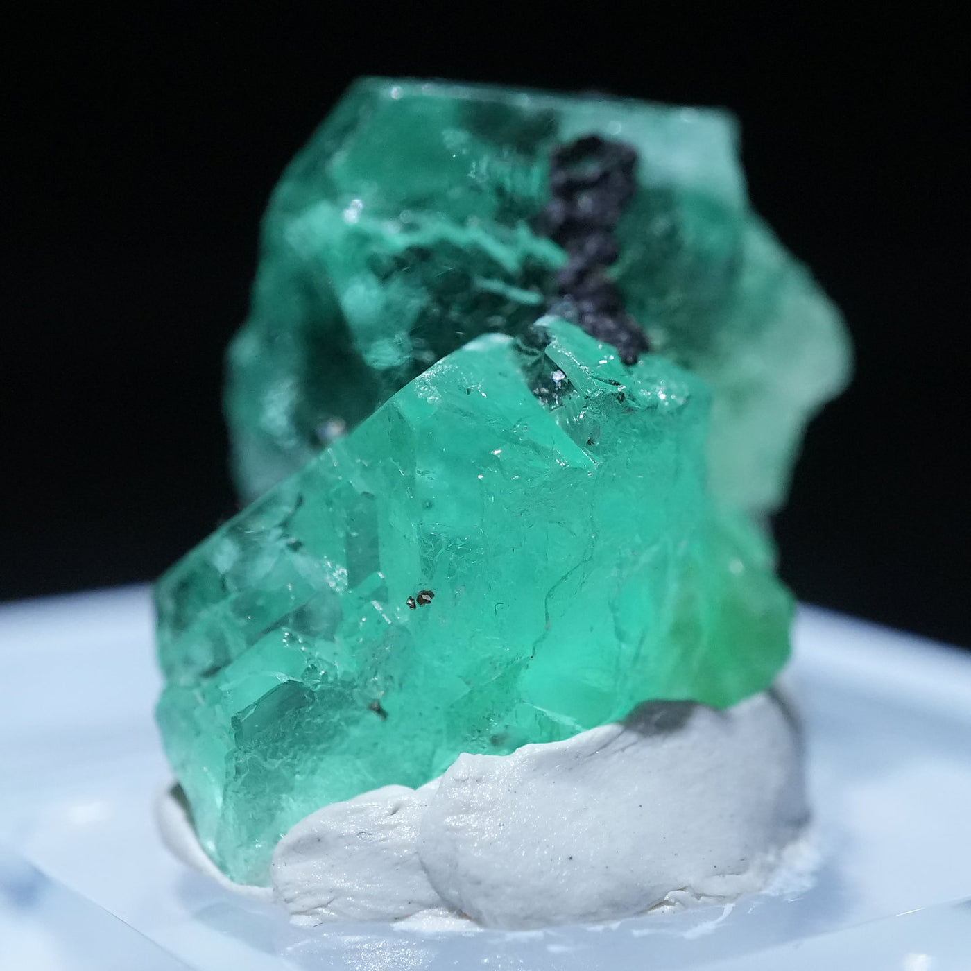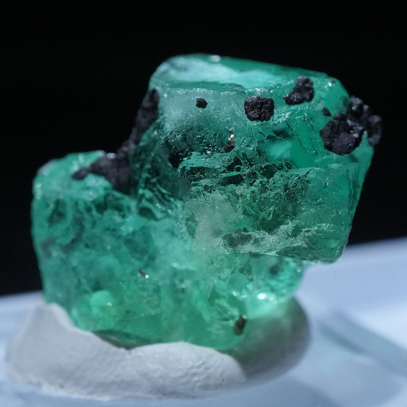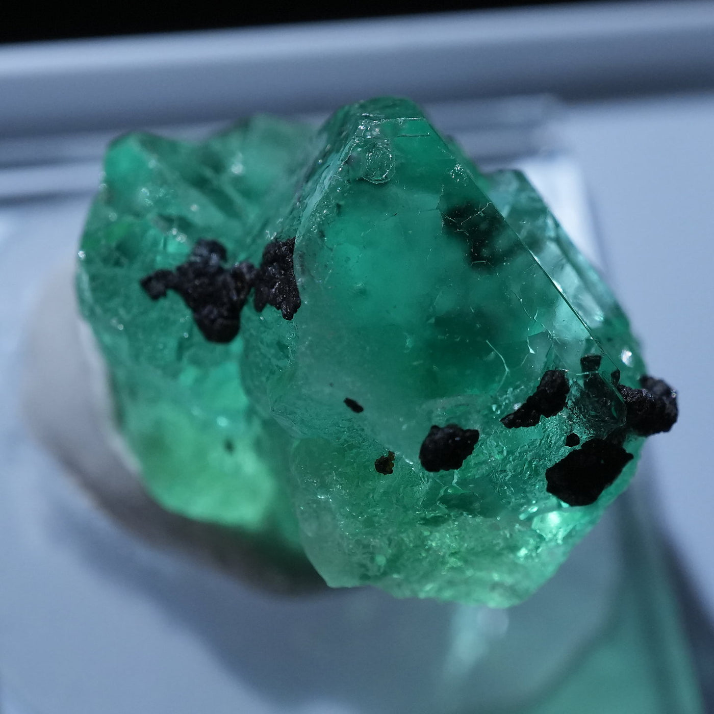 美しいエメラルドグリーンに魅せられます。紫外線ライトを当てると蛍光します。