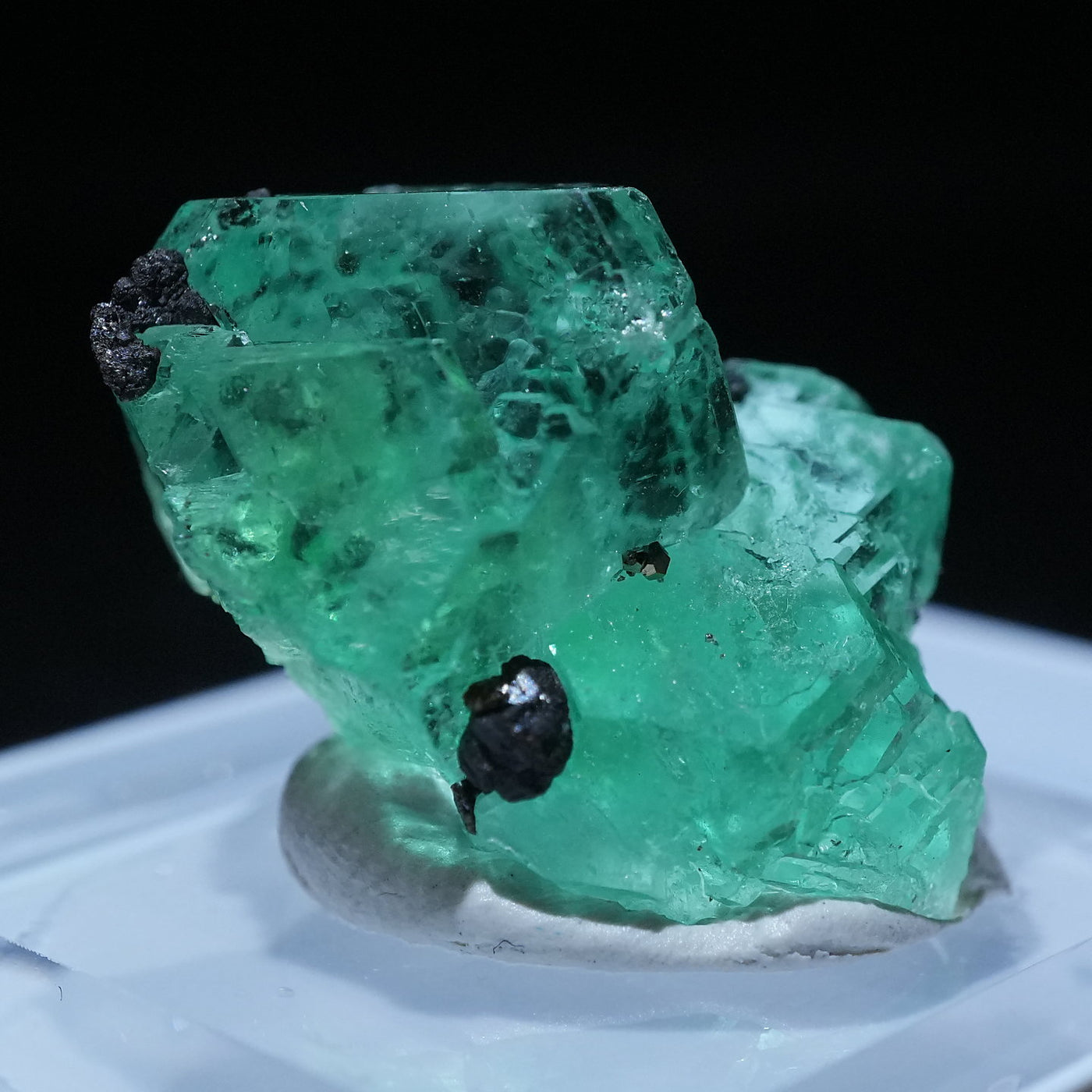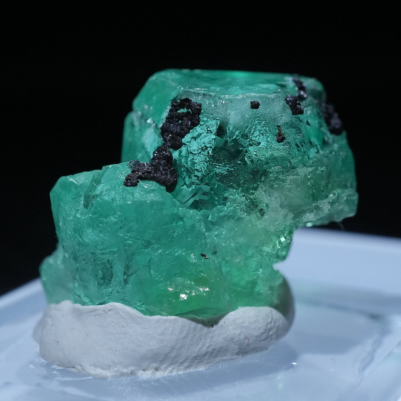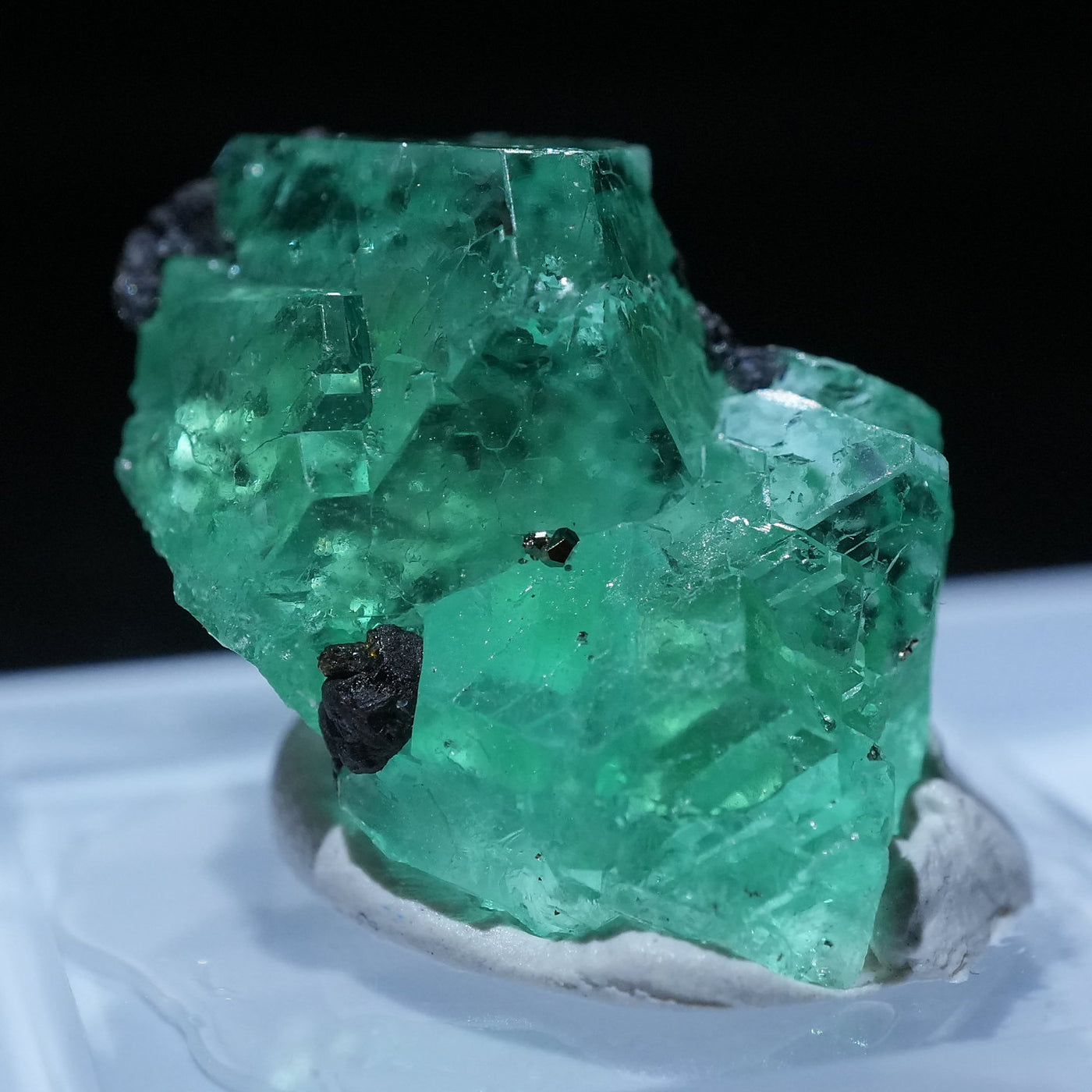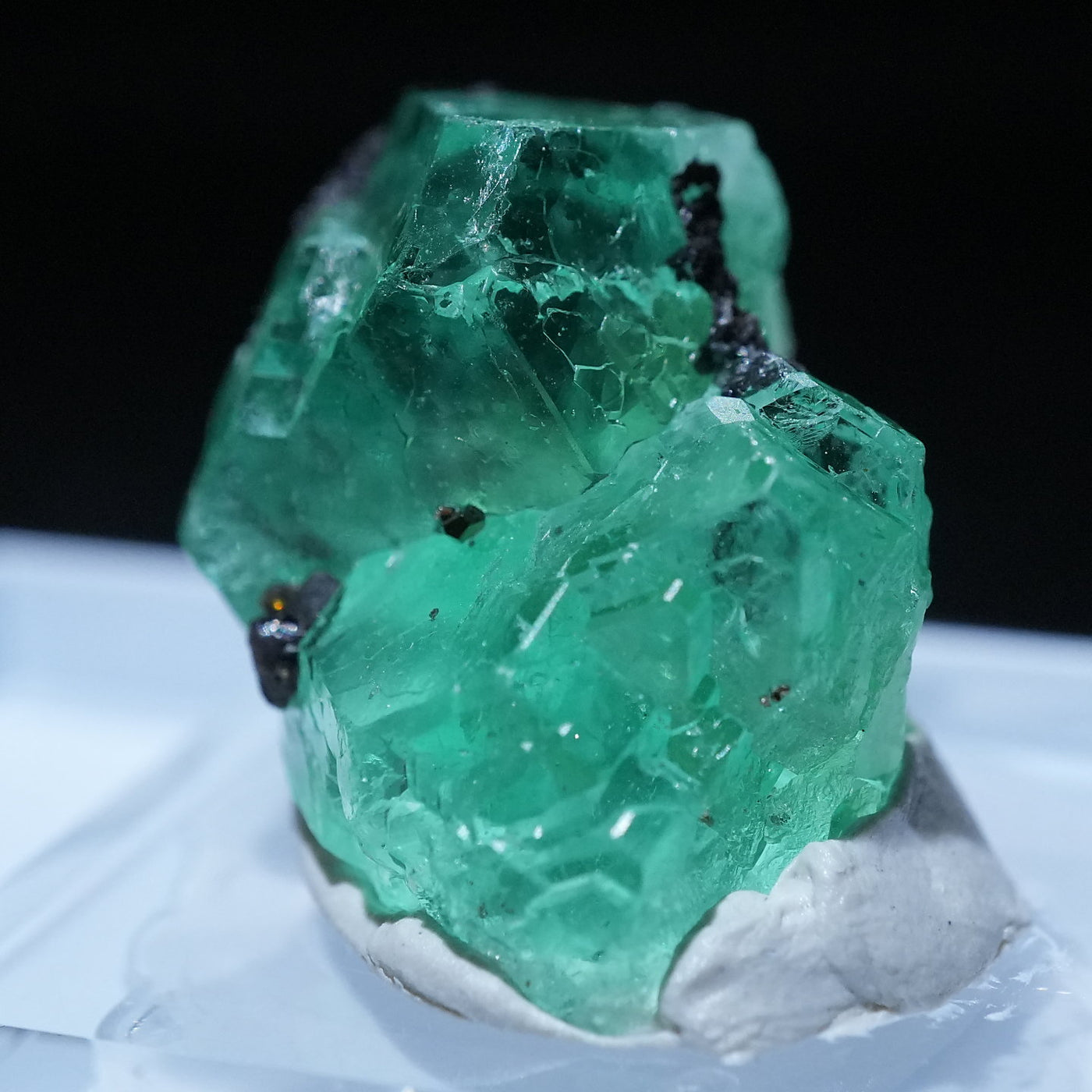 美しいエメラルドグリーンに魅せられます。紫外線ライトを当てると蛍光します。