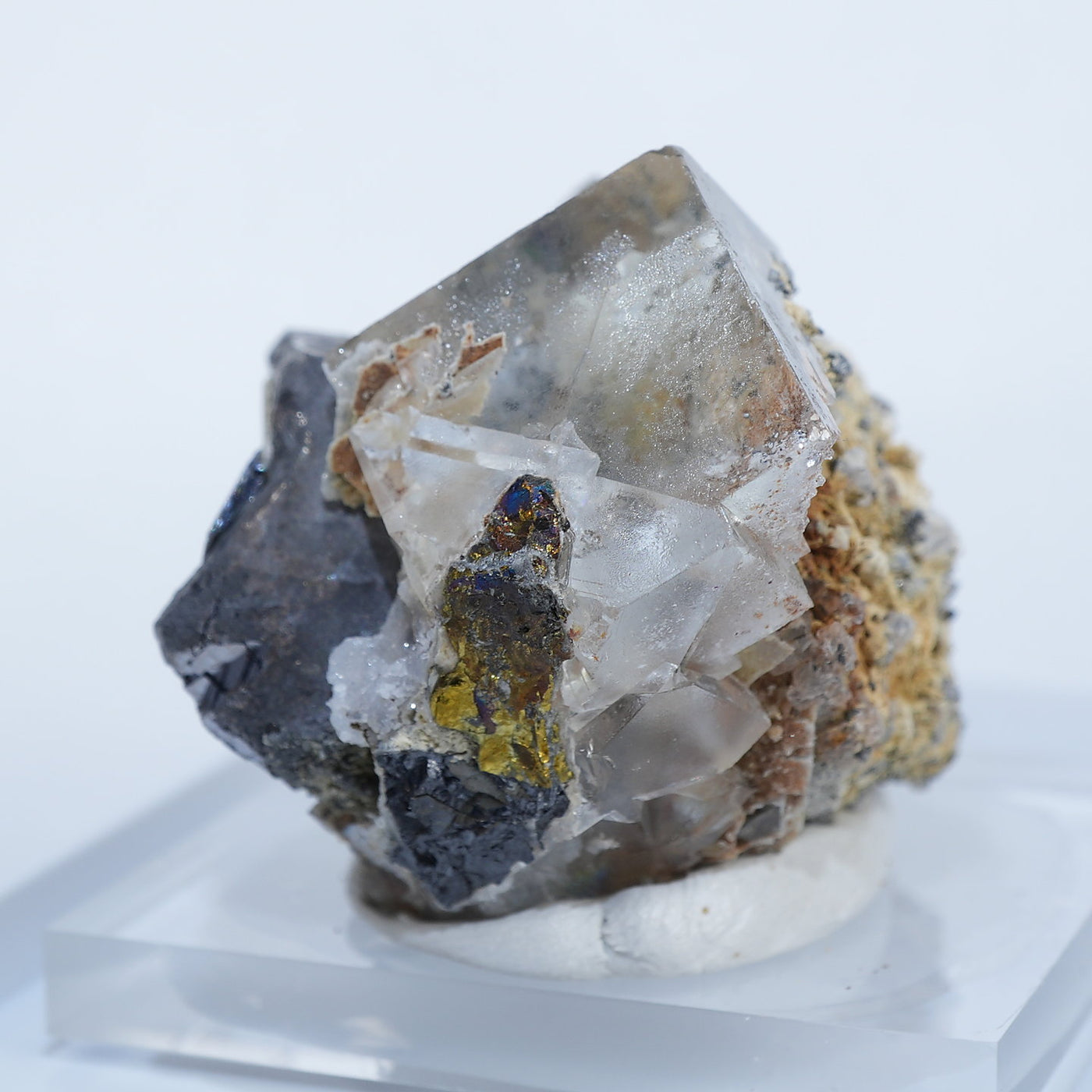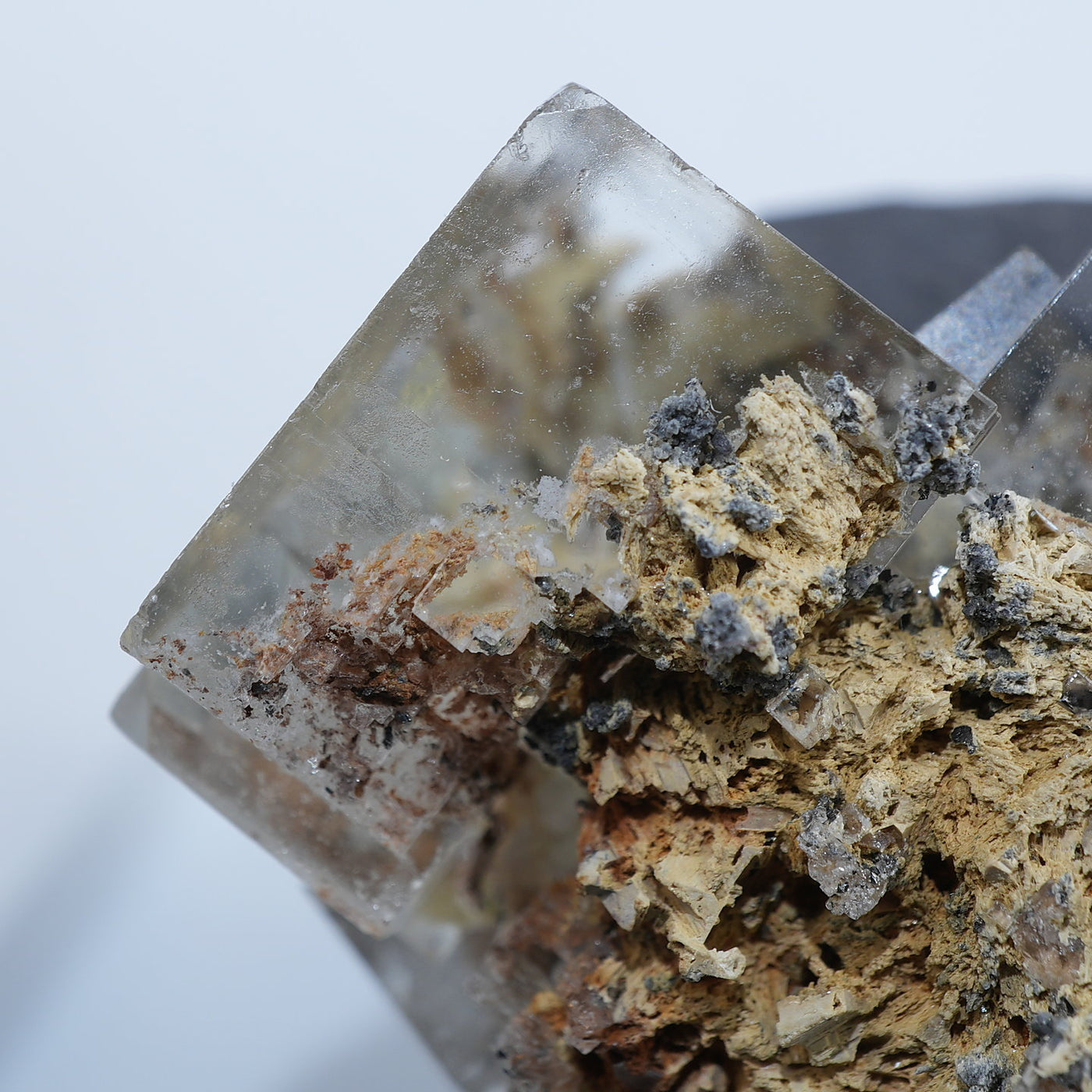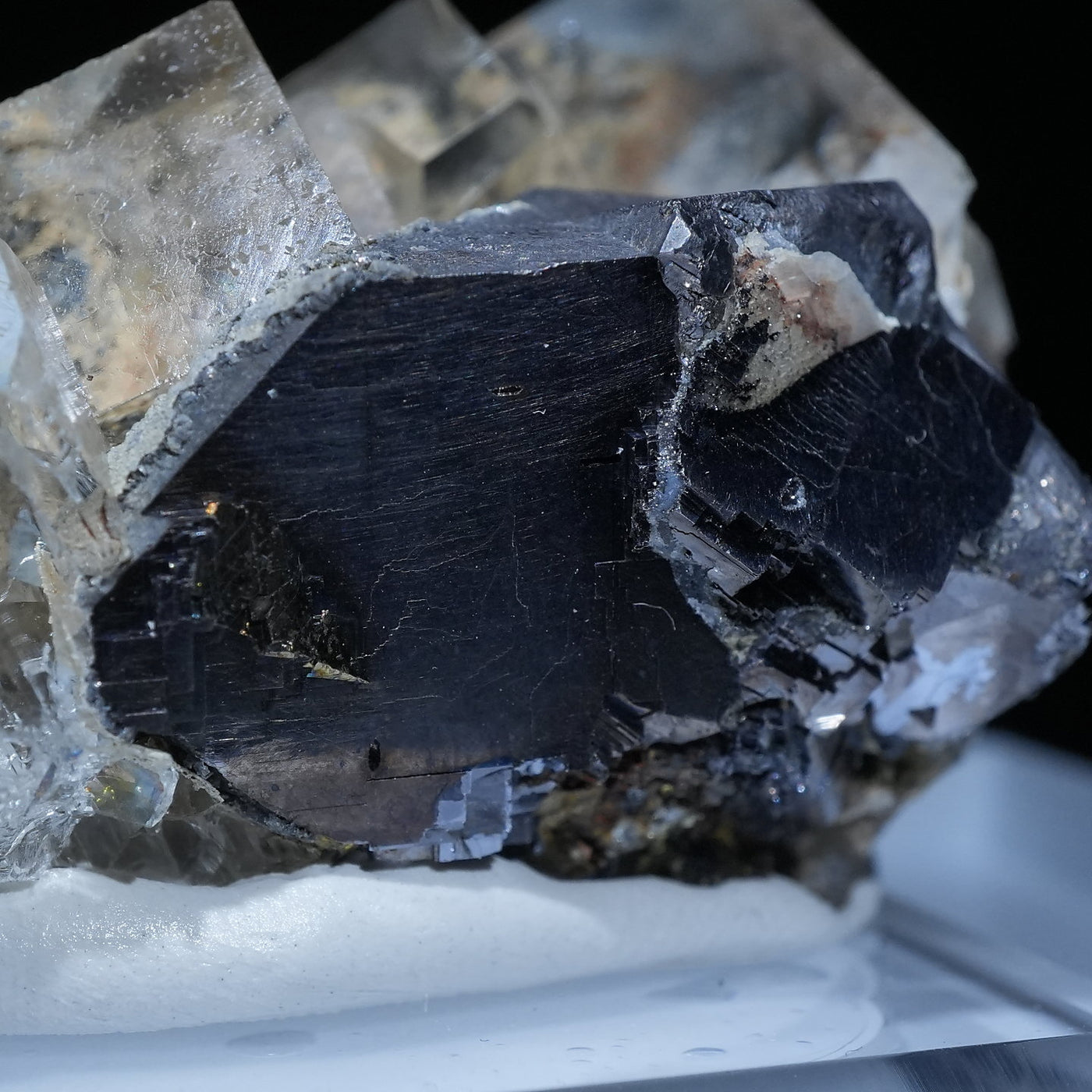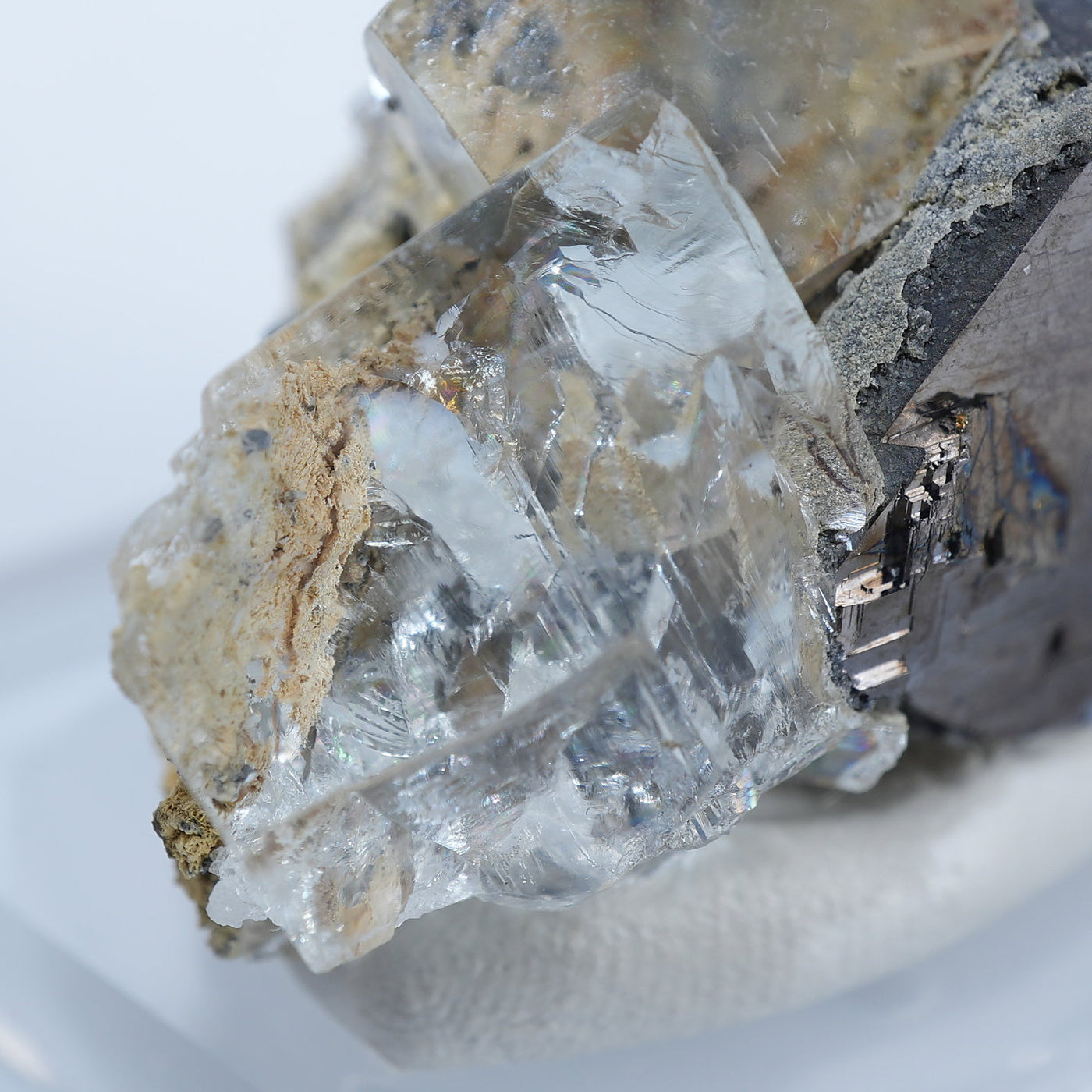 透明感のあるクリアカラーが目を引くフローライトにガレナが共生しています。フローライトは紫外線ライトを当てると蛍光します。※撮影に使用しているライトは、紫外線ライト365nm5wタイプです。