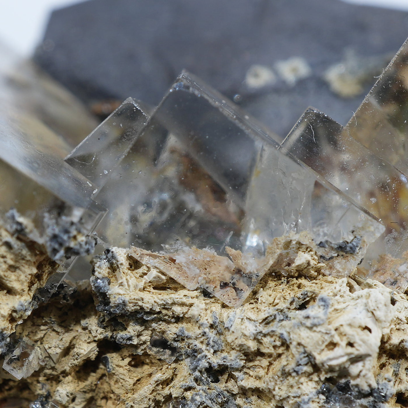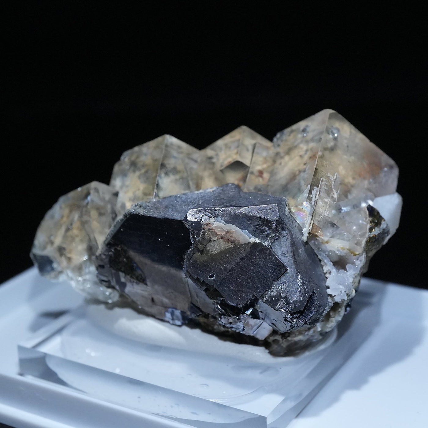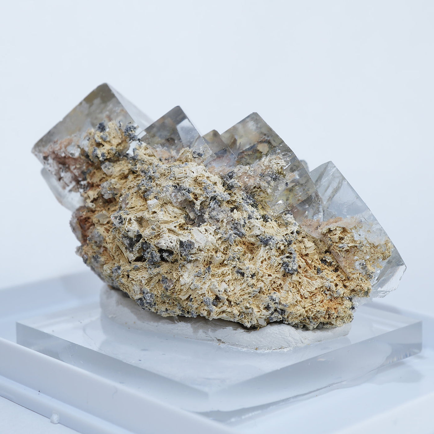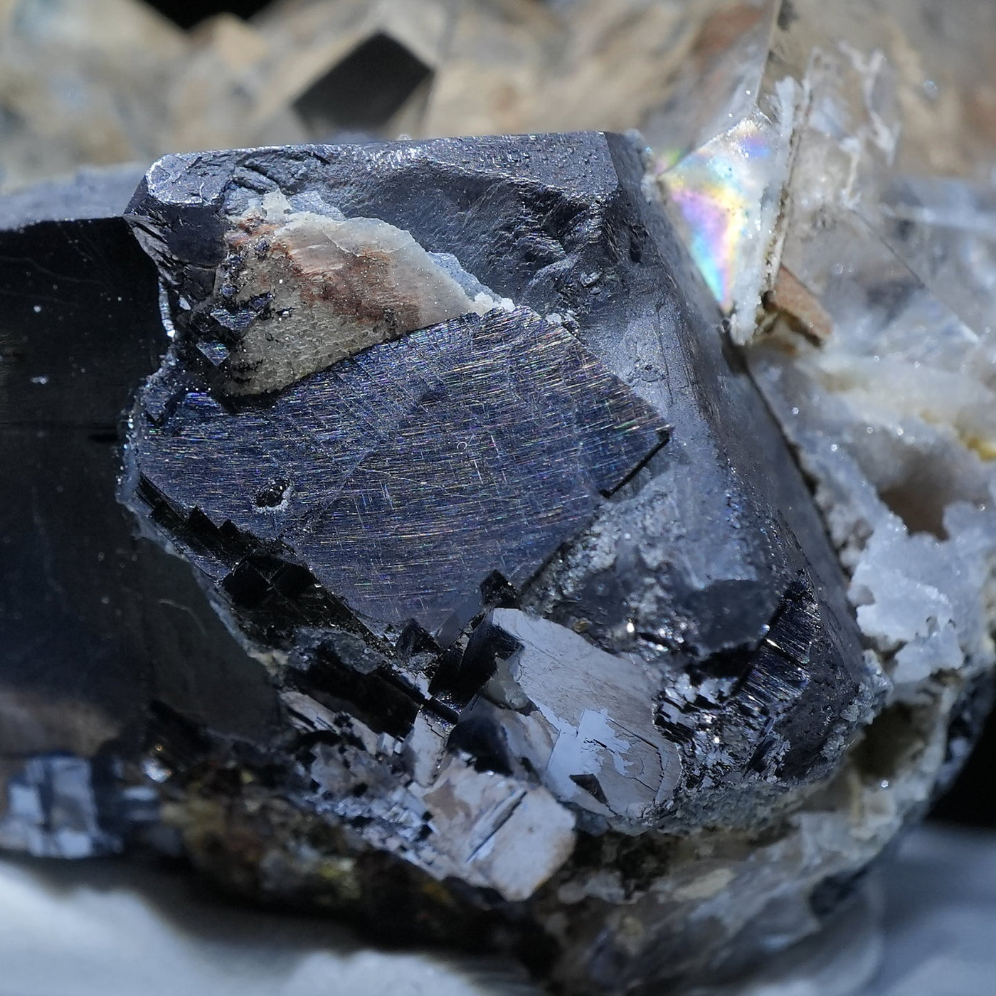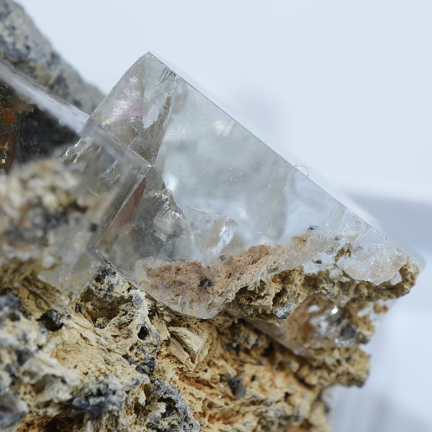 透明感のあるクリアカラーが目を引くフローライトにガレナが共生しています。フローライトは紫外線ライトを当てると蛍光します。※撮影に使用しているライトは、紫外線ライト365nm5wタイプです。