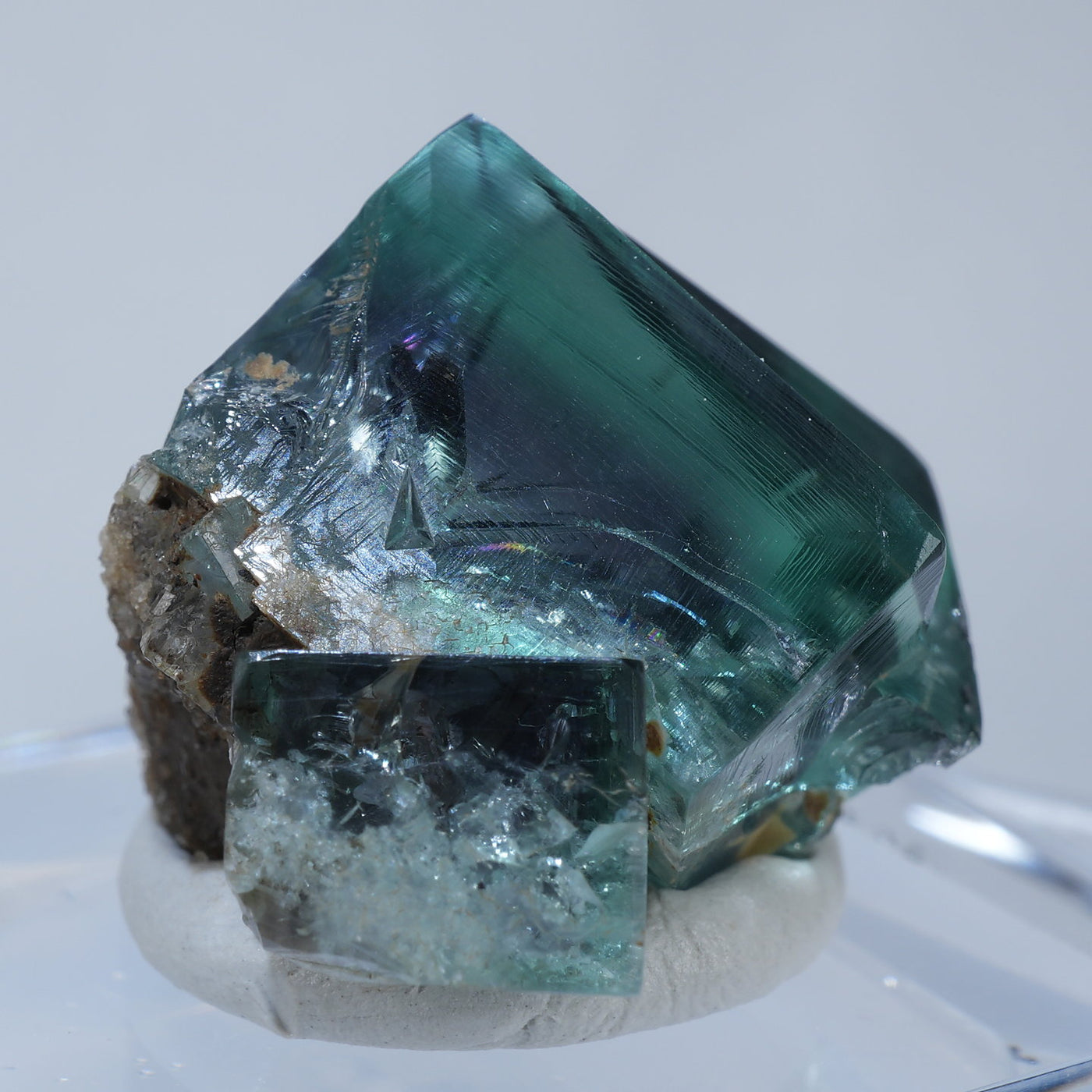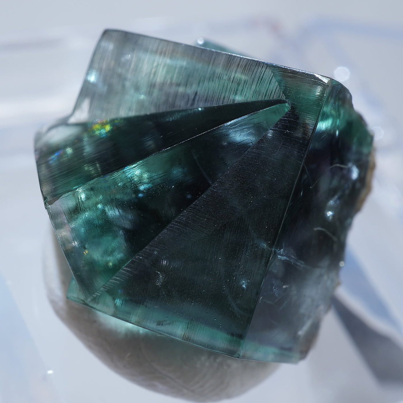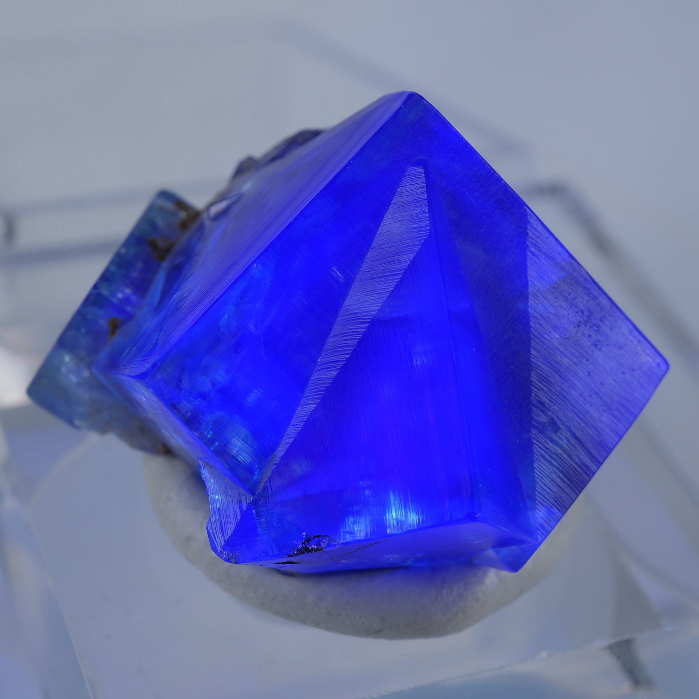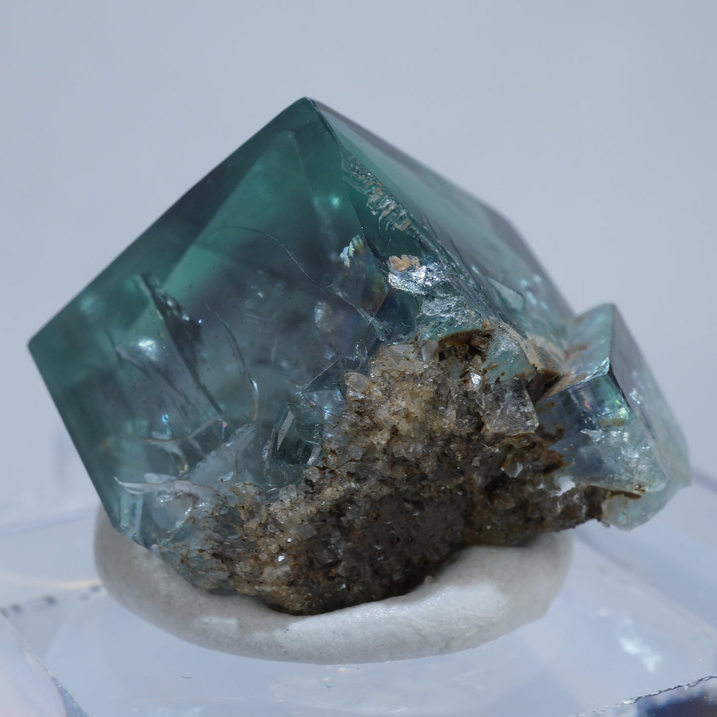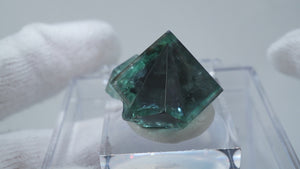 艶やかで透明感があります。深みのあるグリーンが美しい良質な標本です。光を透過させるとパープルのゾーニングが際立ちます。紫外線ライトを当てると強く蛍光します。※撮影に使用しているライトは、紫外線ライト365nm5wタイプです。