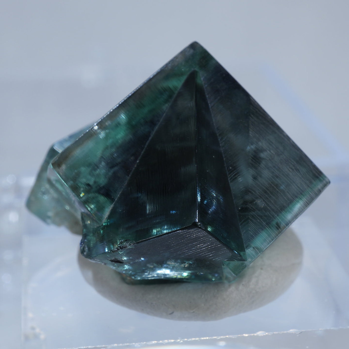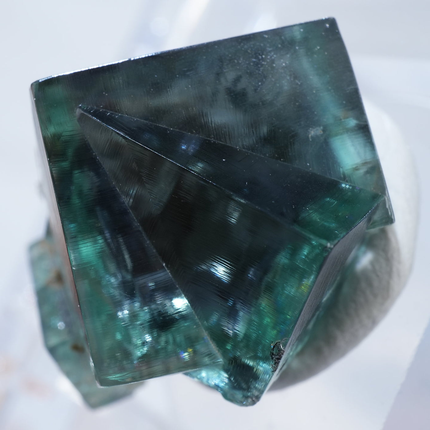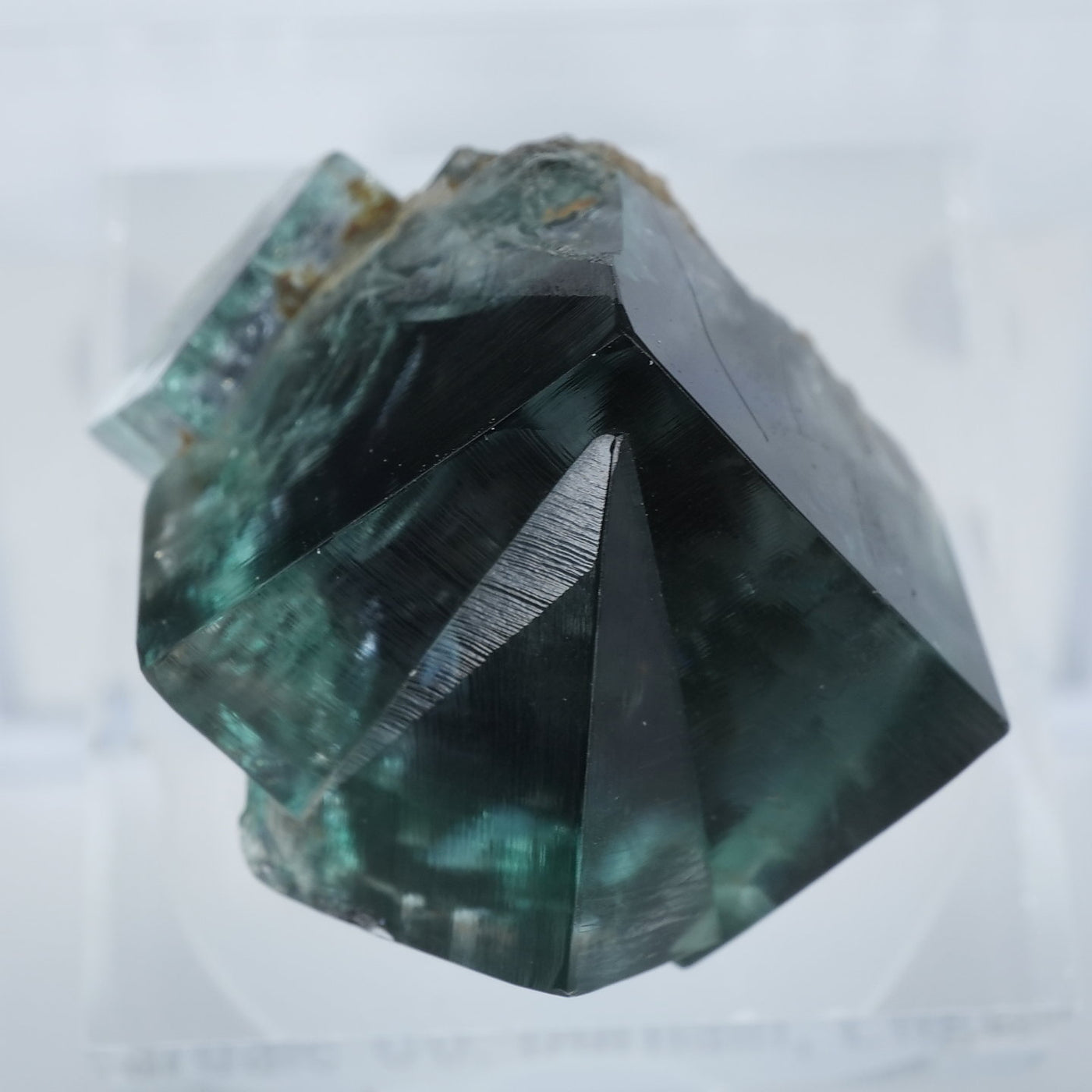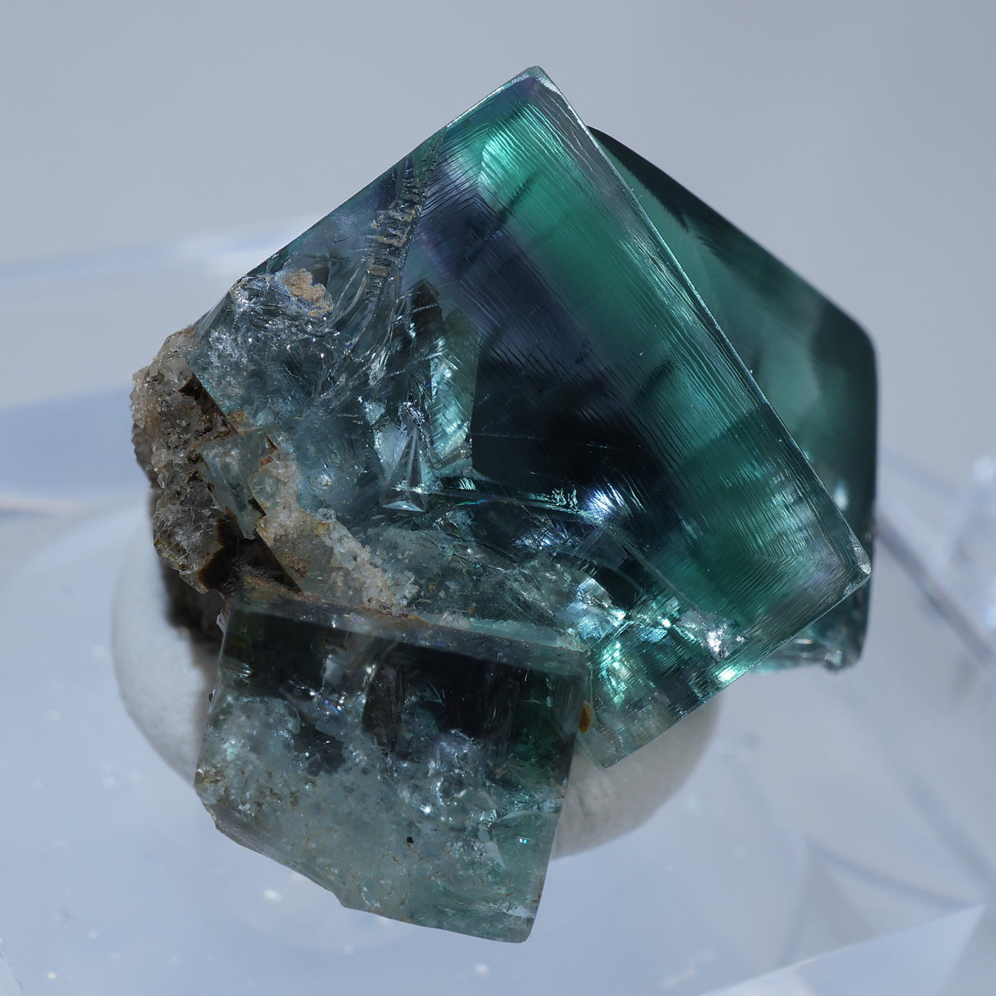 艶やかで透明感があります。深みのあるグリーンが美しい良質な標本です。光を透過させるとパープルのゾーニングが際立ちます。紫外線ライトを当てると強く蛍光します。※撮影に使用しているライトは、紫外線ライト365nm5wタイプです。