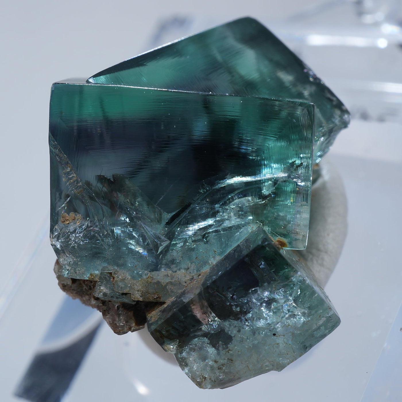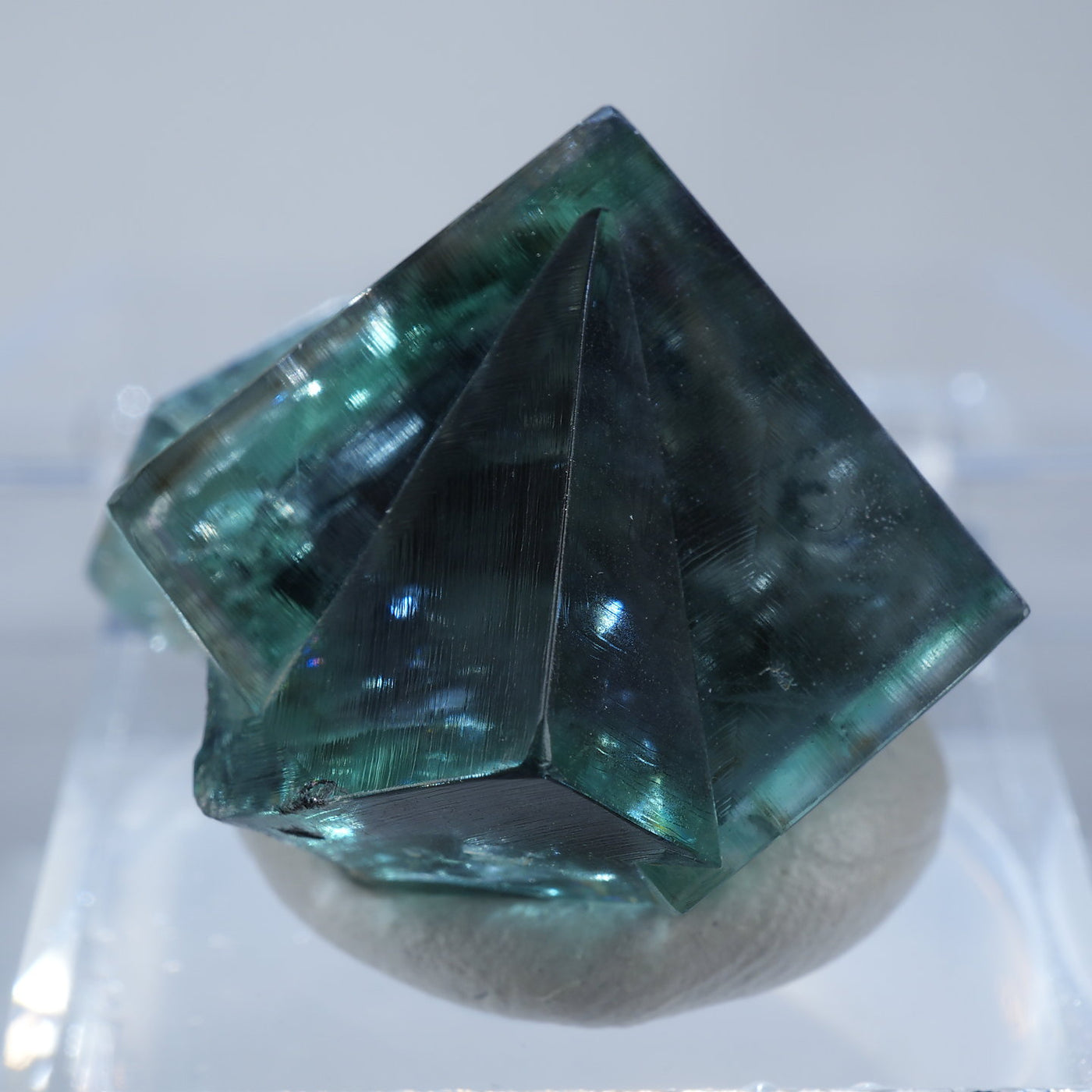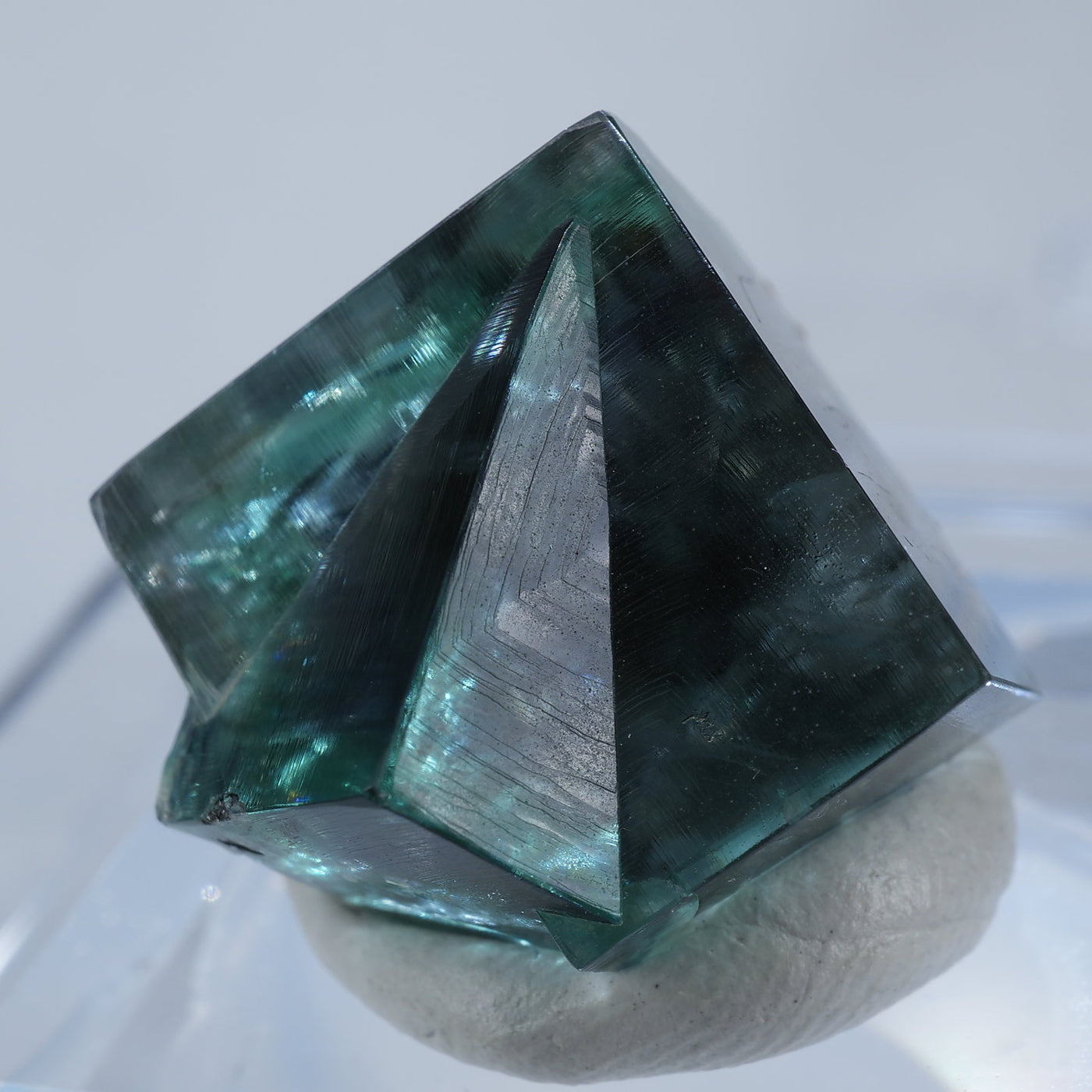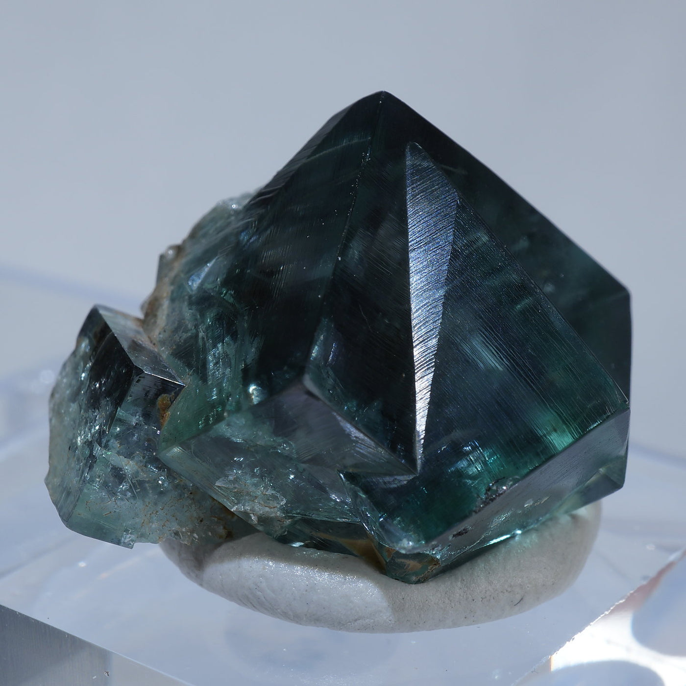 艶やかで透明感があります。深みのあるグリーンが美しい良質な標本です。光を透過させるとパープルのゾーニングが際立ちます。紫外線ライトを当てると強く蛍光します。※撮影に使用しているライトは、紫外線ライト365nm5wタイプです。