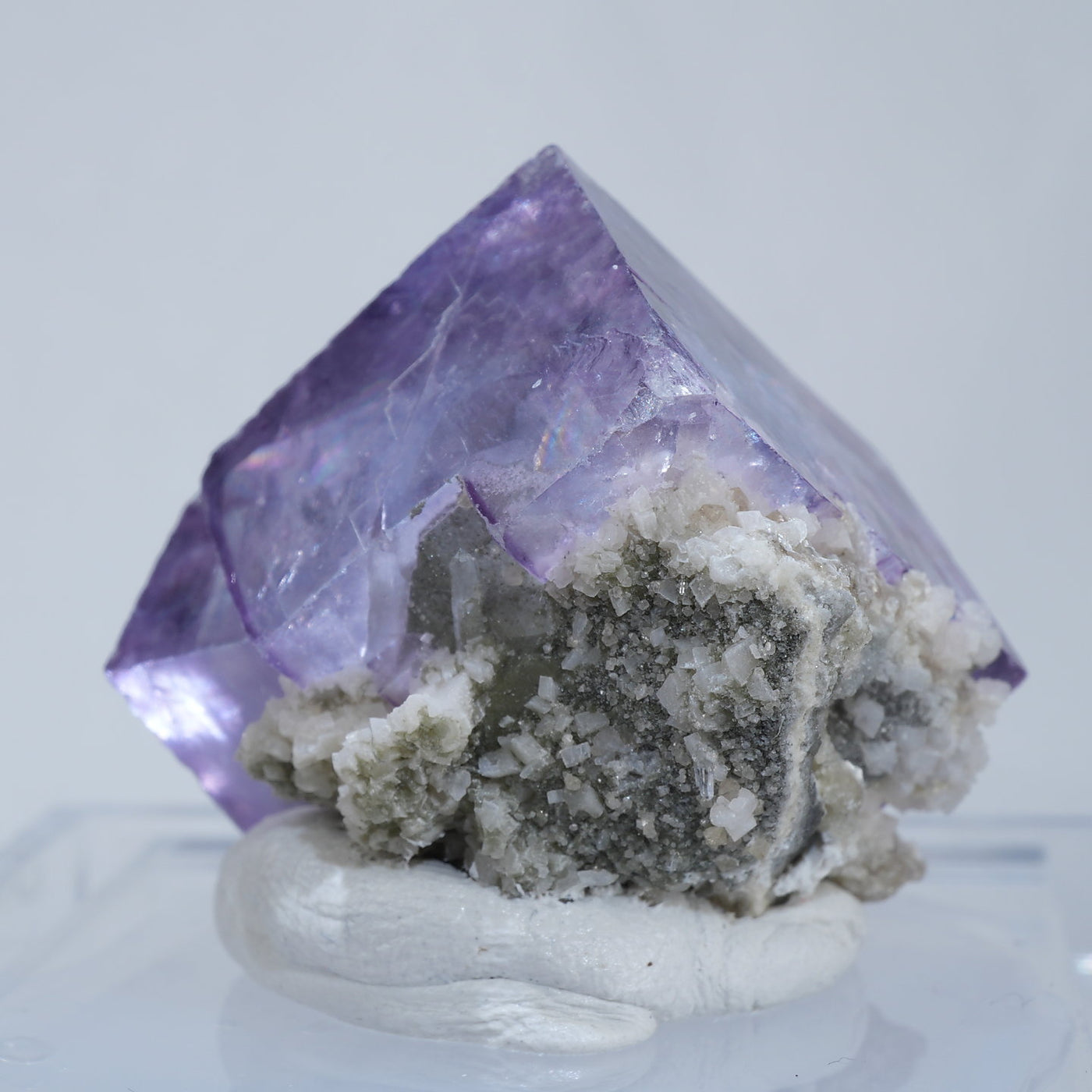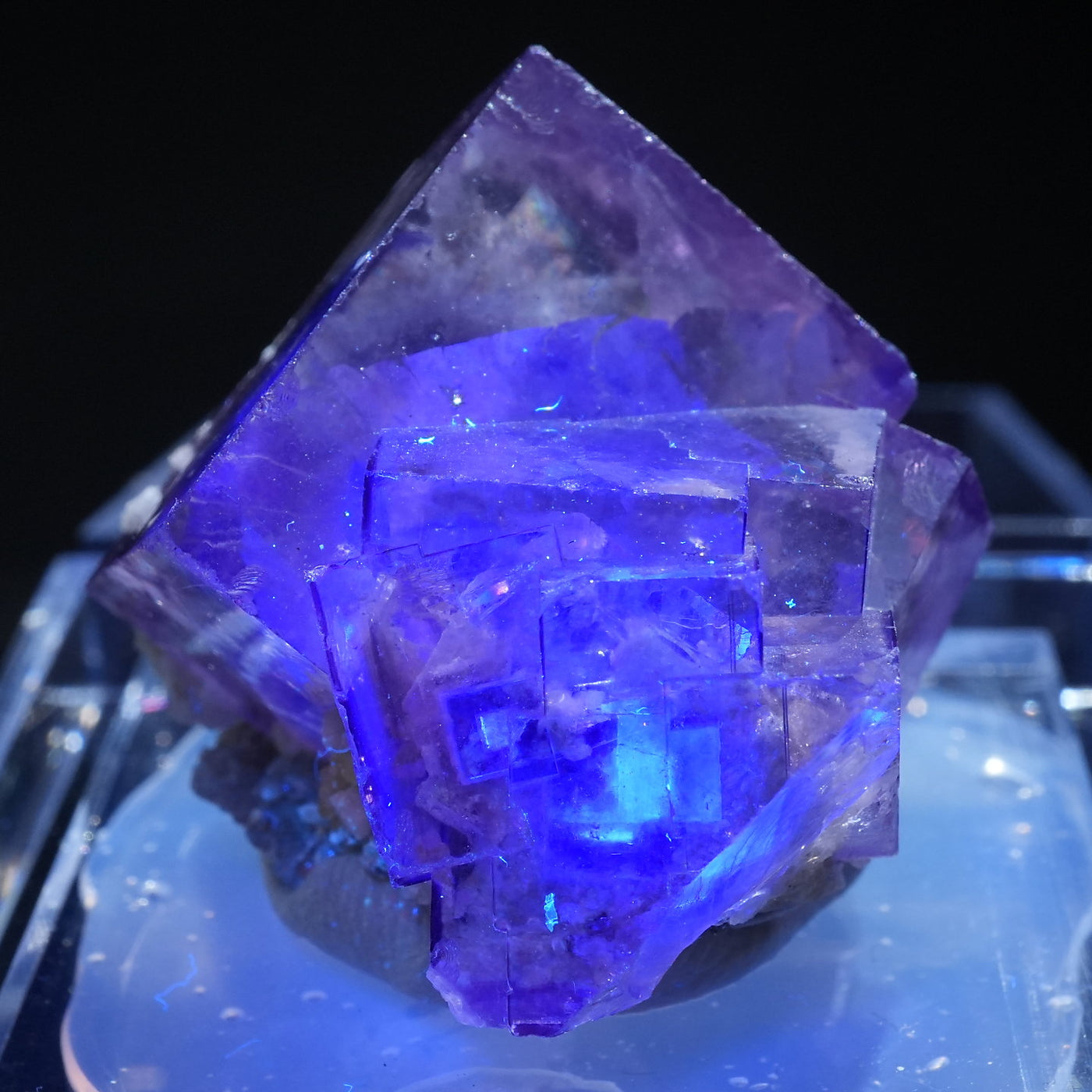 シャープなエッジと艶やかさ、さらに透明感もある良質な標本です。紫外線を当てると綺麗に蛍光します。