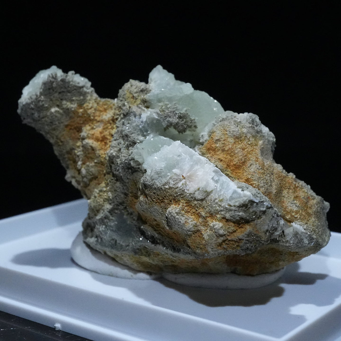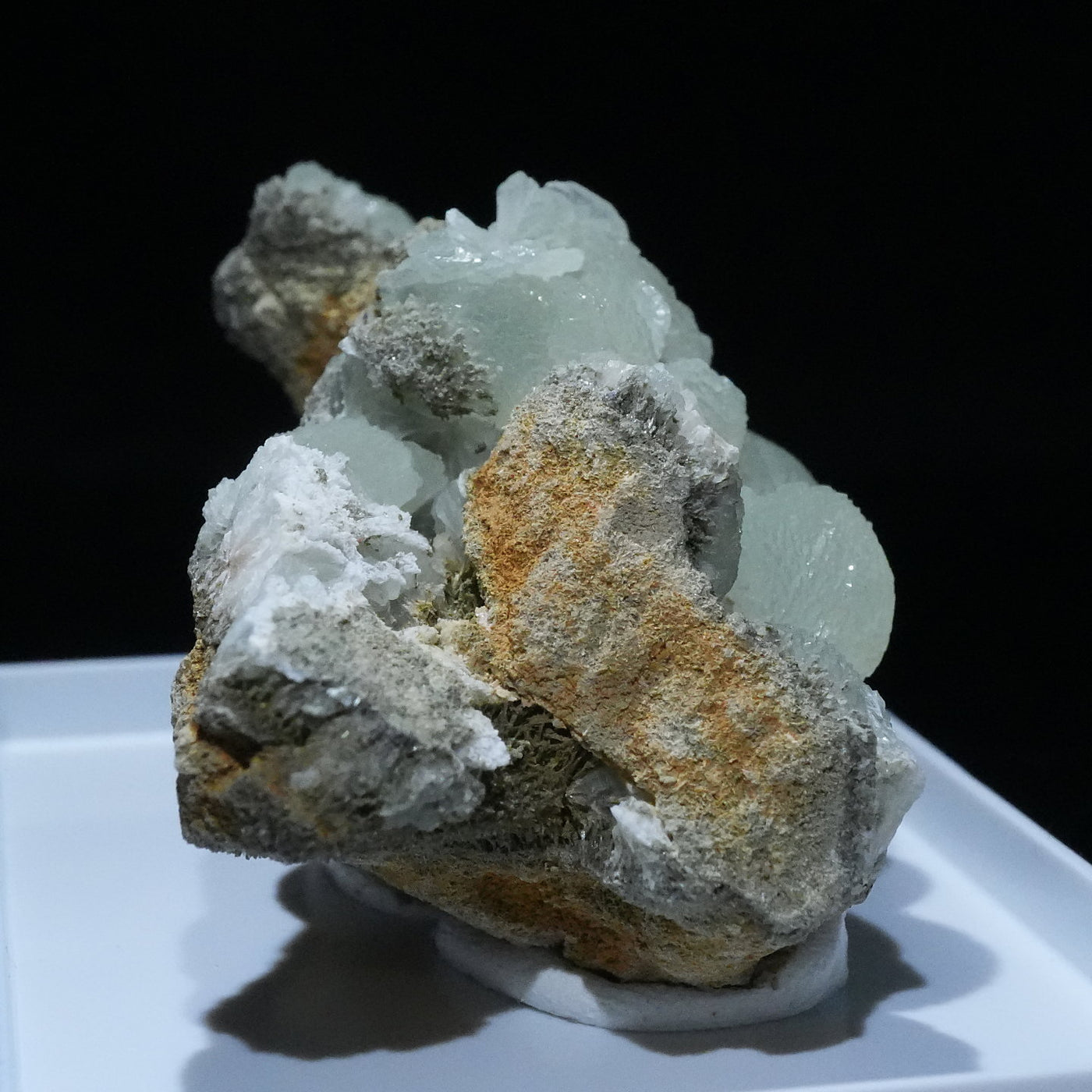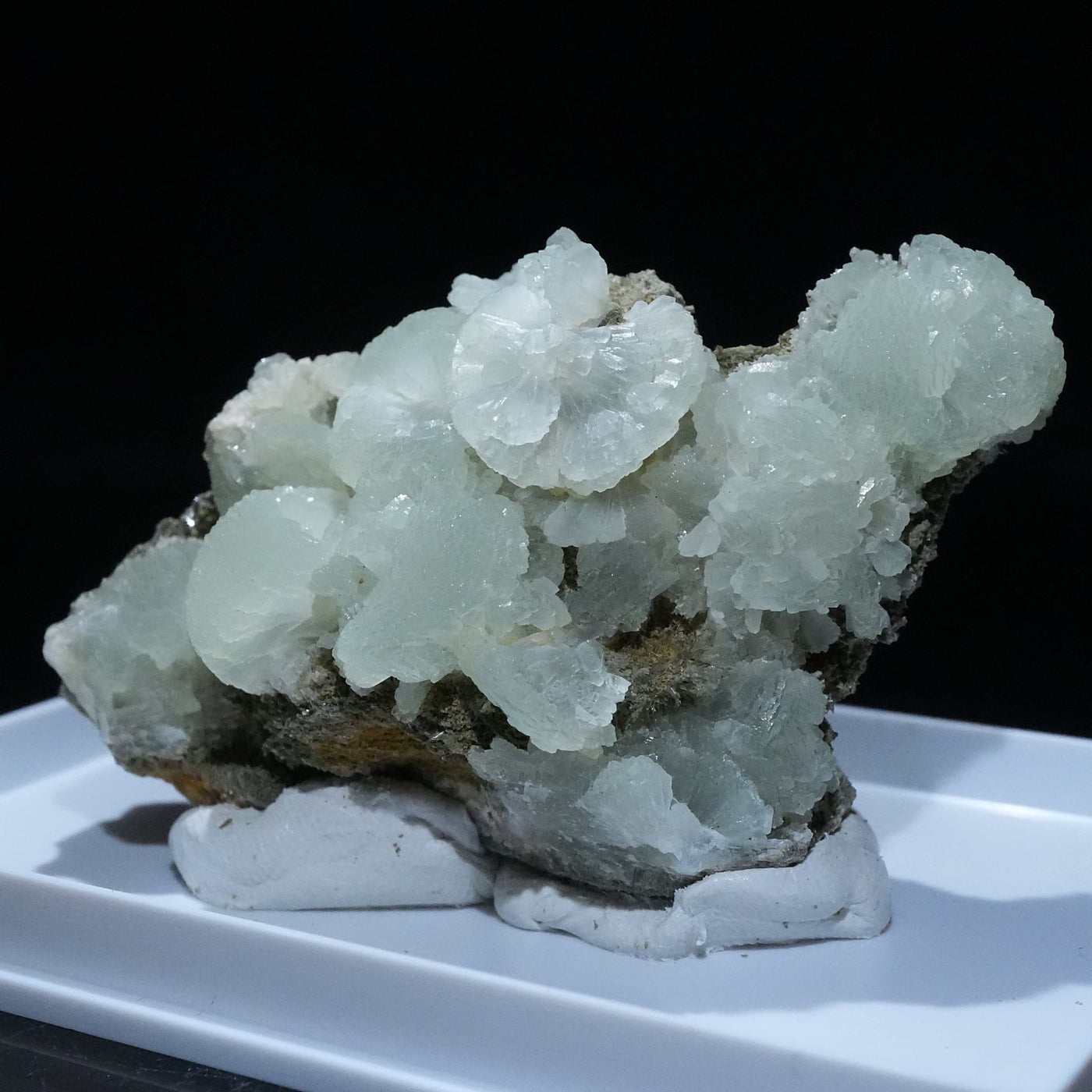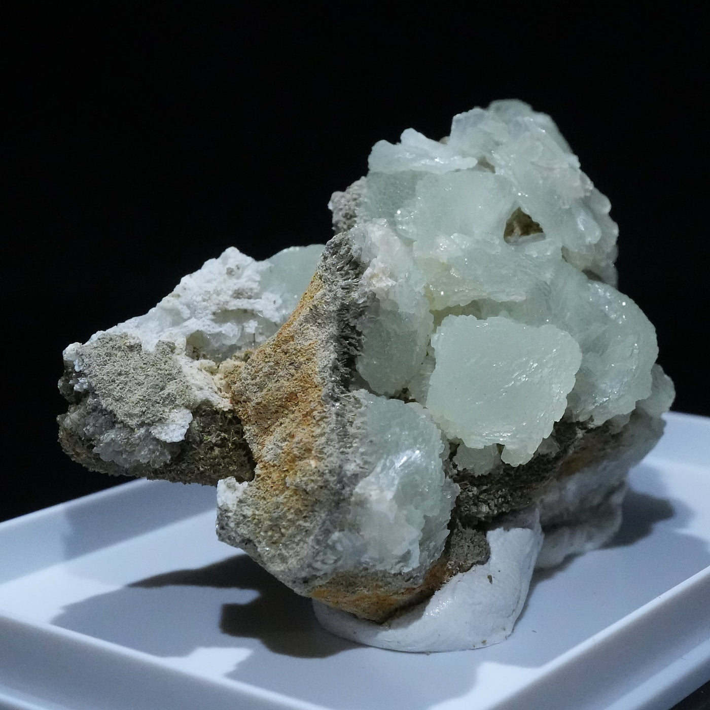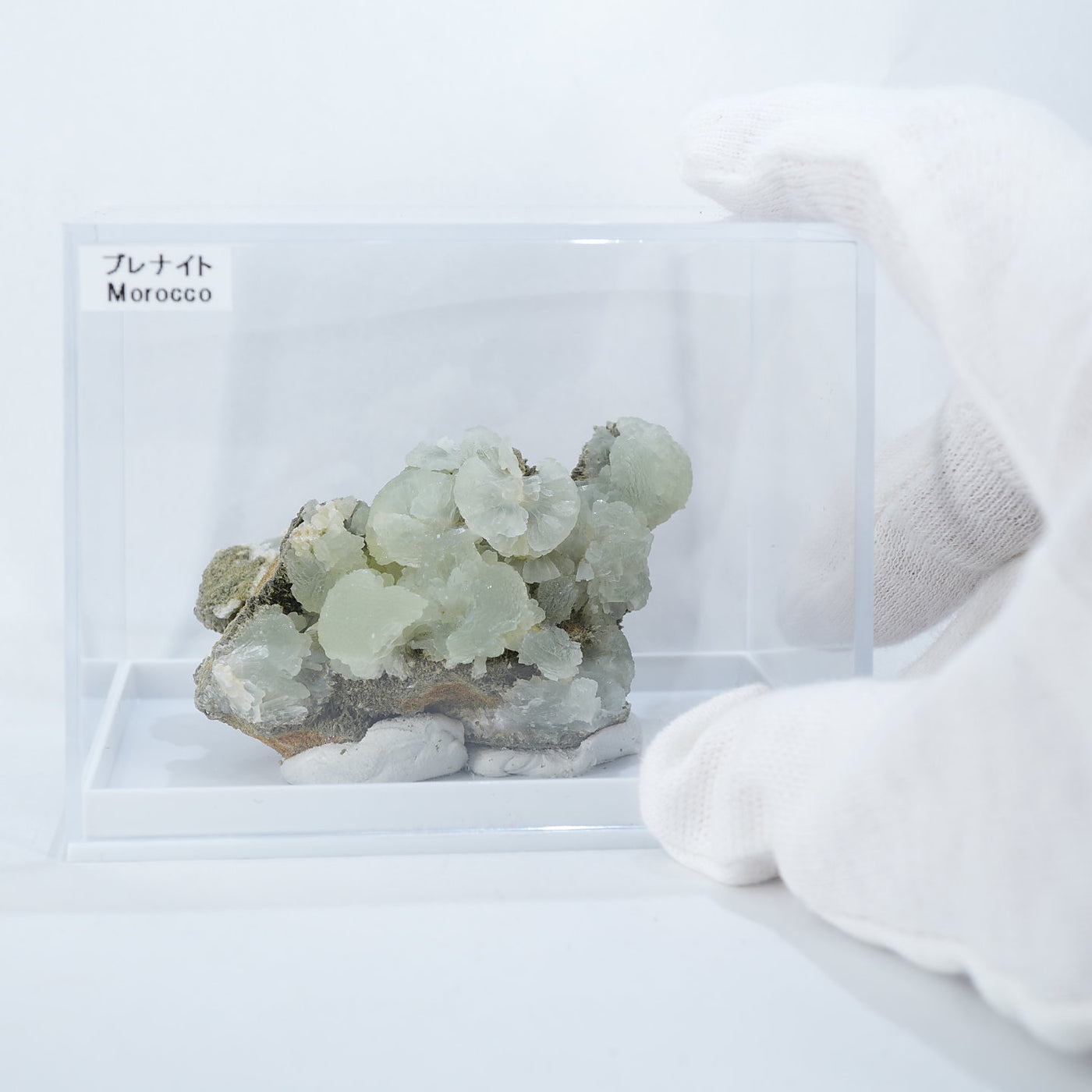 モロッコ産のプレナイトです。淡いマスカットグリーンの結晶が母岩全体に広がり、見ごたえがあります。【産地】Djebel Melh, Figuig Cercle, Oriental Region, Morocco【サイズ】約57mm×35mm×33mm【ご注意】ライトを当てて撮影しております、またご覧になるモニター環境によっても差があり、色合いの違いを感じられる事が有ります。 商品は天然ゆえ写真では確認できない細かな傷や凹み等がある場合もございます。イメージの違いに関しての返品は受付出来かねますのでご了承ください。【その他】価格は税込表示です、送料は全国一律全て無料です。宅配便またはポスト投函便(ヤマト運輸ネコポス)にて配送いたします。発送方法の指定はできません。