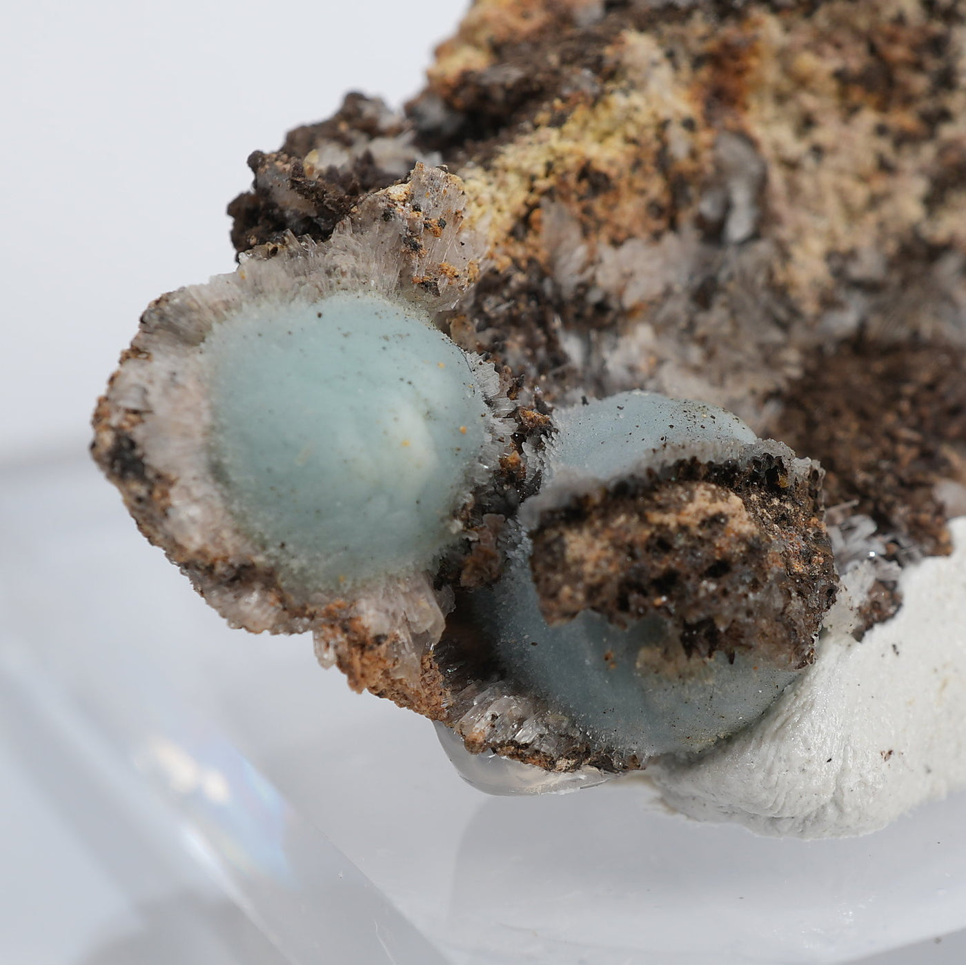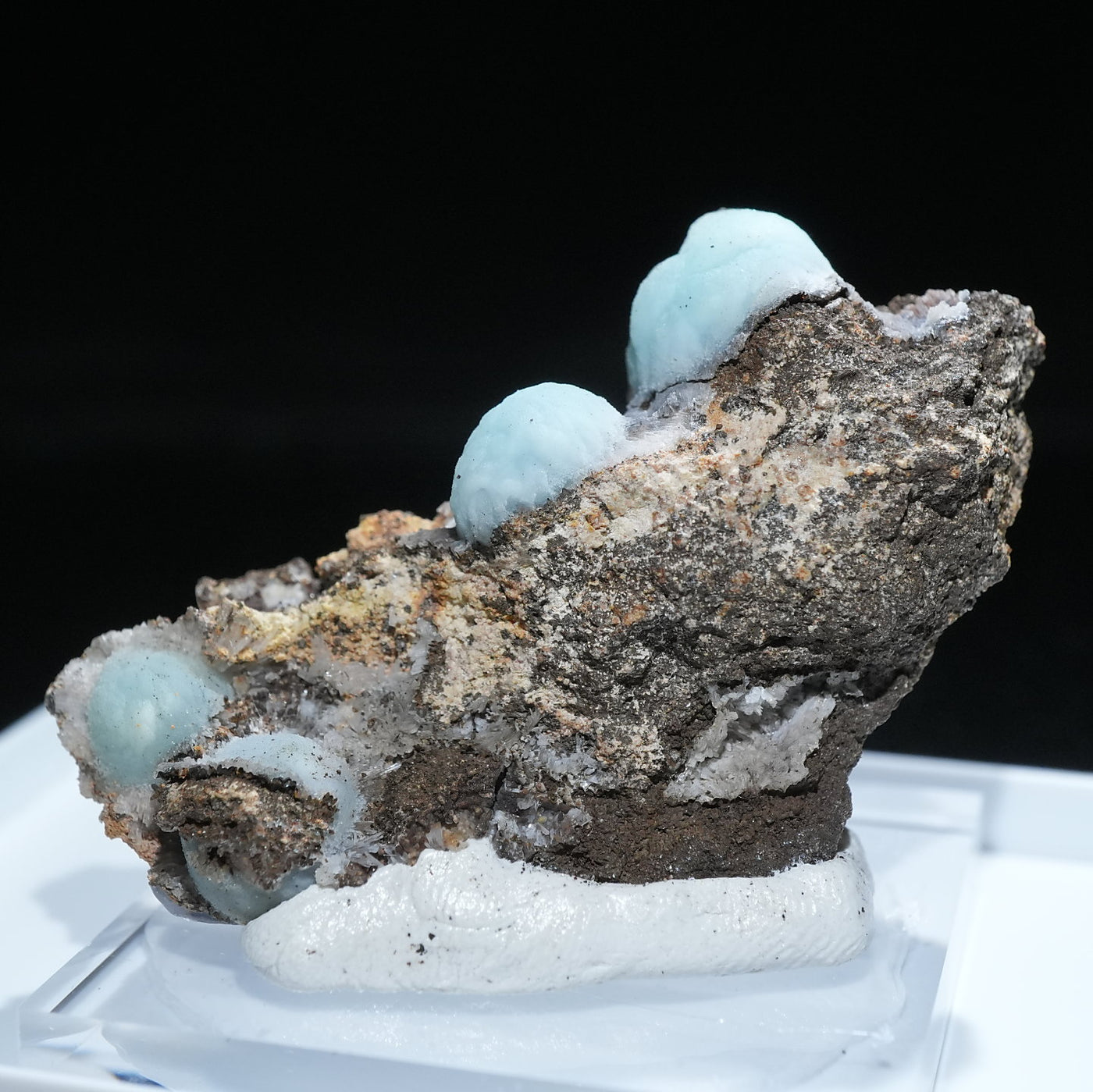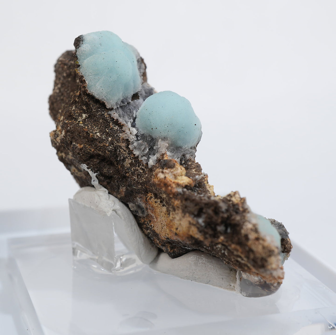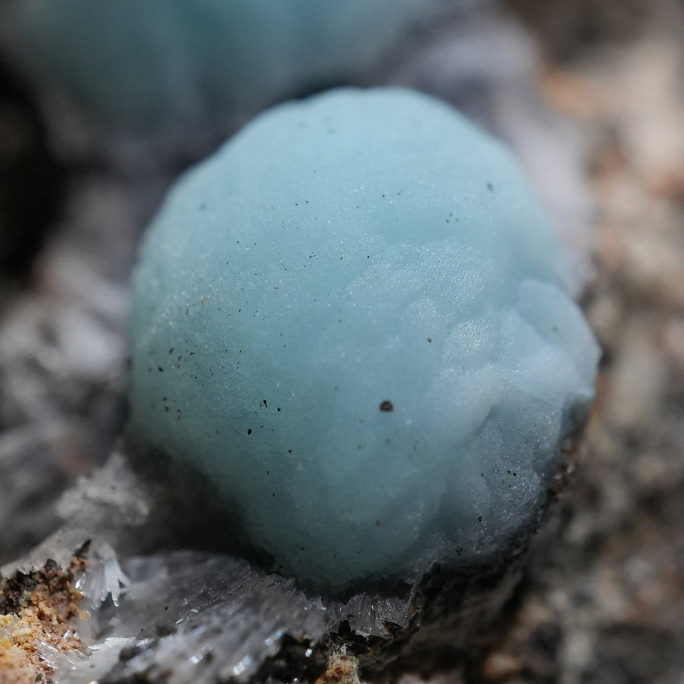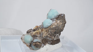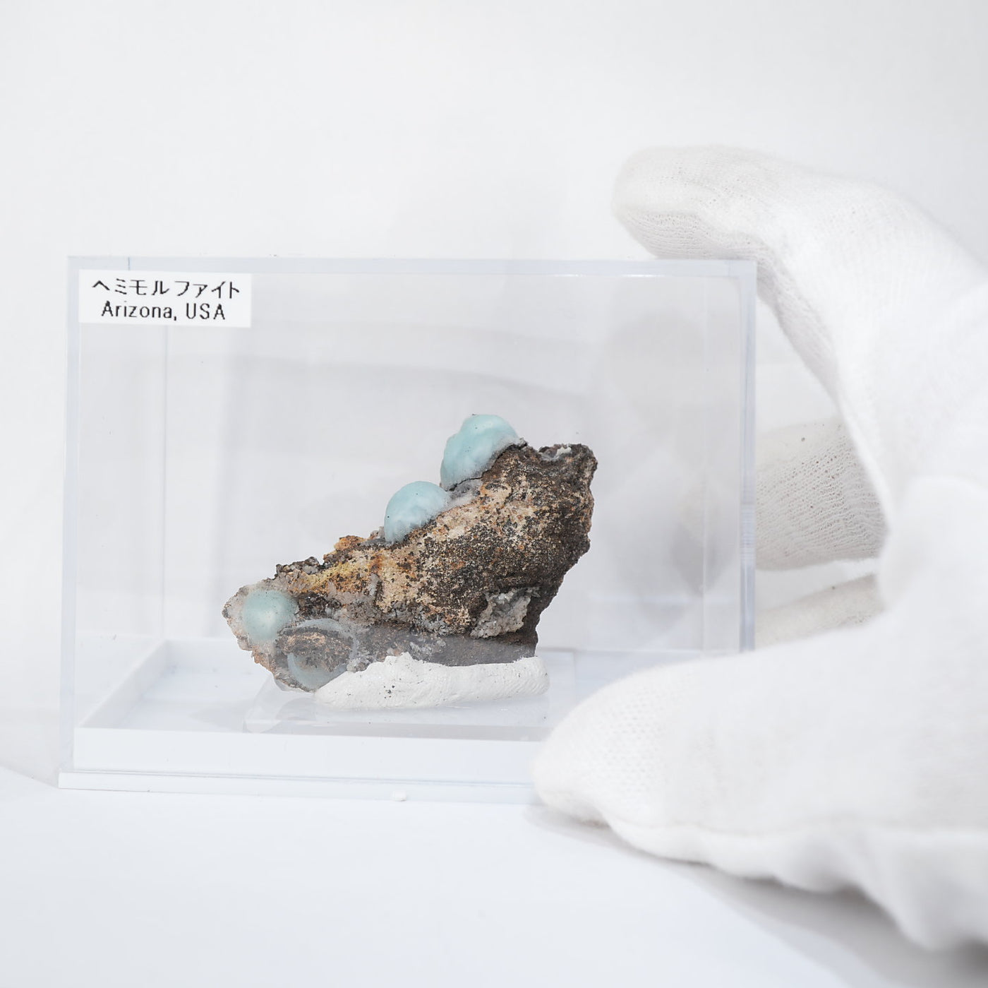 アメリカ アリゾナ州産のヘミモルファイト(異極鉱)です。丸みを帯びたモコモコとした結晶が特徴的です。優しい水色が綺麗です。【産地】79 Mine, Gila County, Arizona, USA【サイズ】約50mm×37mm×19mm【ご注意】ライトを当てて撮影しております、またご覧になるモニター環境によっても差があり、色合いの違いを感じられる事が有ります。 商品は天然ゆえ写真では確認できない細かな傷や凹み等がある場合もございます。イメージの違いに関しての返品は受付出来かねますのでご了承ください。【その他】価格は税込表示です、送料は全国一律全て無料です。宅配便またはポスト投函便(ヤマト運輸ネコポス)にて配送いたします。発送方法の指定はできません。