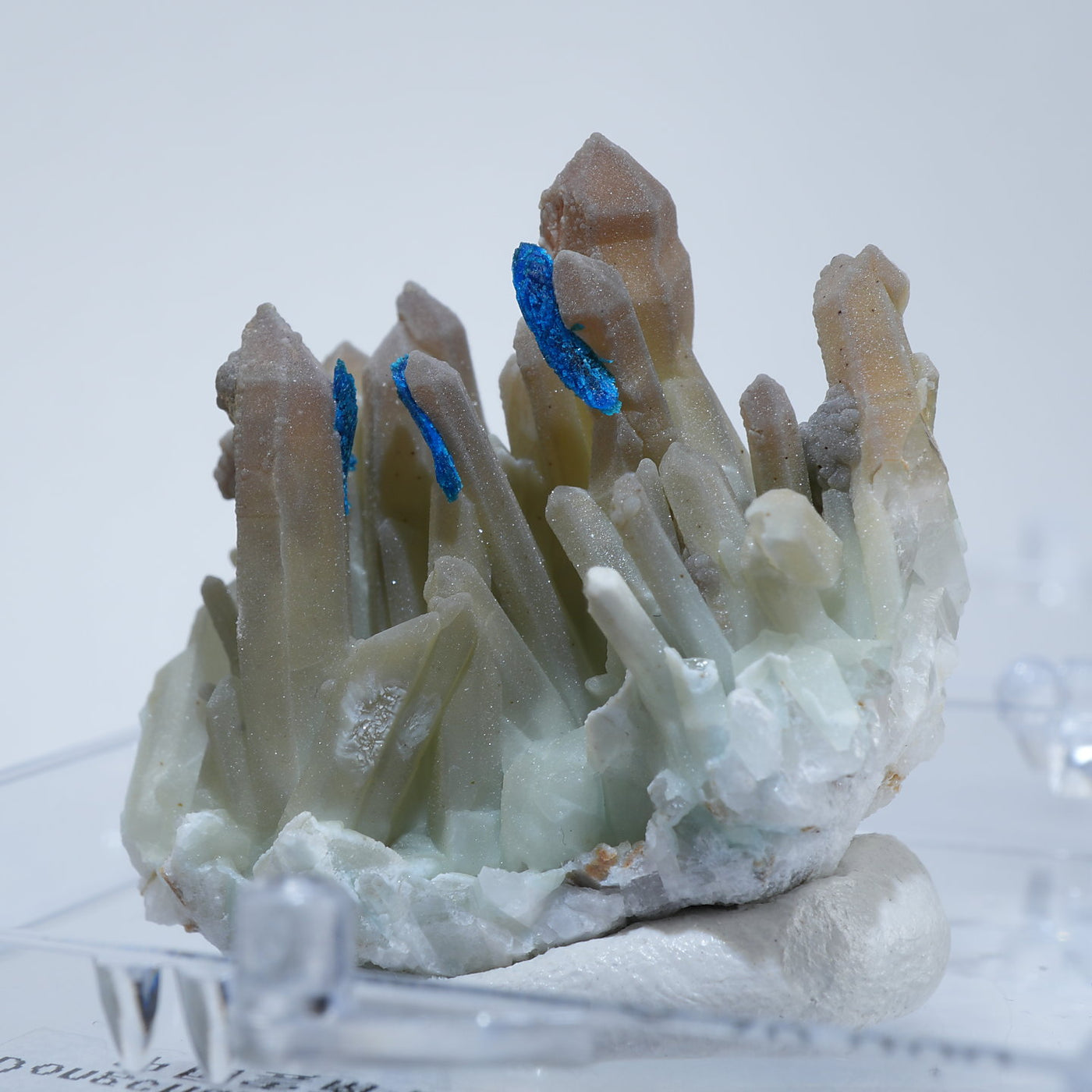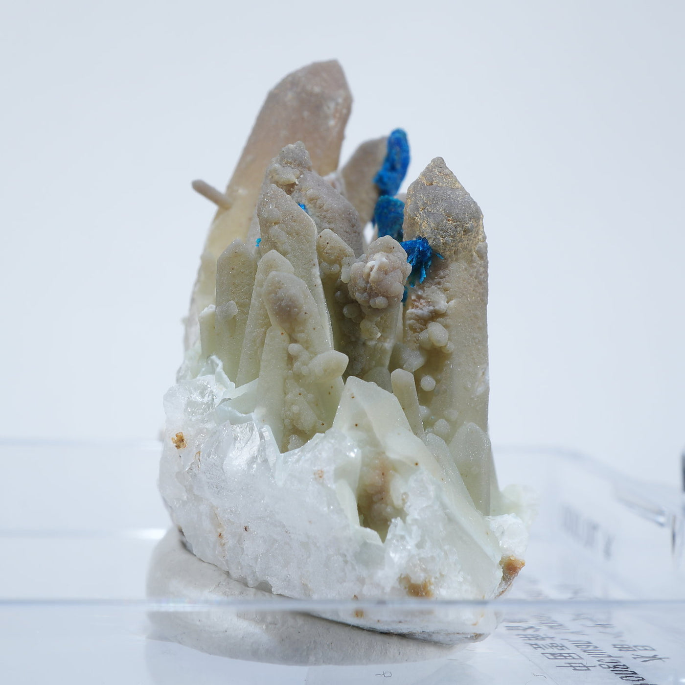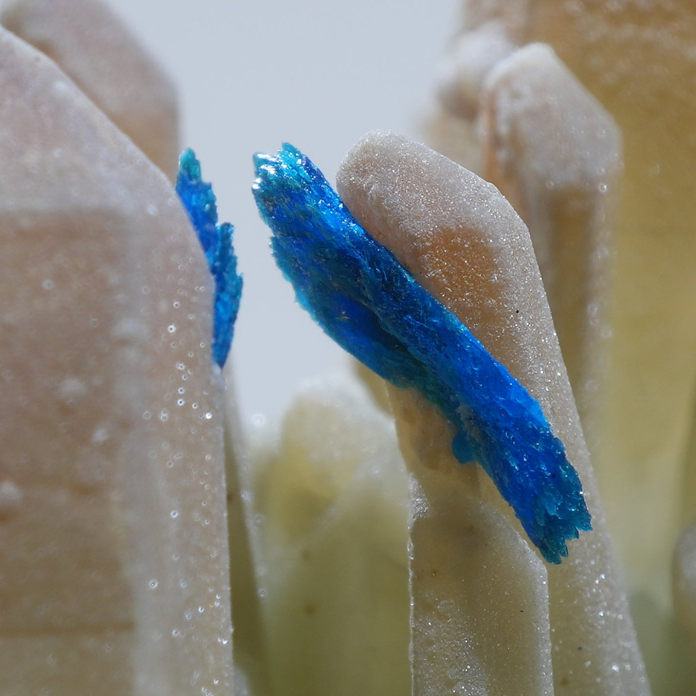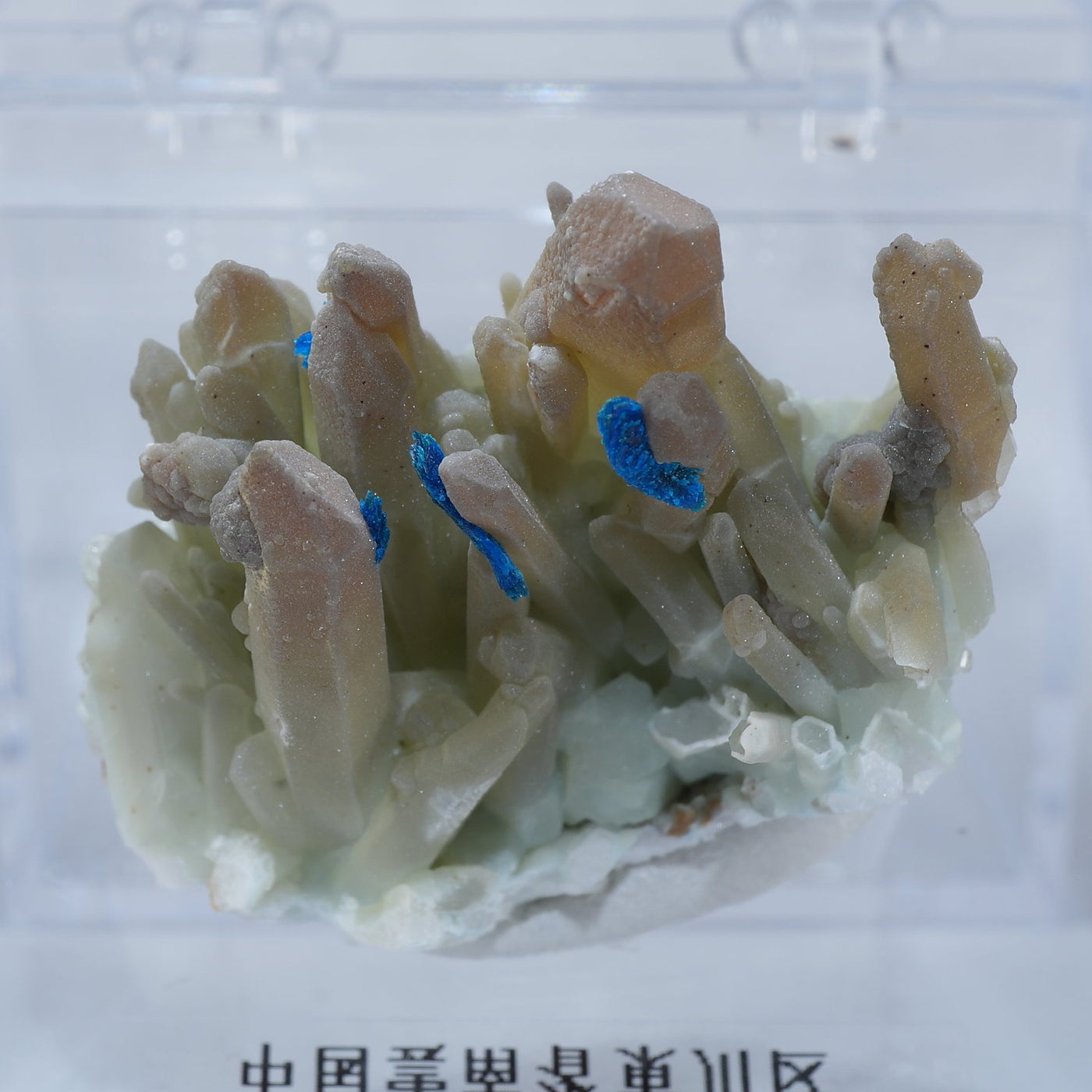 中国雲南省産の水晶・ベゼライトです。鮮やかな青緑色のベゼライトの結晶と水晶との美しい共生が魅力です。■ベゼライト(ベゼリ石:Veszelyite)銅の二次鉱物として生成され、銅や亜鉛が含まれる鉱床の酸化帯から産出する。最初の発見者であるハンガリーの鉱山技師ベゼリA. Veszelyi(1820―1888)に因んで命名される。鮮やかな青緑色の結晶が美しい鉱物で、産出量が少なく世界的にも珍しい鉱物とされ、結晶の大きさにより希少性が高まる。 【産地】 Dongchuan, Yunnan, China 中国雲南省東川区【サイズ】約28mm×32mm×20mm【ご注意】パソコン、モニターの環境によって若干色合いなどが変わることがございます。商品は天然ゆえ、わずかな凹みや歪み、内包物が入る物もございます。多少のイメージの違いに関しての返品は受付が出来かねますのでご了承ください。【その他】価格は税込表示です、送料は全国一律全て無料です。宅配便またはポスト投函便(ヤマト運輸ネコポス)にて配送いたします。発送方法の指定はできません。