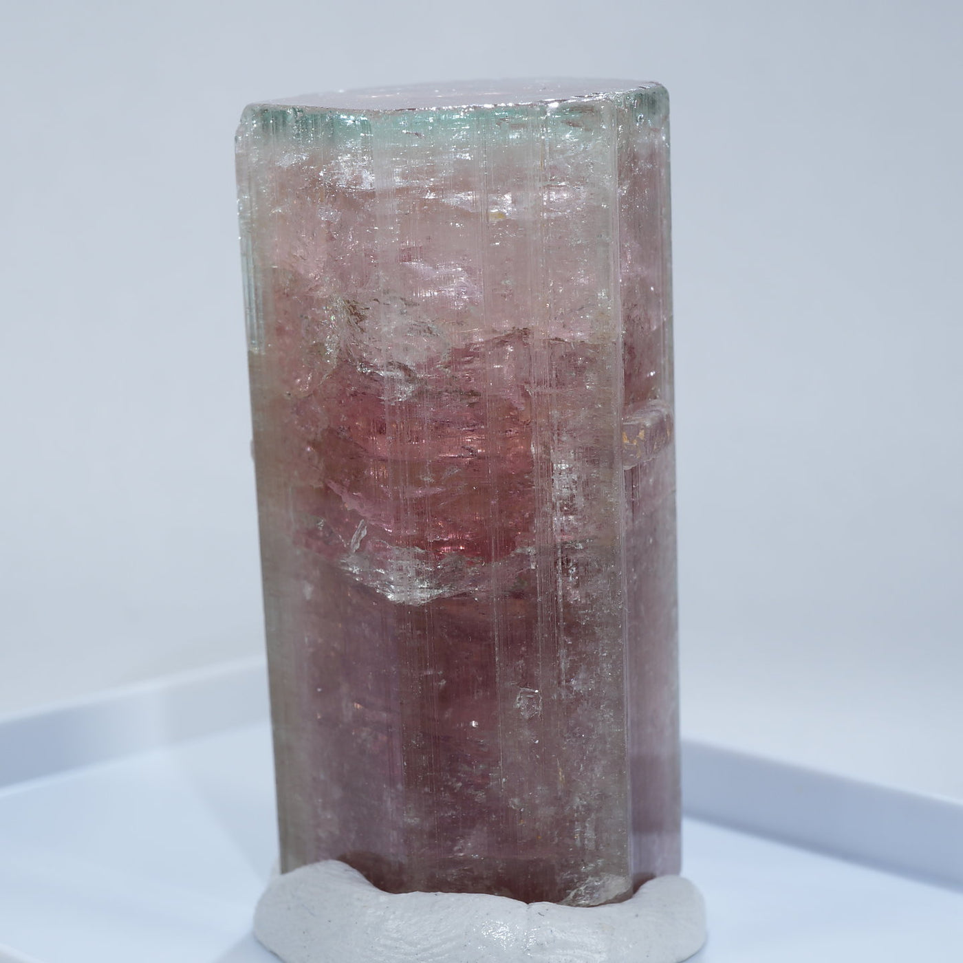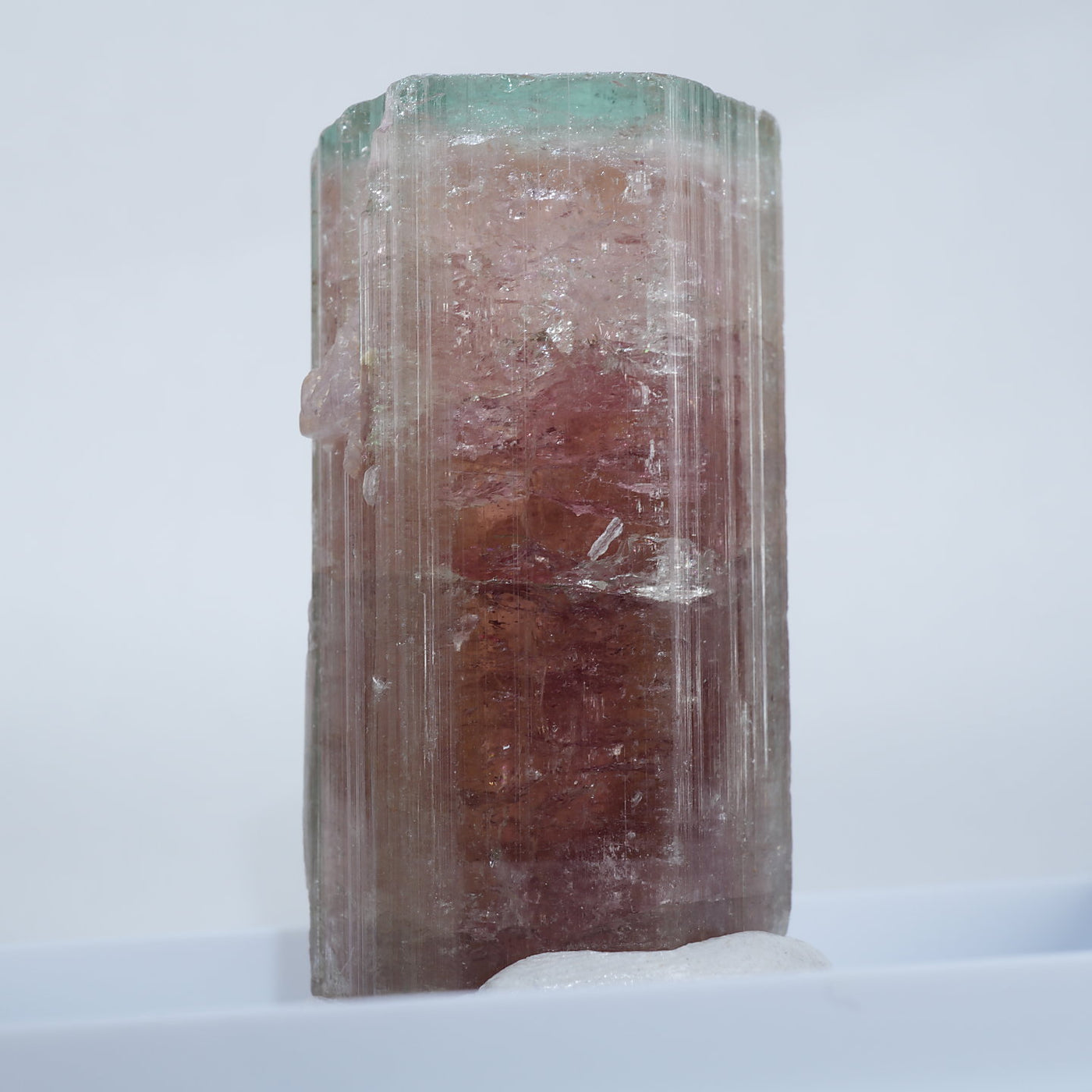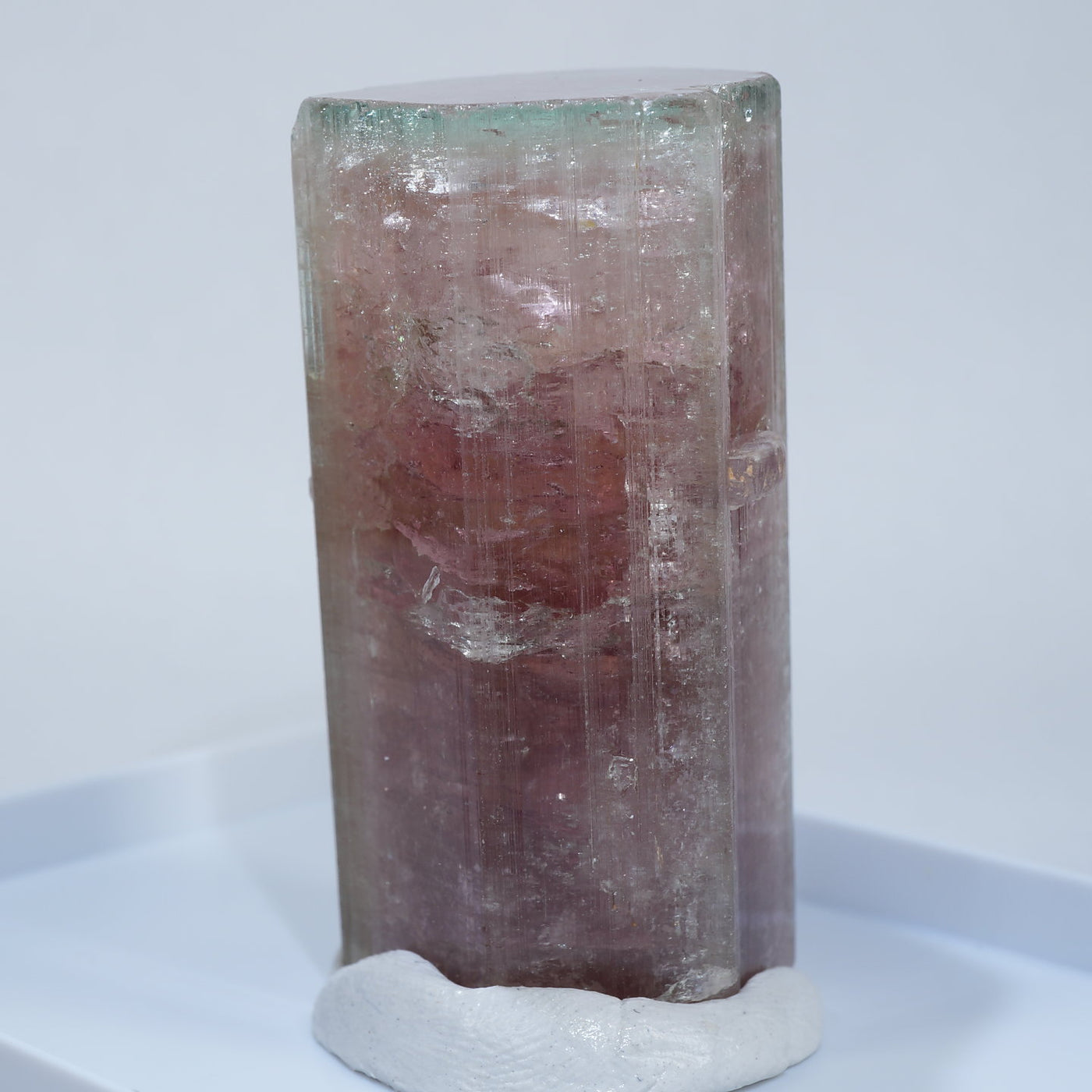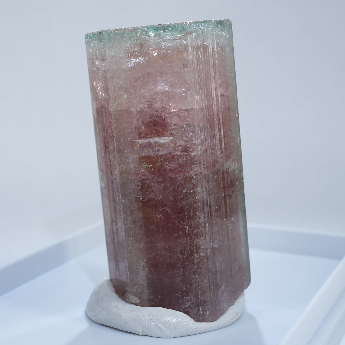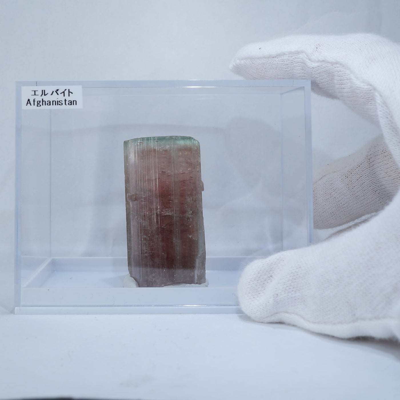 アフガニスタン産のエルバイトです。艶やかな表面、透明感、濃淡のある赤色と淡いグリーンのコントラスト、魅力あふれる美しい標本です。見ごたえのある大きさも魅力です。