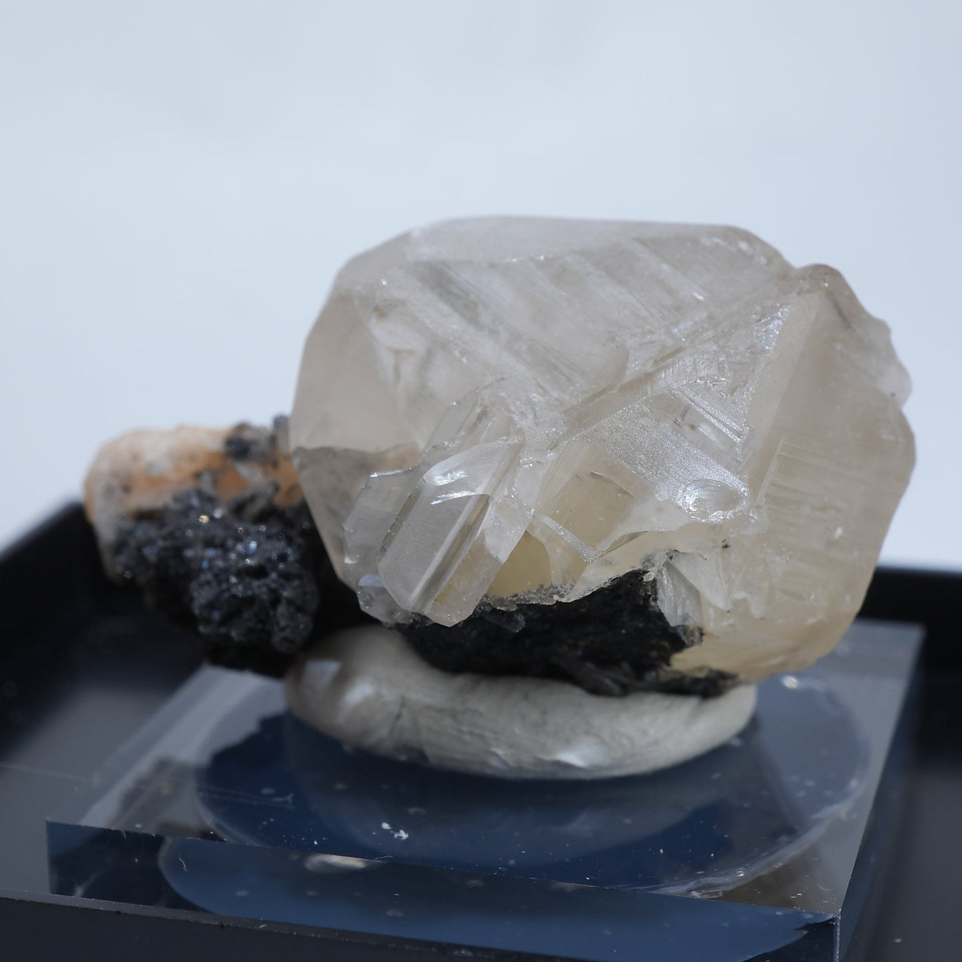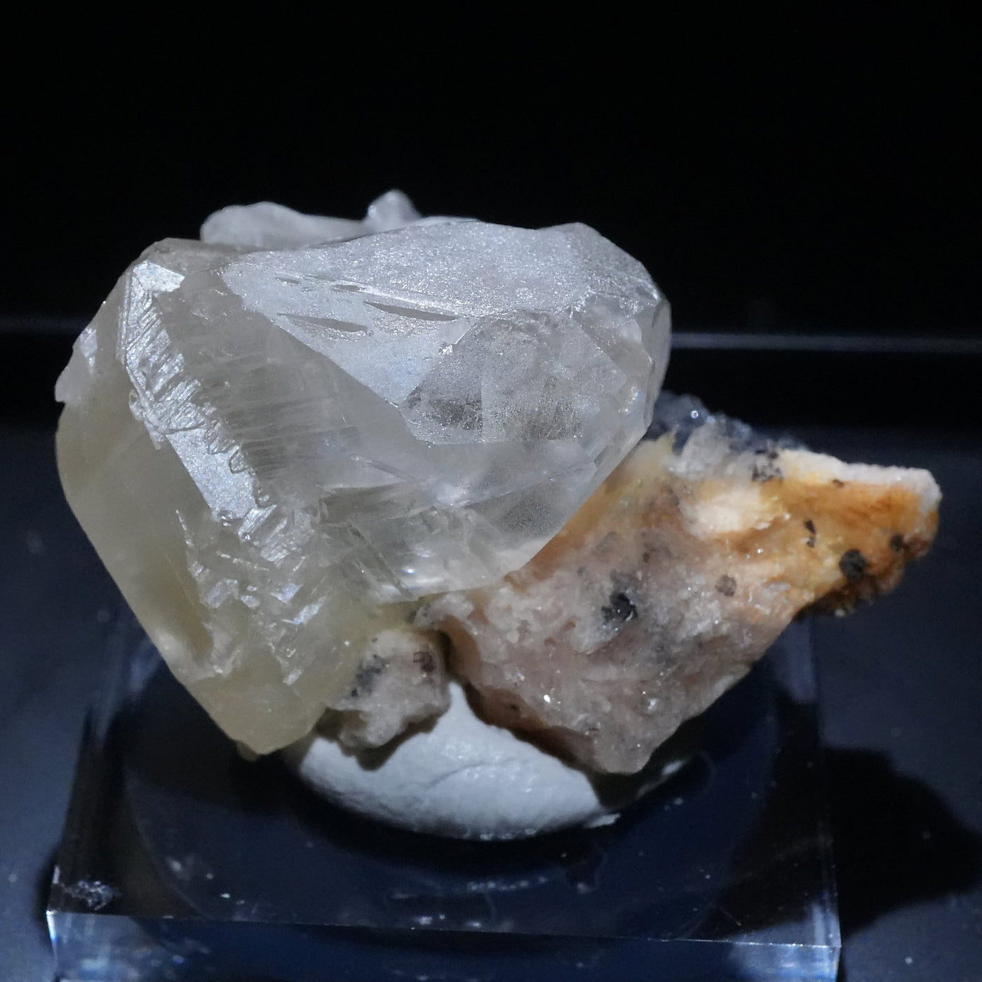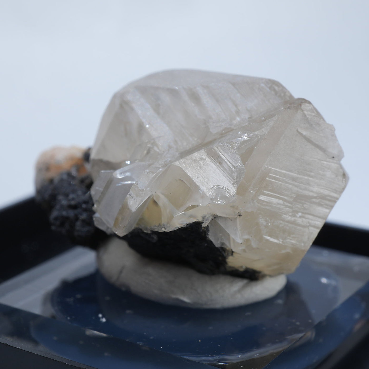 マットな質感の半透明な結晶です。紫外線ライトを当てると鮮やかなレモンイエローに蛍光するのが特徴です。