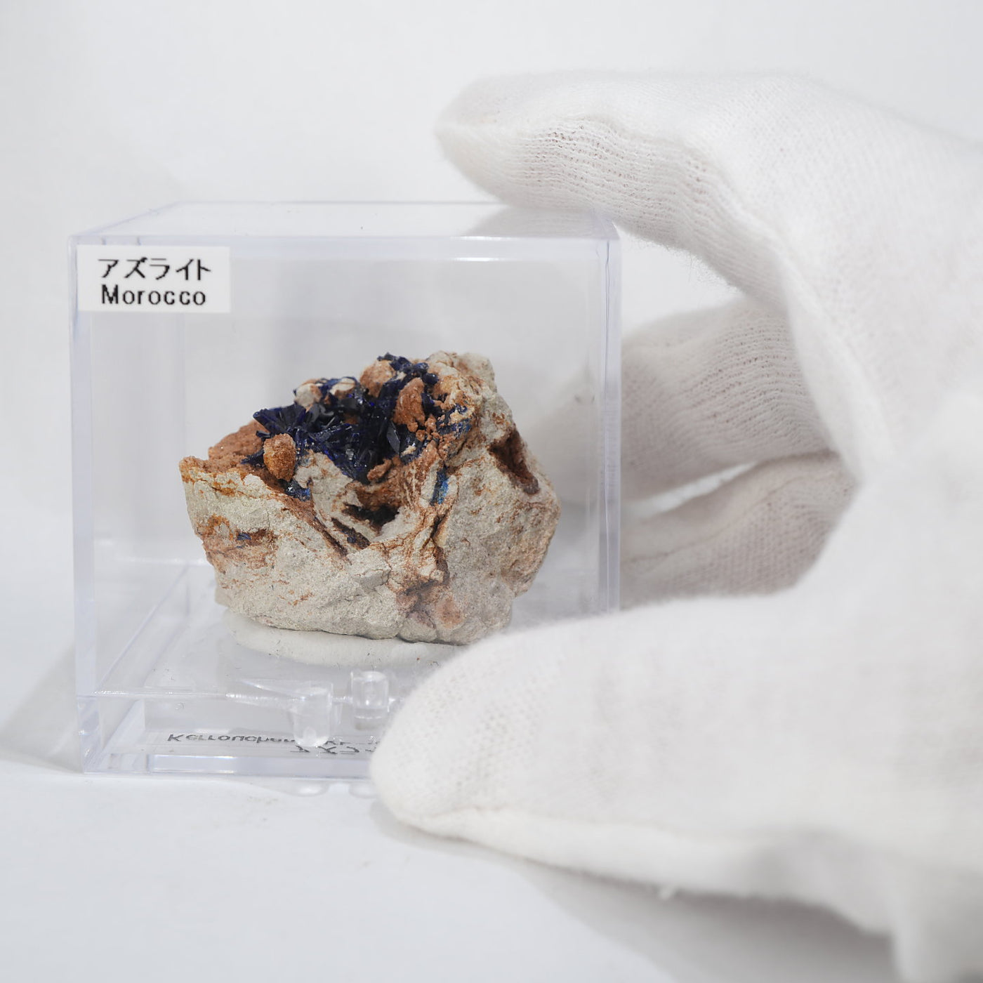 モロッコ産のアズライトです。光沢のある美しい藍色が魅力です。良質な標本です。【産地】Kerrouchene, Khenifra, Morocco【サイズ】約26mm×38mm×34mm【ご注意】ライトを当てて撮影しております、またご覧になるモニター環境によっても差があり、色合いの違いを感じられる事が有ります。 商品は天然ゆえ写真では確認できない細かな傷や凹み等がある場合もございます。イメージの違いに関しての返品は受付出来かねますのでご了承ください。【その他】価格は税込表示です、送料は全国一律全て無料です。宅配便またはポスト投函便(ヤマト運輸ネコポス)にて配送いたします。発送方法の指定はできません。