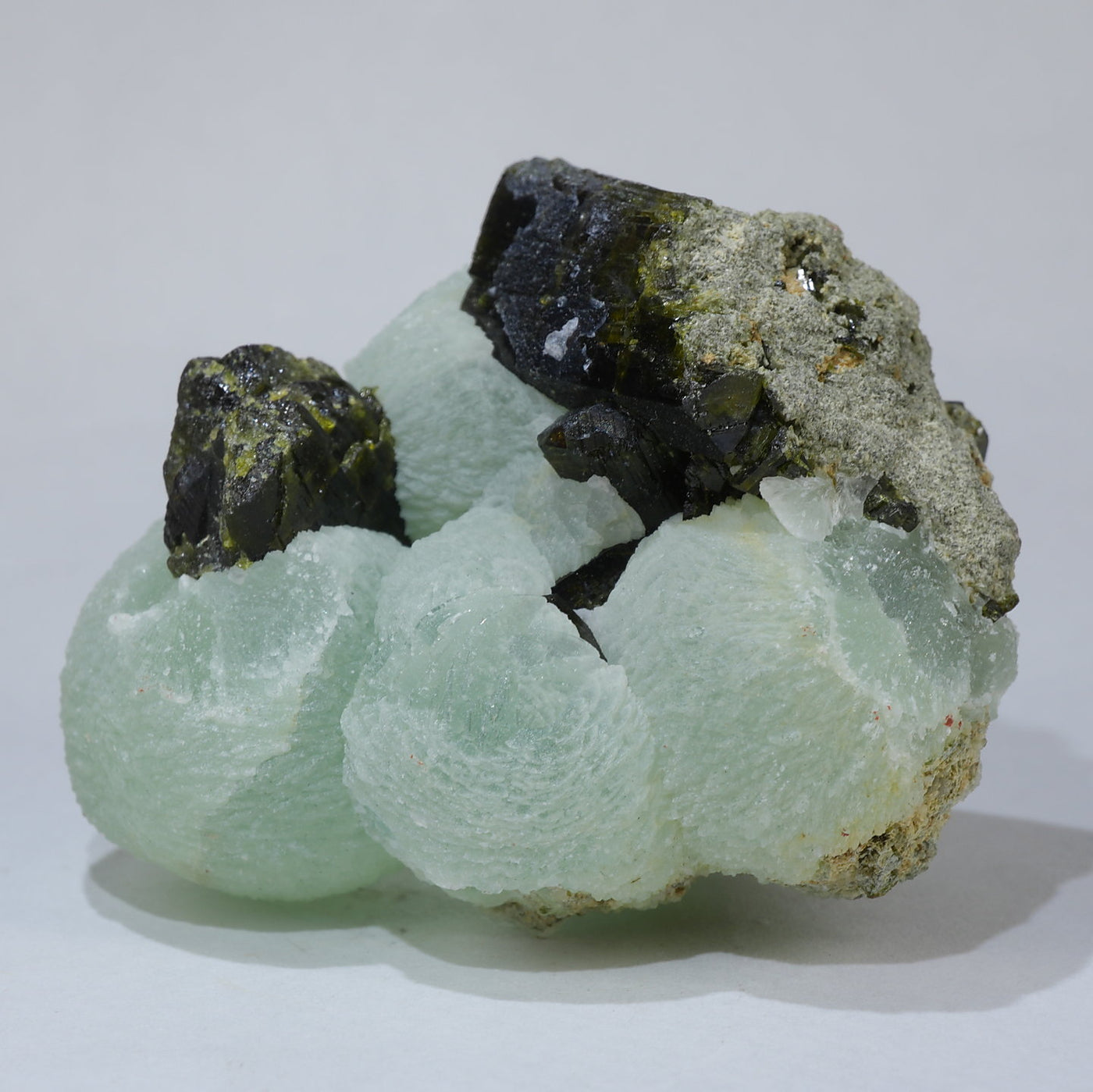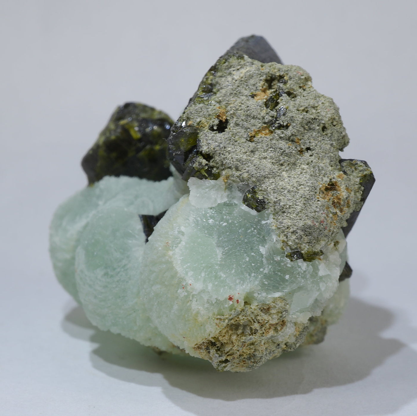 マリ共和国産 のプレナイト ・エピドートです。優しいマスカットグリーンの丸いプレナイトが可愛らしく、エピドートとの共生も魅力です。【産地】Kayes Region, Mali【サイズ】約41mm×34mm×28mm【ご注意】ライトを当てて撮影しております、またご覧になるモニター環境によっても差があり、色合いの違いを感じられる事が有ります。 商品は天然ゆえ写真では確認できない細かな傷や凹み等がある場合もございます。イメージの違いに関しての返品は受付出来かねますのでご了承ください。【その他】価格は税込表示です、送料は全国一律全て無料です。宅配便またはポスト投函便(ヤマト運輸ネコポス)にて配送いたします。発送方法の指定はできません。