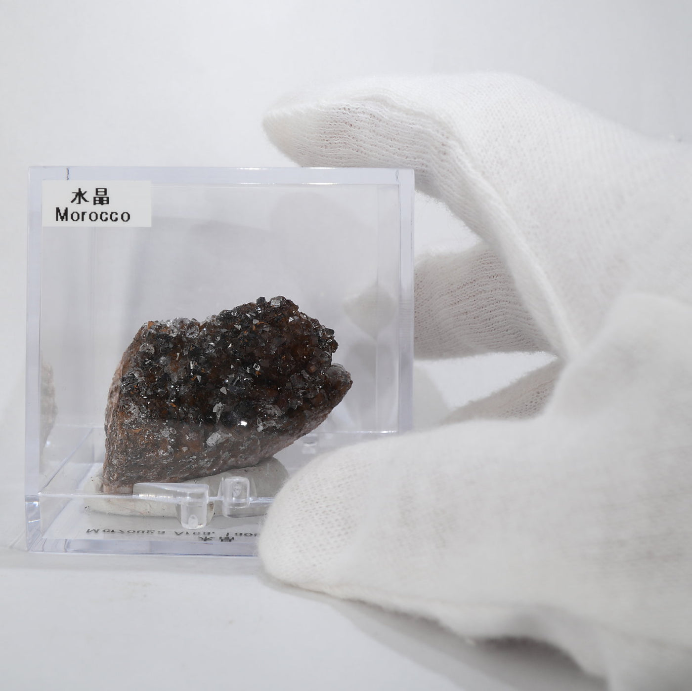 モロッコ産の水晶です。照りと透明感のある水晶と茶色い母岩とのコントラストが印象的です。クリアで美しい水晶です。