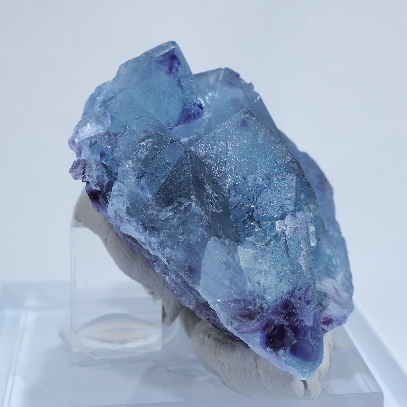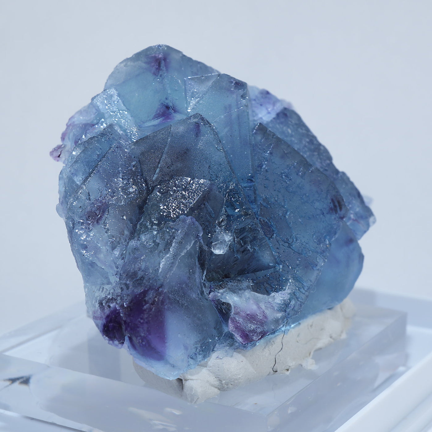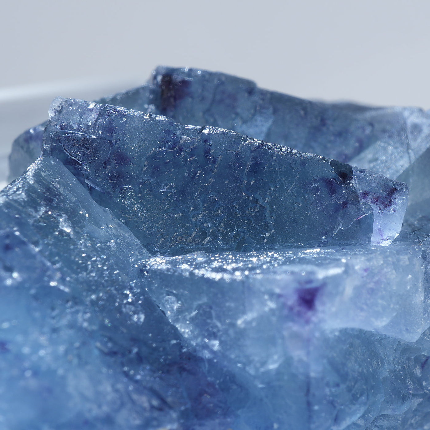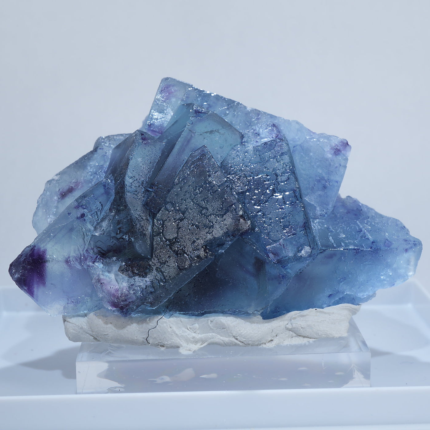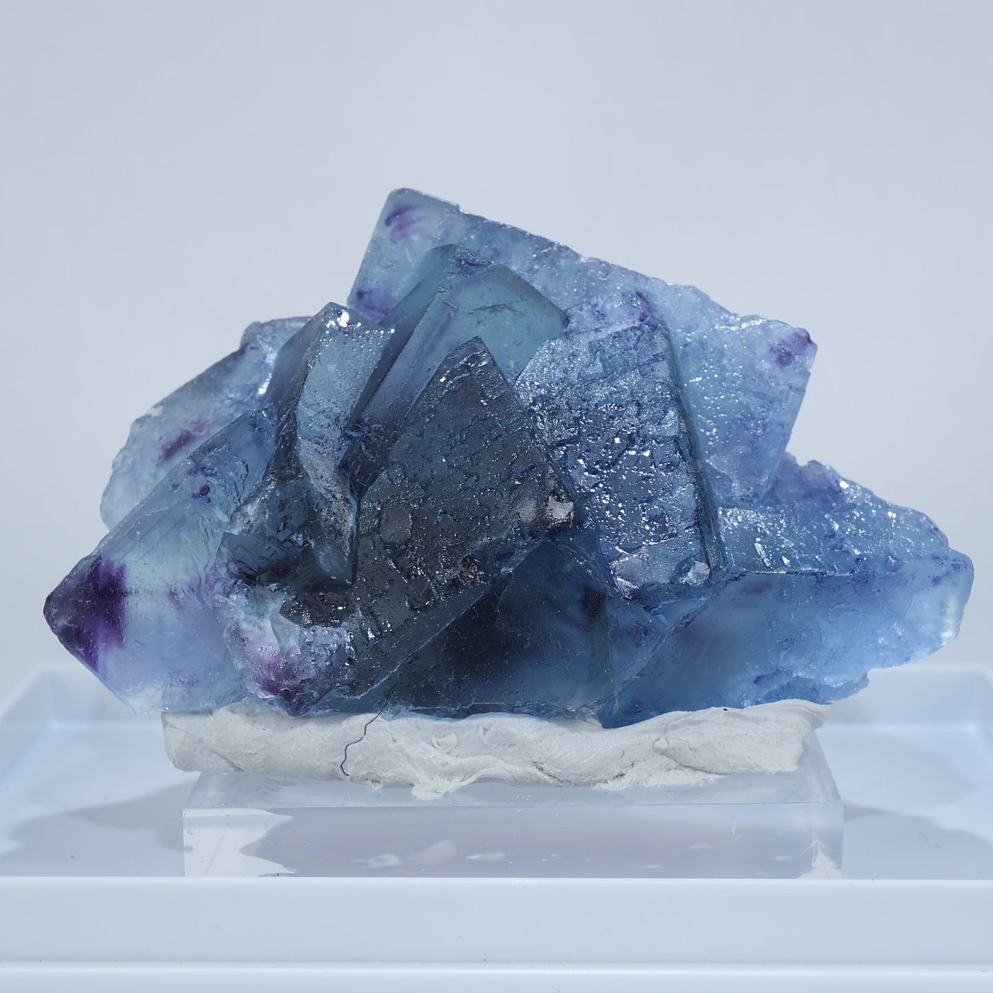 全体は淡い水色をしており、部分的に紫色がみられる美しい標本です。紫外線ライトを当てると蛍光します。