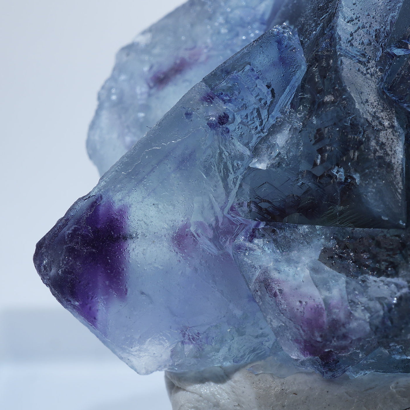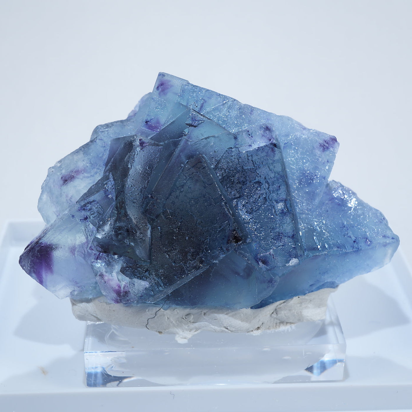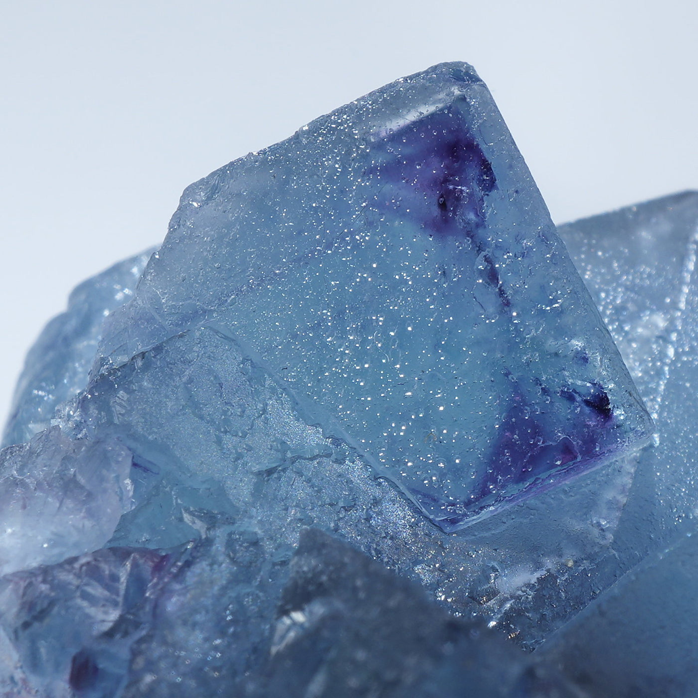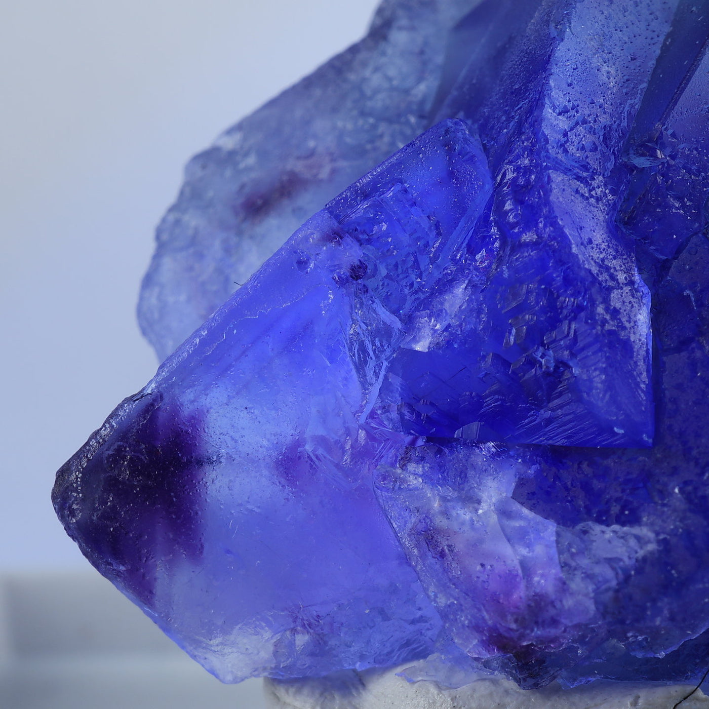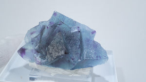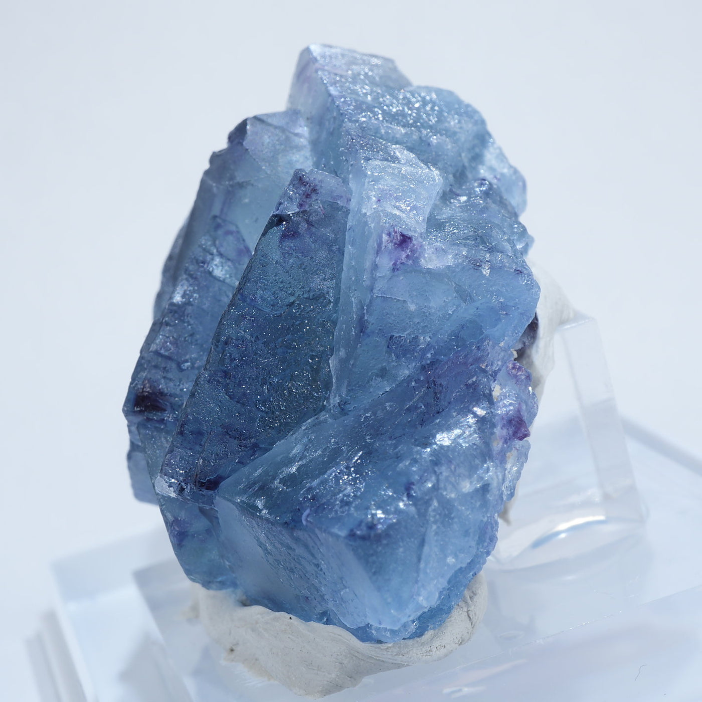 全体は淡い水色をしており、部分的に紫色がみられる美しい標本です。紫外線ライトを当てると蛍光します。