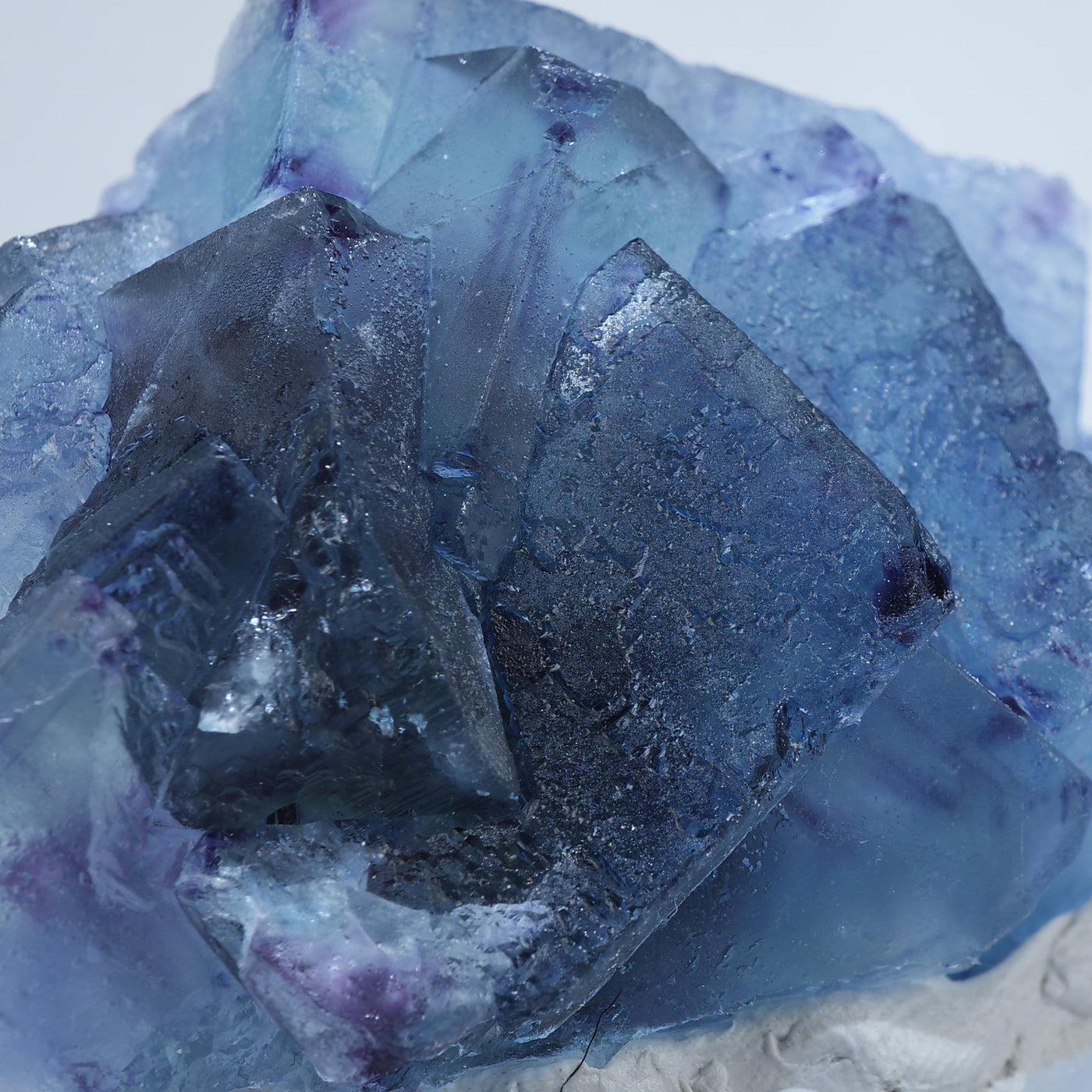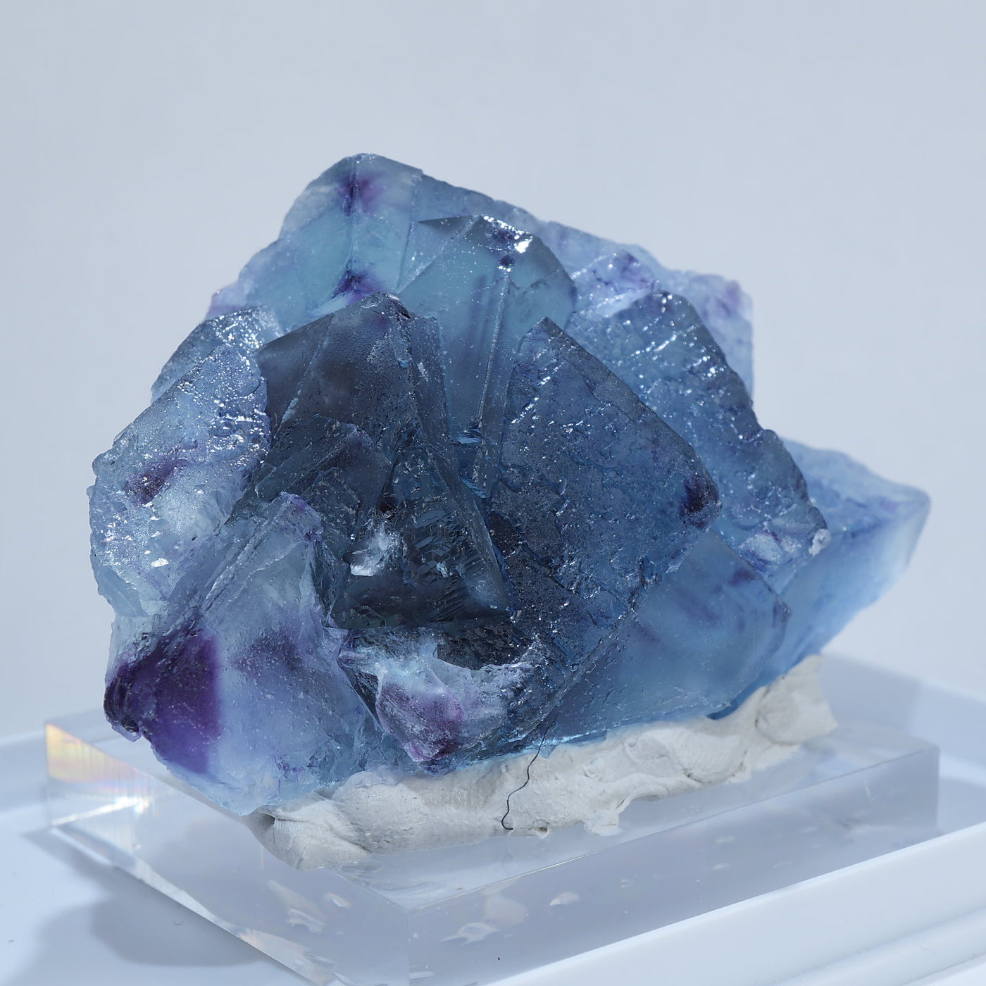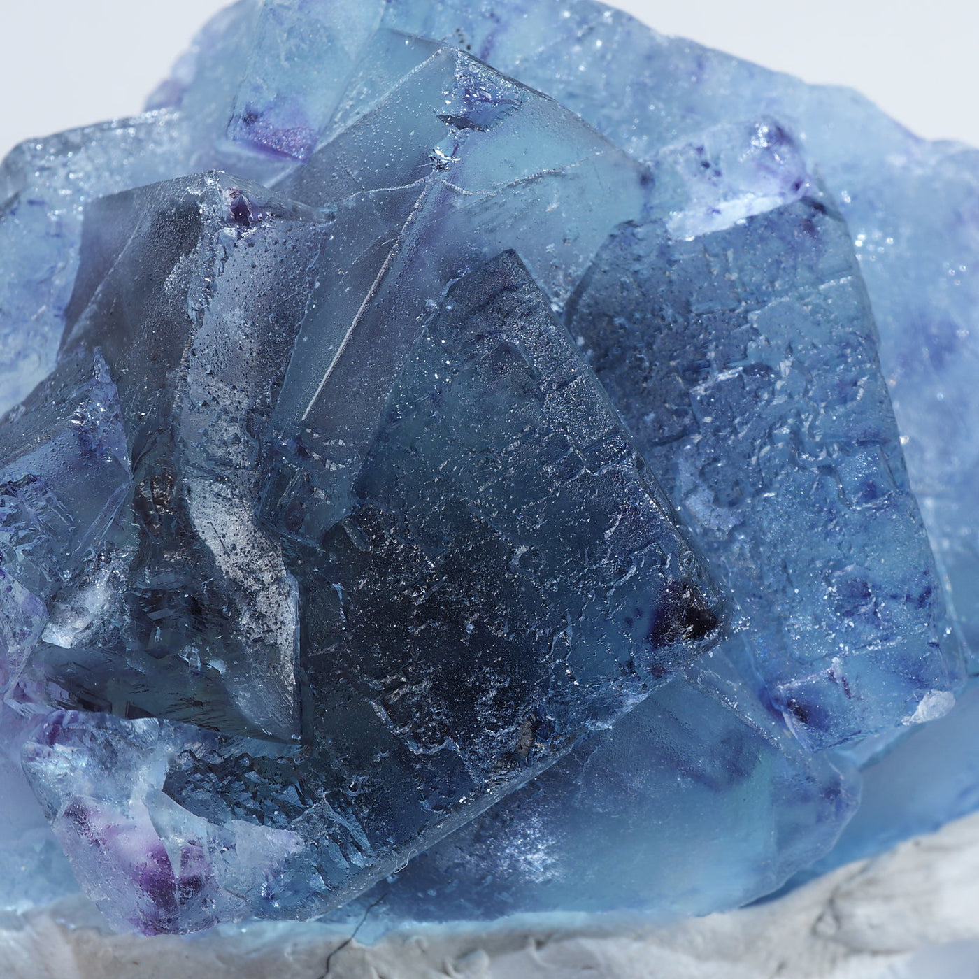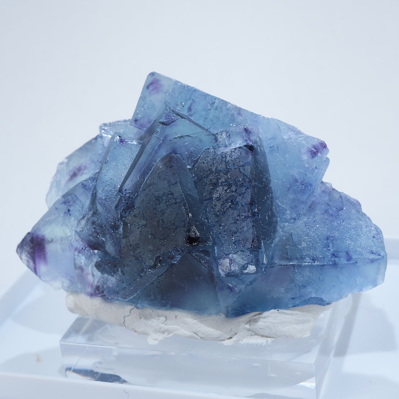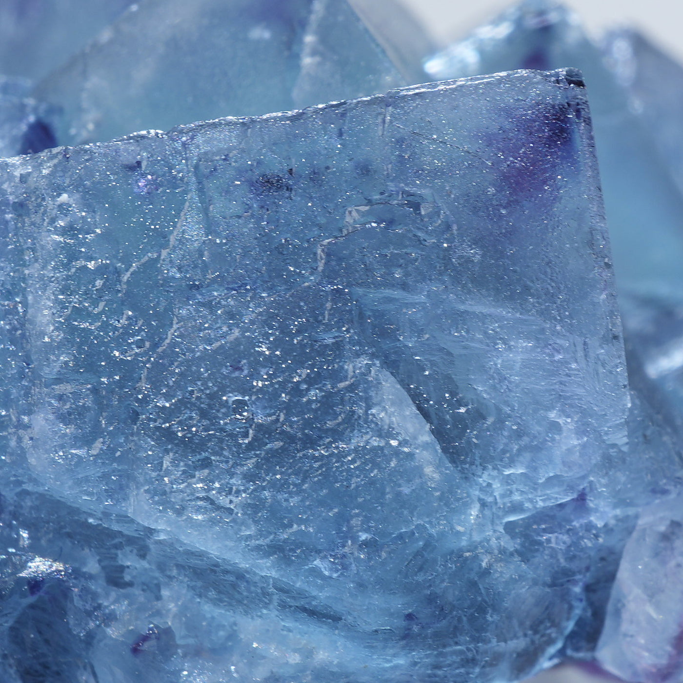 全体は淡い水色をしており、部分的に紫色がみられる美しい標本です。紫外線ライトを当てると蛍光します。