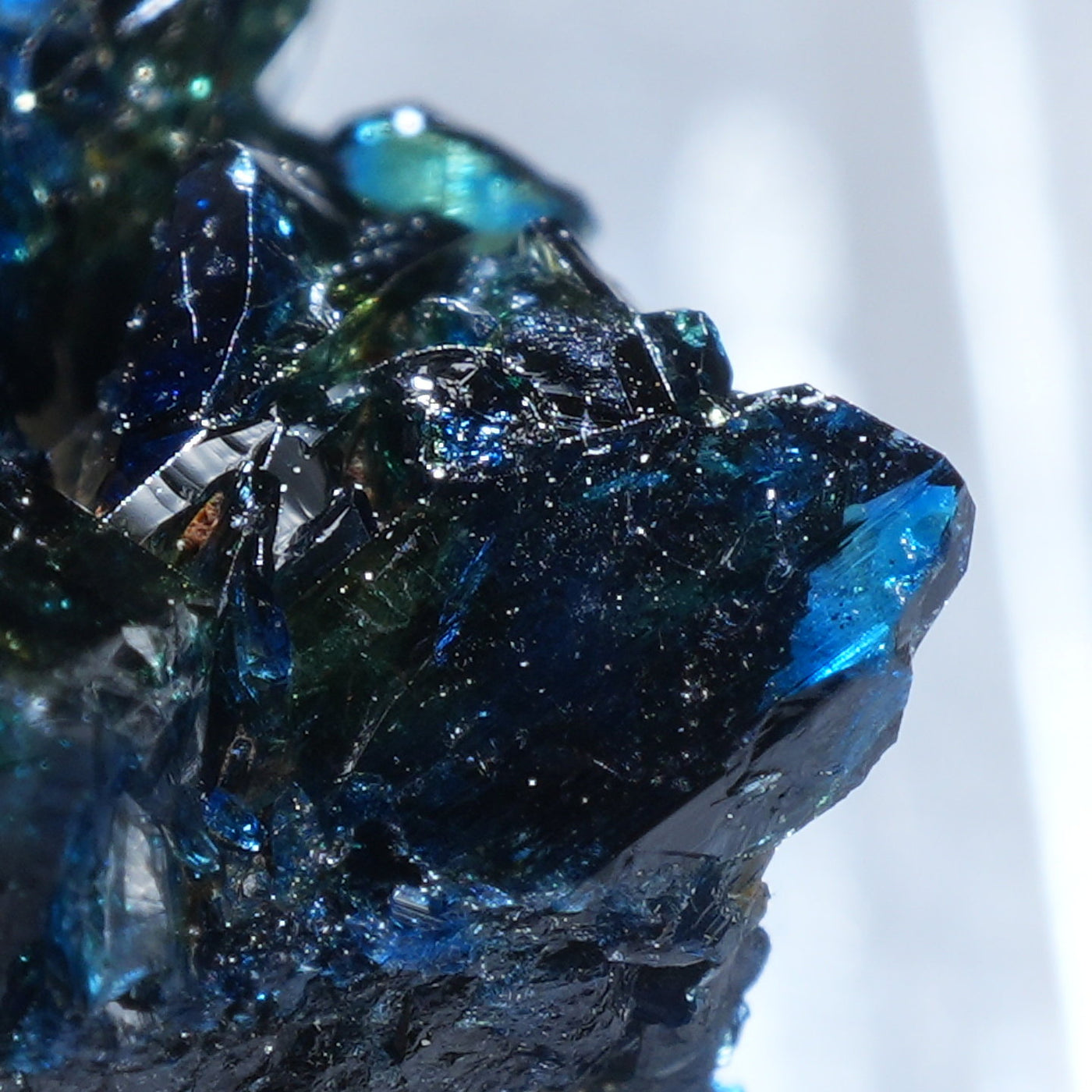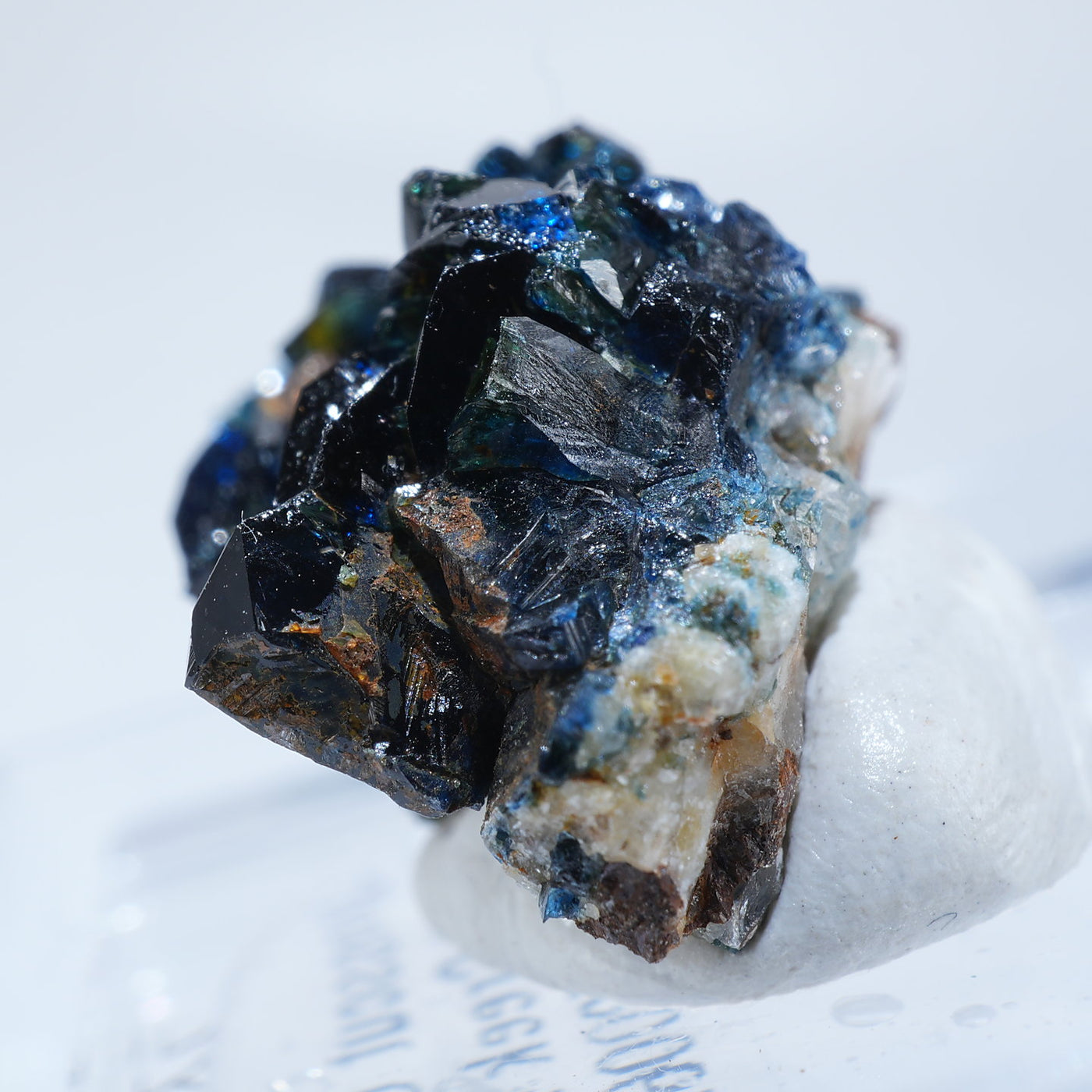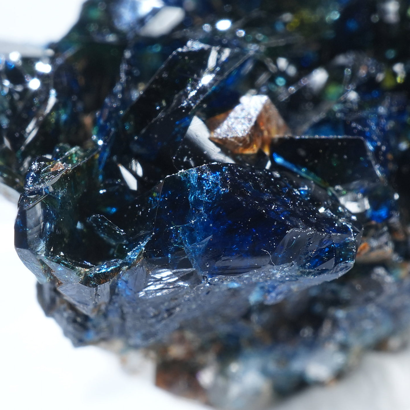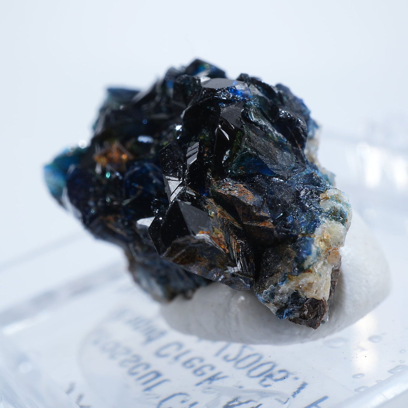 深い藍色のキラキラとした輝きが魅力です。照りが素晴らしく光を透過させた時のブルーの発色も美しい良質な標本です。