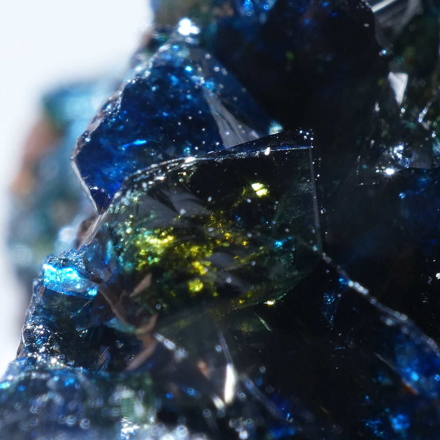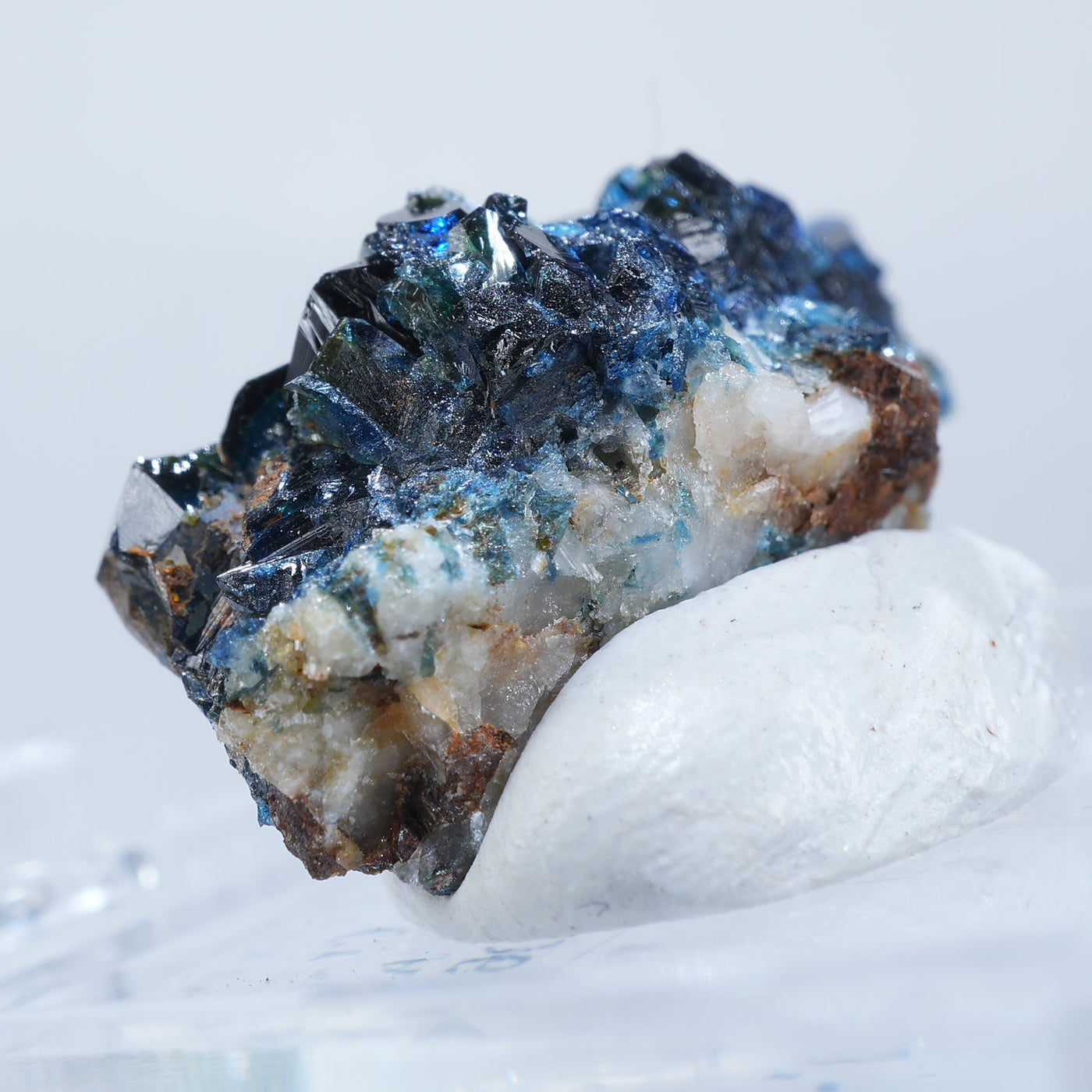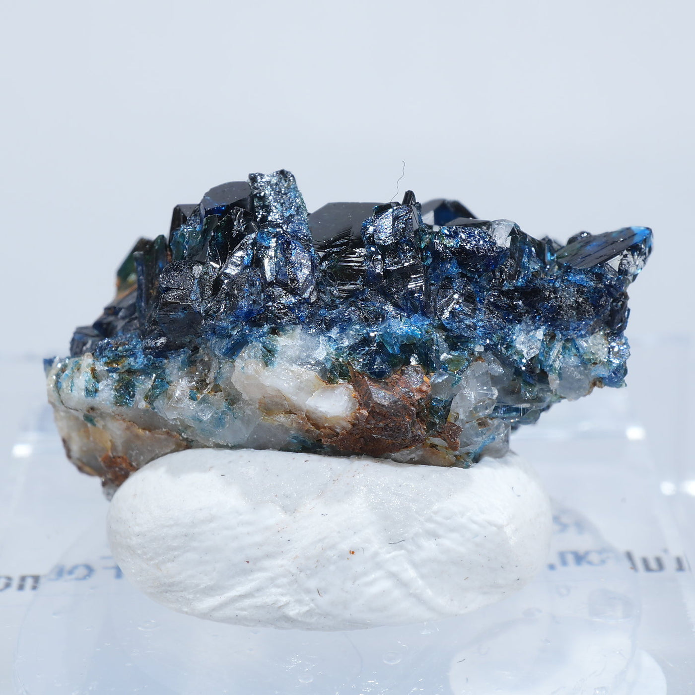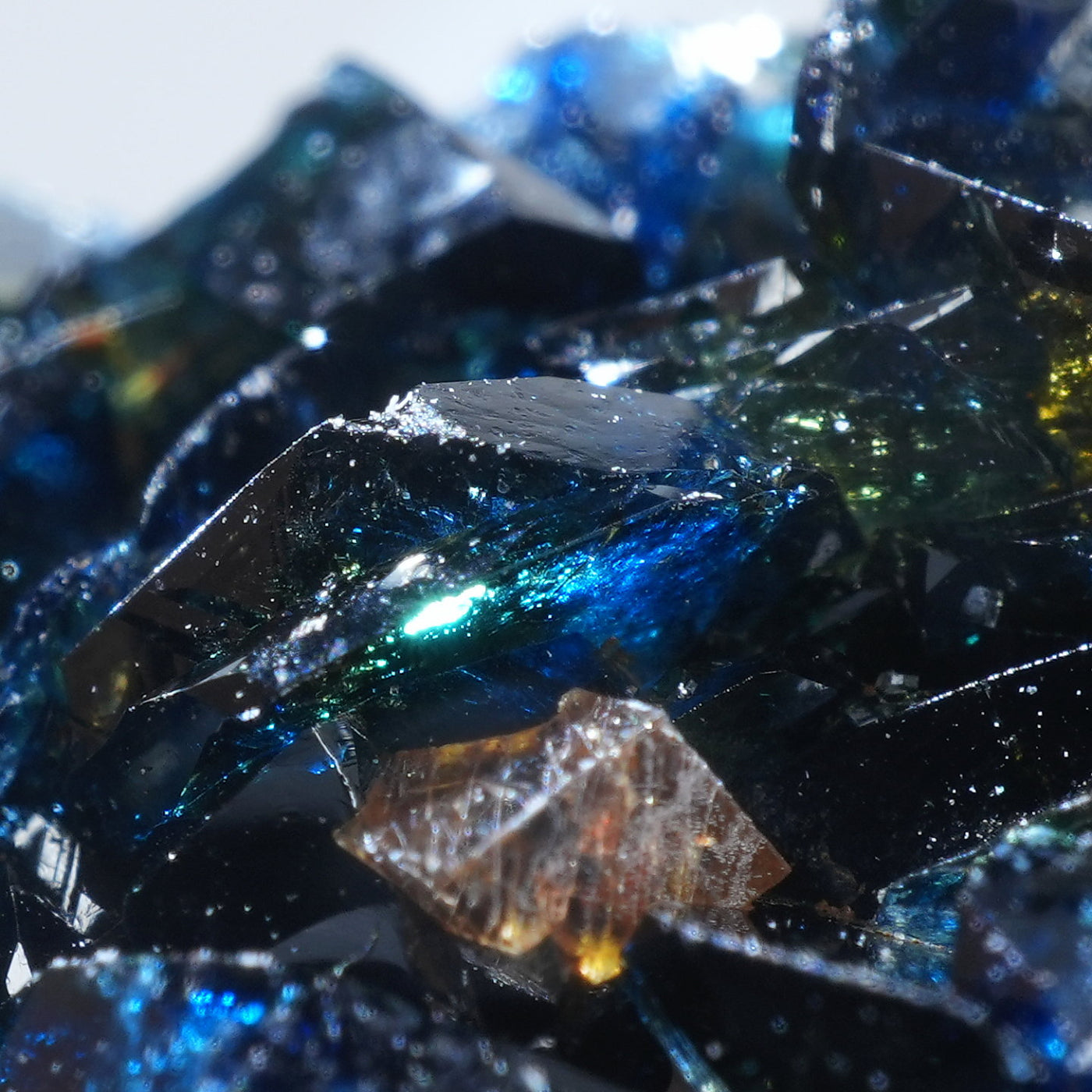 深い藍色のキラキラとした輝きが魅力です。照りが素晴らしく光を透過させた時のブルーの発色も美しい良質な標本です。