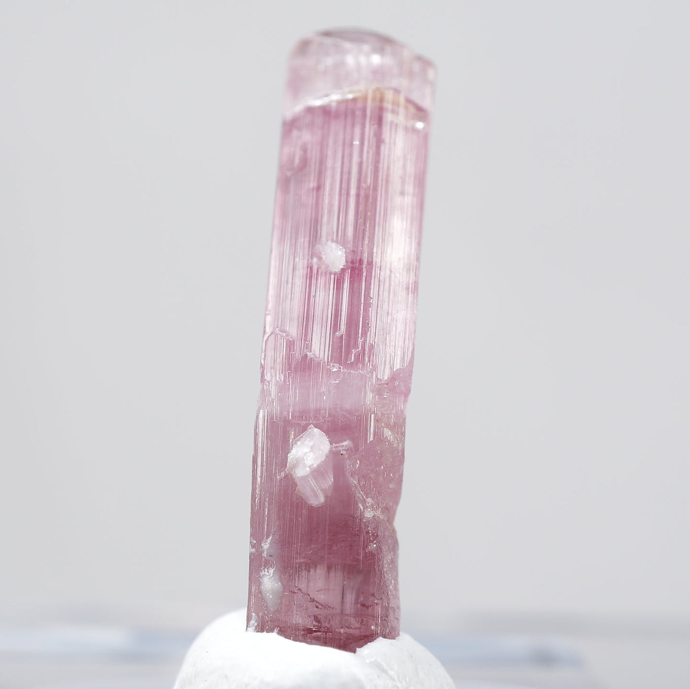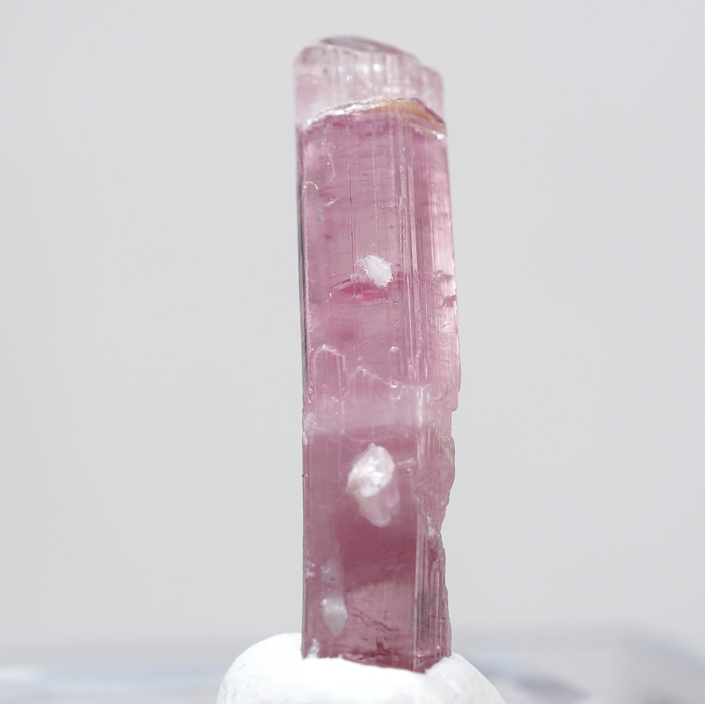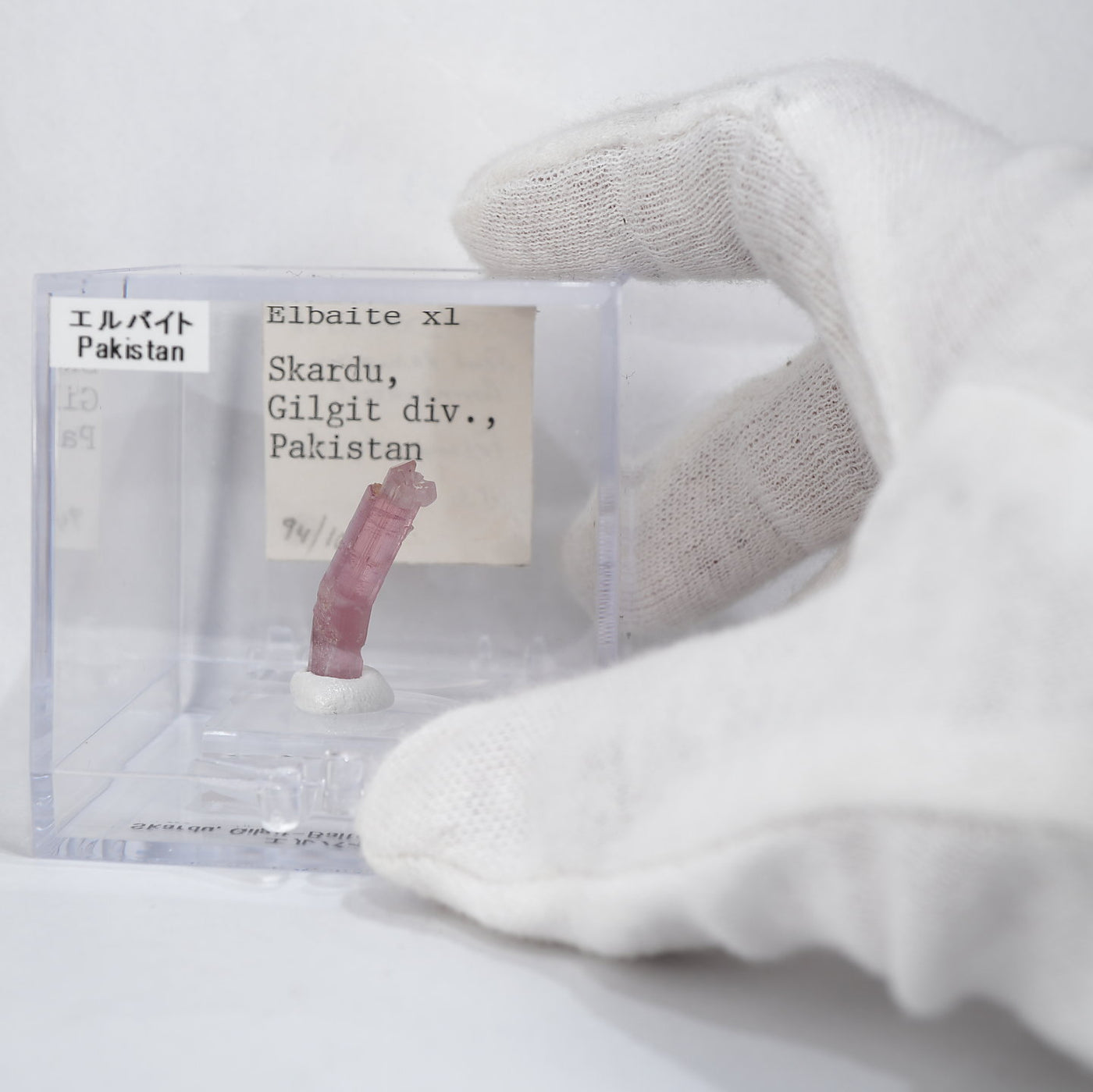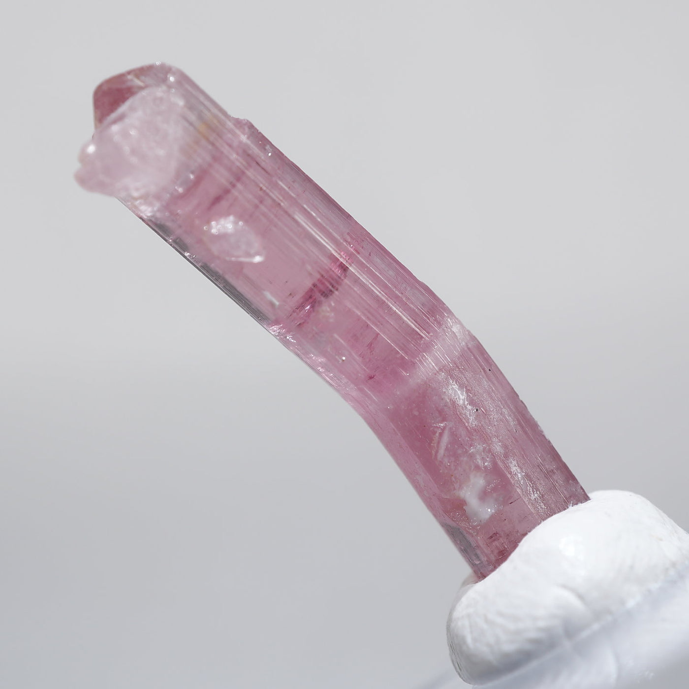 パキスタン産のエルバイトです。照りと透明感のあるピンク色が綺麗です。湾曲している非常に珍しい標本です。