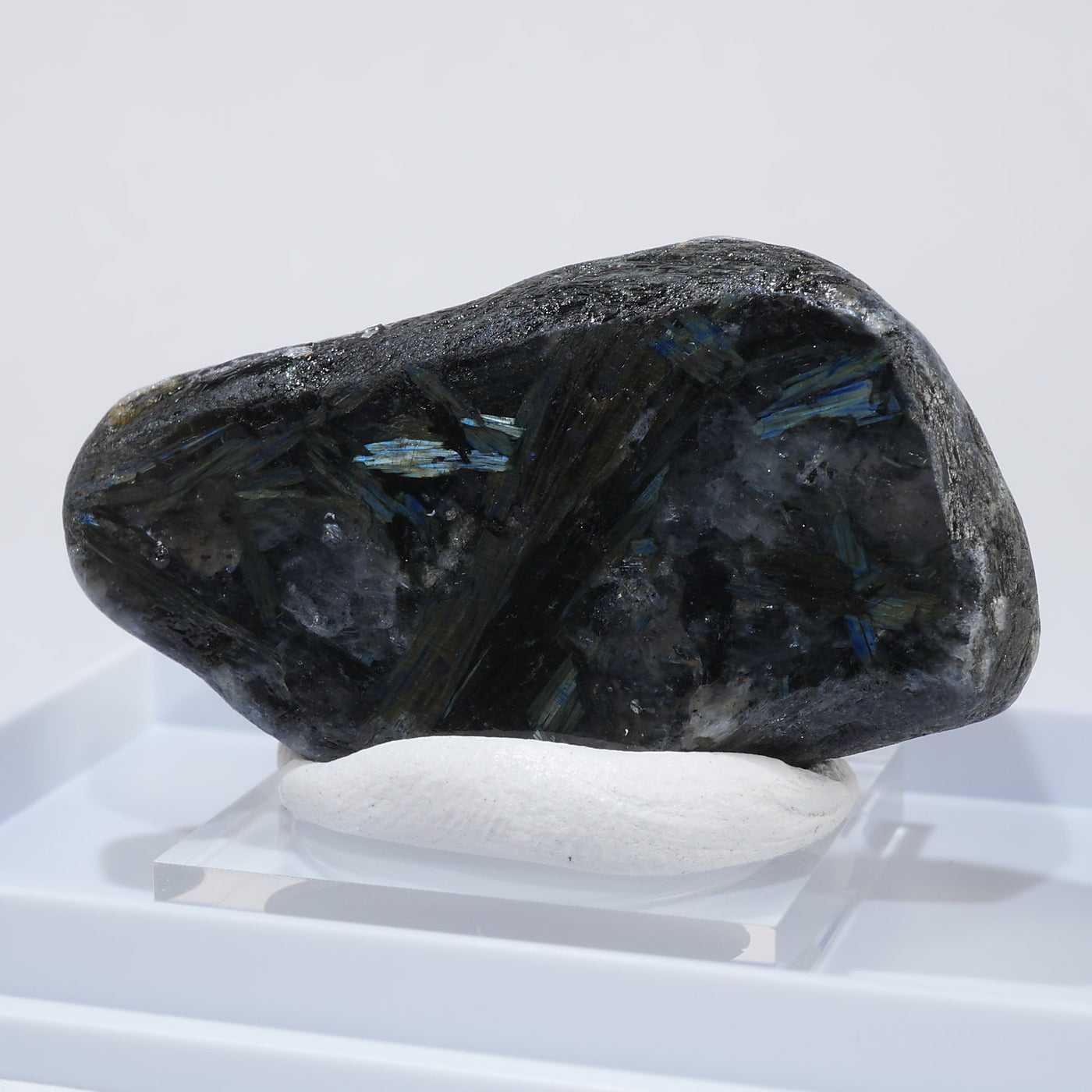 フィンランド産のNuummite(ヌーマイト)です。全体は黒色ですが、角度を変えることで青・黄などの色が揺らめくように見えます。まるでオーロラのようで魅せられます。【産地】Kitka Valley, Kuusamo, North Ostrobothnia, Finland【サイズ】約40mm×20mm×8mm【ご注意】ライトを当てて撮影しております、またご覧になるモニター環境によっても差があり、色合いの違いを感じられる事が有ります。 商品は天然ゆえ写真では確認できない細かな傷や凹み等がある場合もございます。イメージの違いに関しての返品は受付出来かねますのでご了承ください。【その他】価格は税込表示です、送料は全国一律全て無料です。宅配便またはポスト投函便(ヤマト運輸ネコポス)にて配送いたします。発送方法の指定はできません。