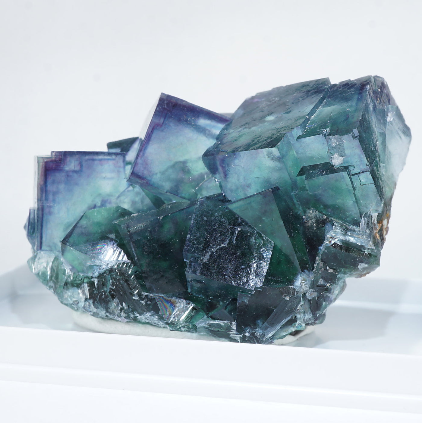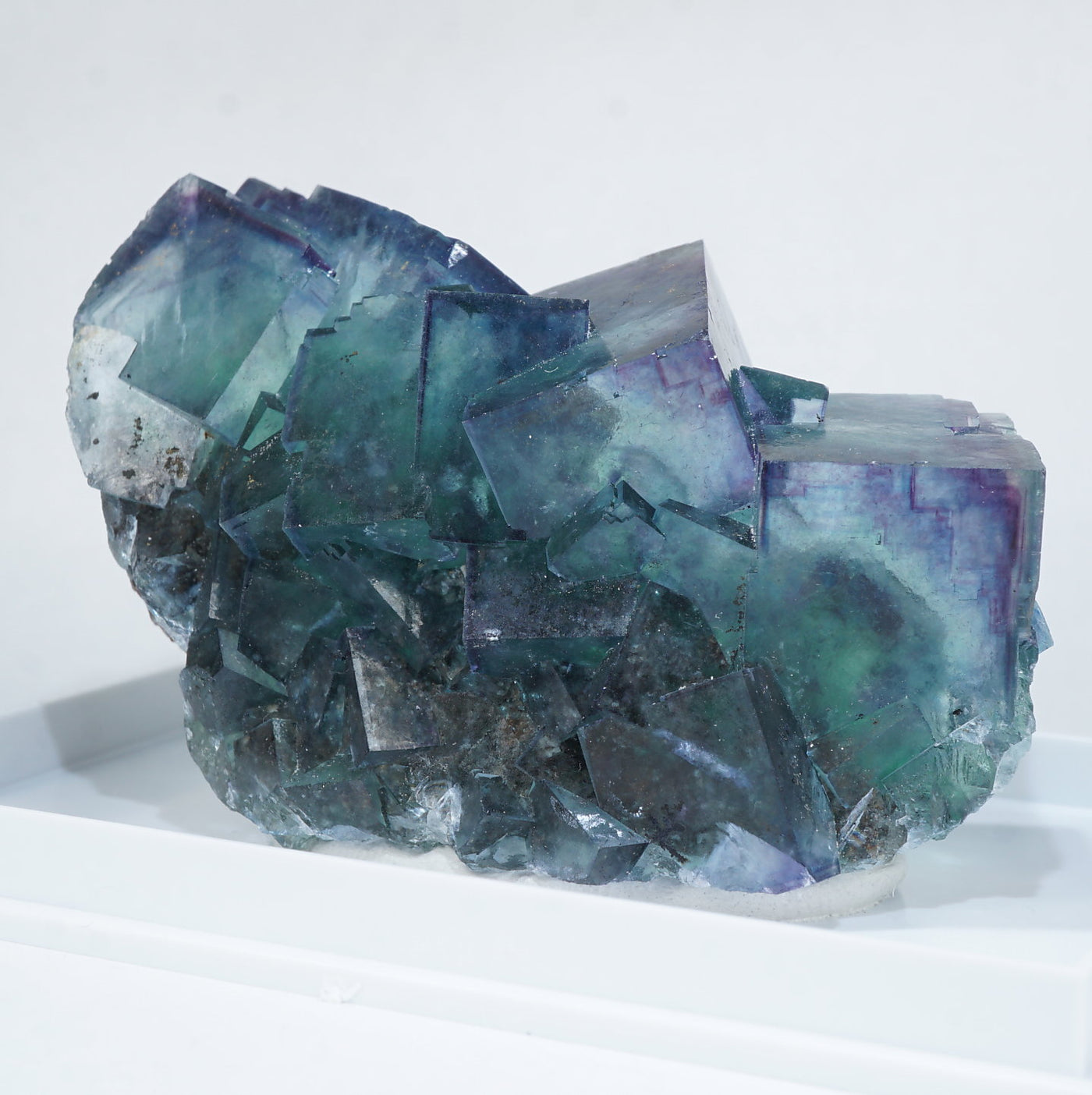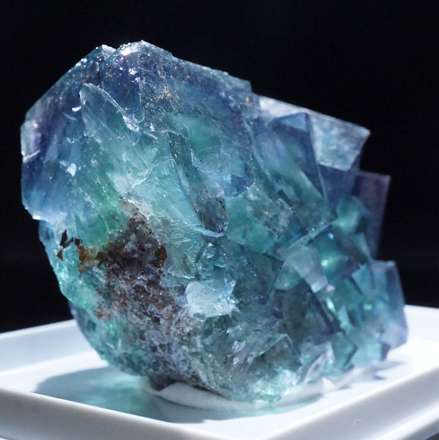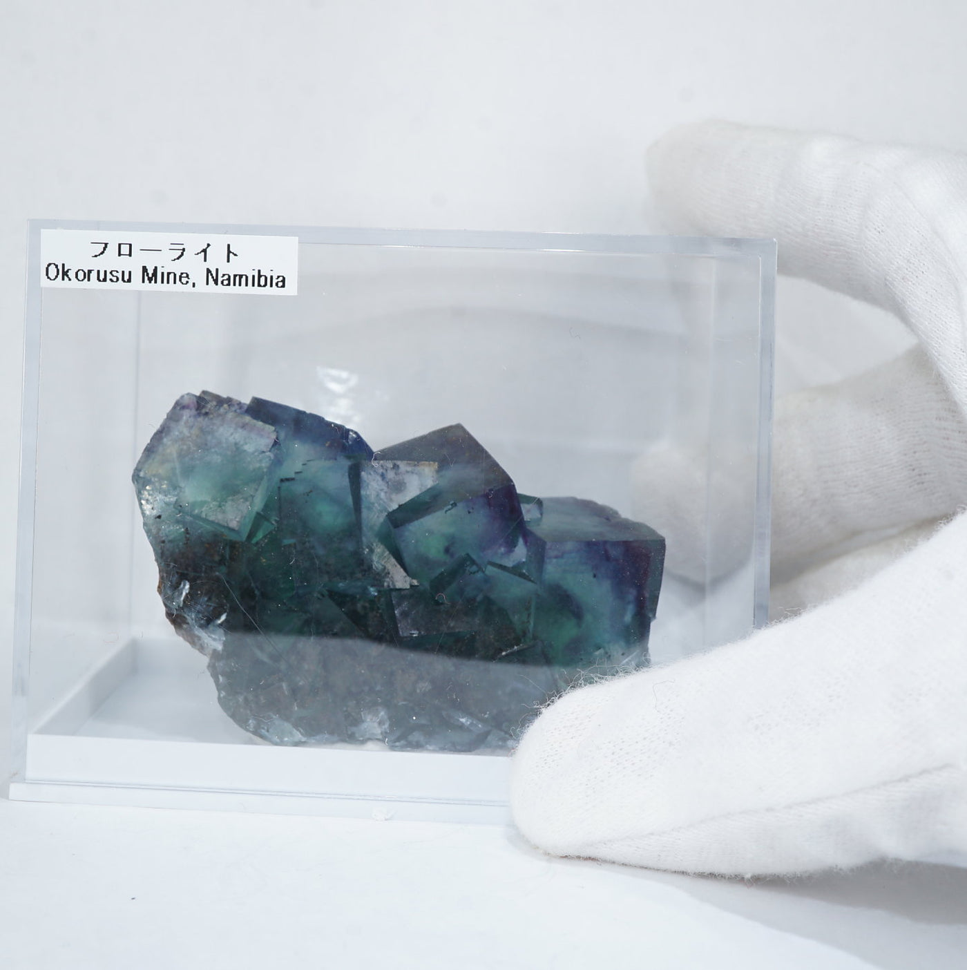 人気のナミビアOkorusu(オコルス)産のフローライトです。深みのある緑色とコーナーの紫色のグラデーションが特徴的な美しい標本です。光を透過させるとその美しさが際立ちます。ブルーとパープルの二重のゾーニングの美しさも魅力です。紫外線ライトを当てると蛍光します。