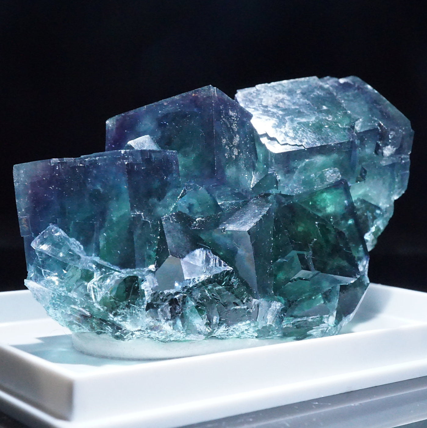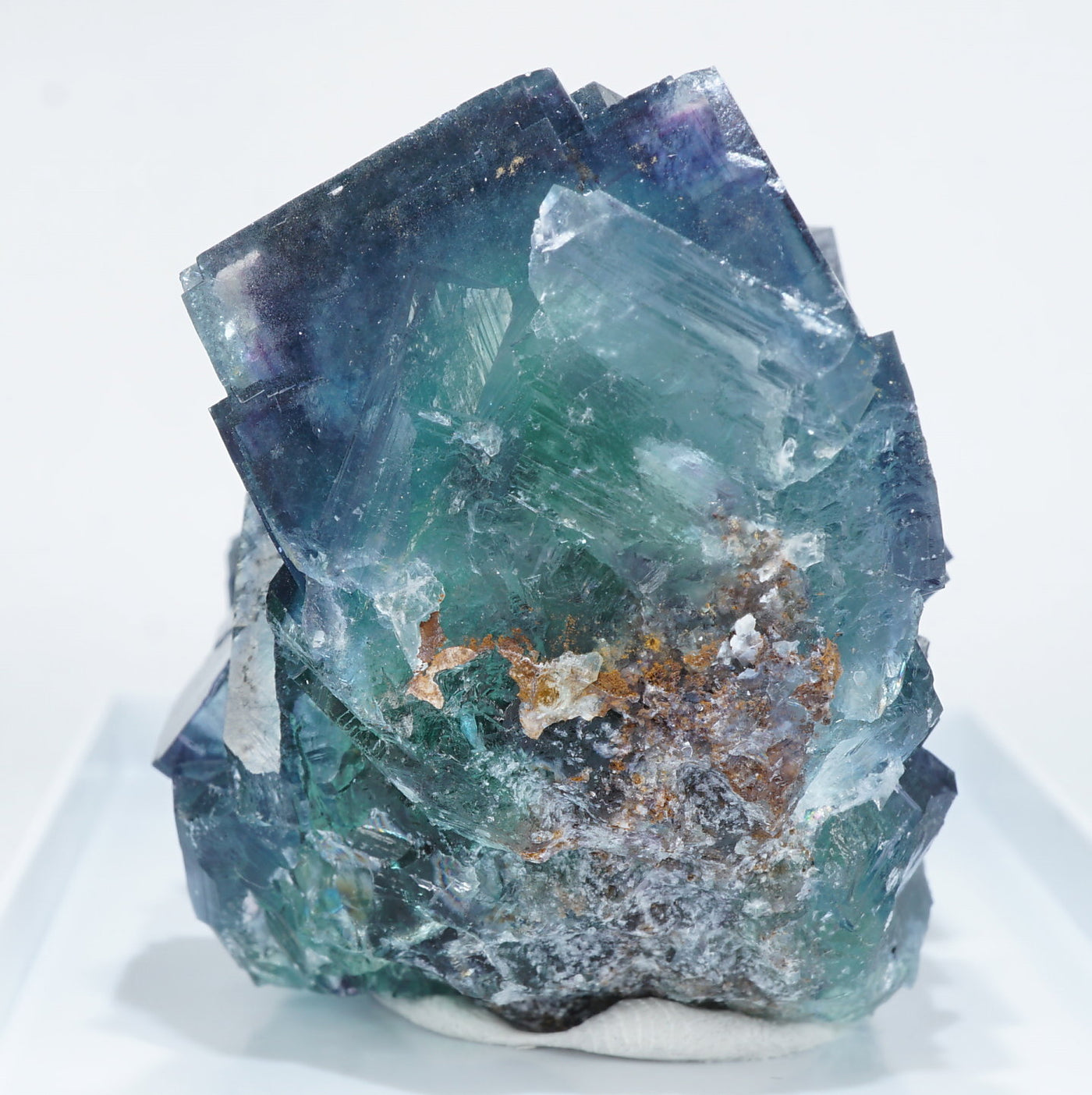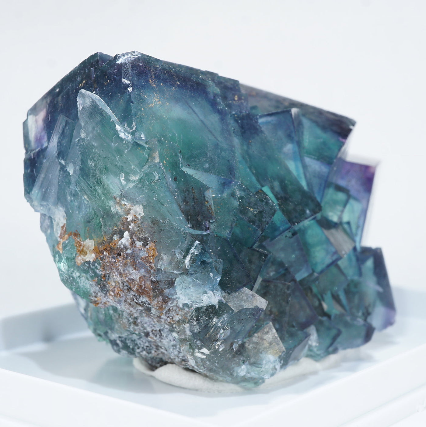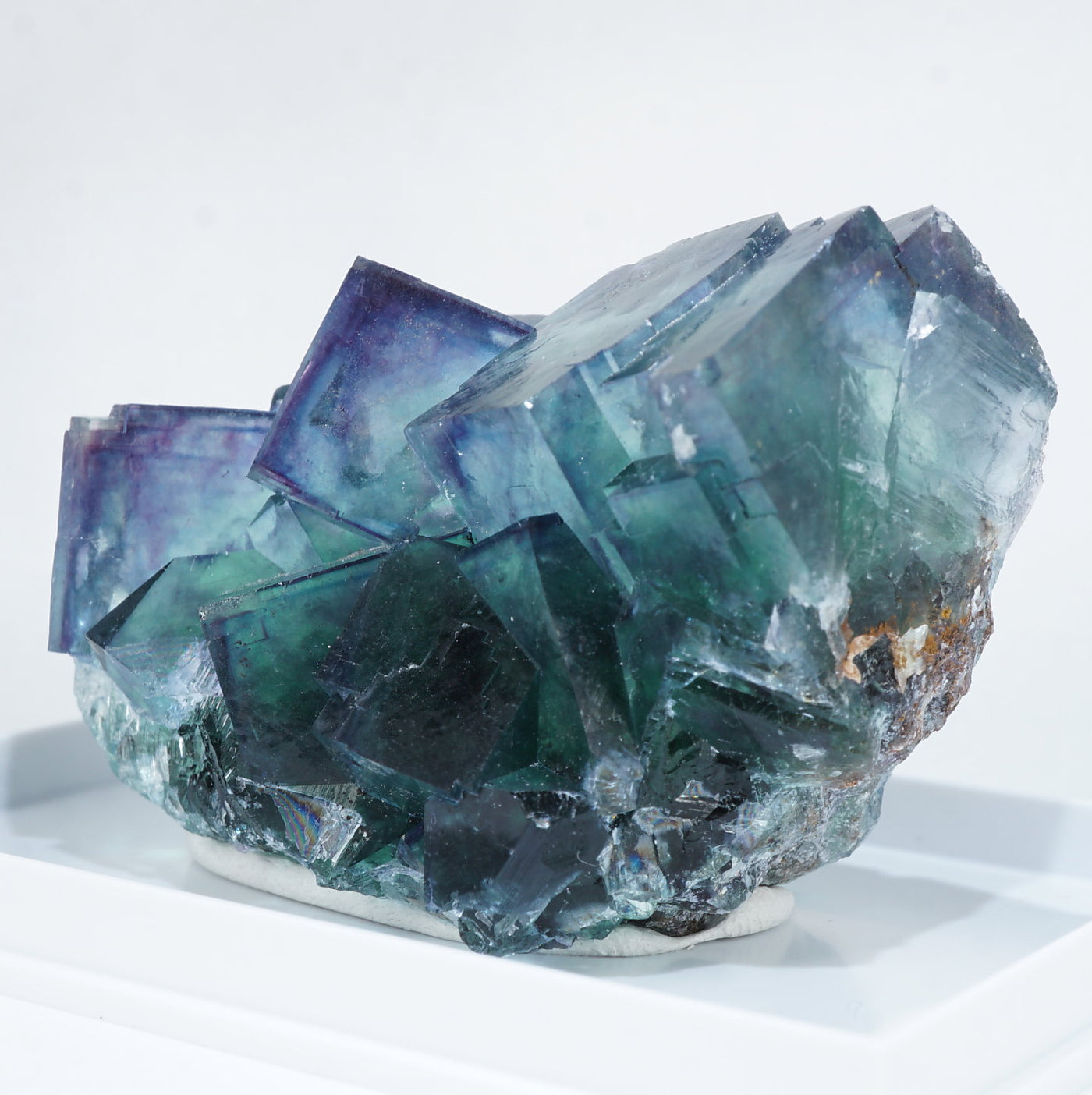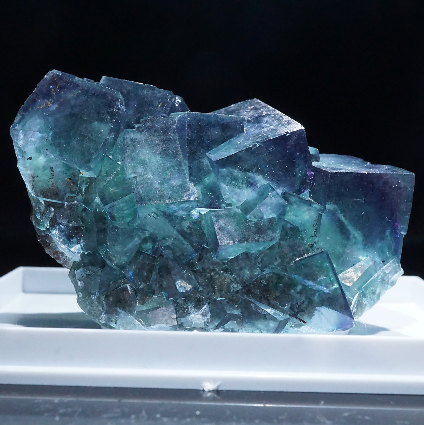 人気のナミビアOkorusu(オコルス)産のフローライトです。深みのある緑色とコーナーの紫色のグラデーションが特徴的な美しい標本です。光を透過させるとその美しさが際立ちます。ブルーとパープルの二重のゾーニングの美しさも魅力です。紫外線ライトを当てると蛍光します。