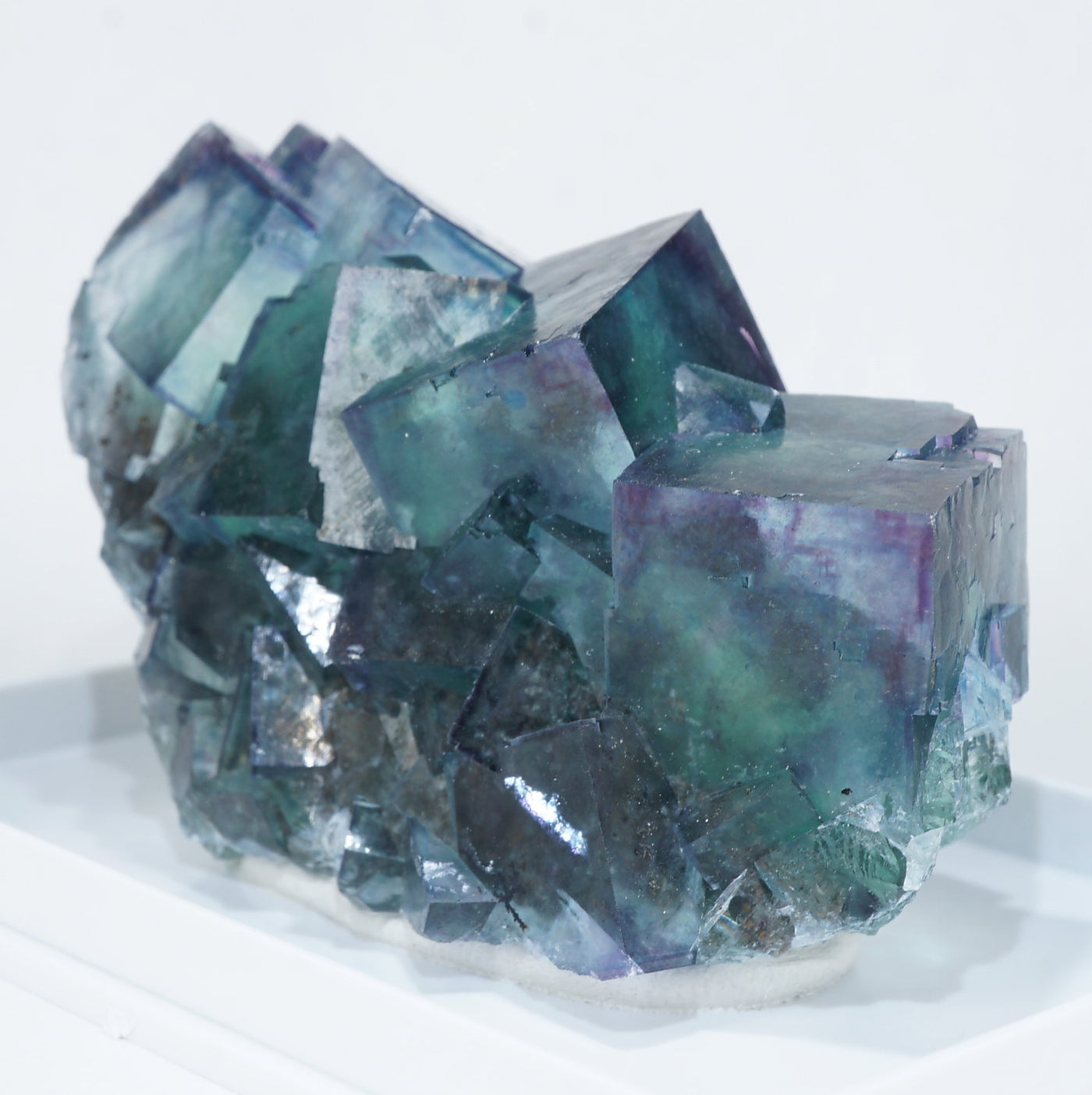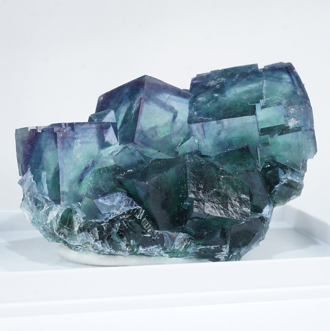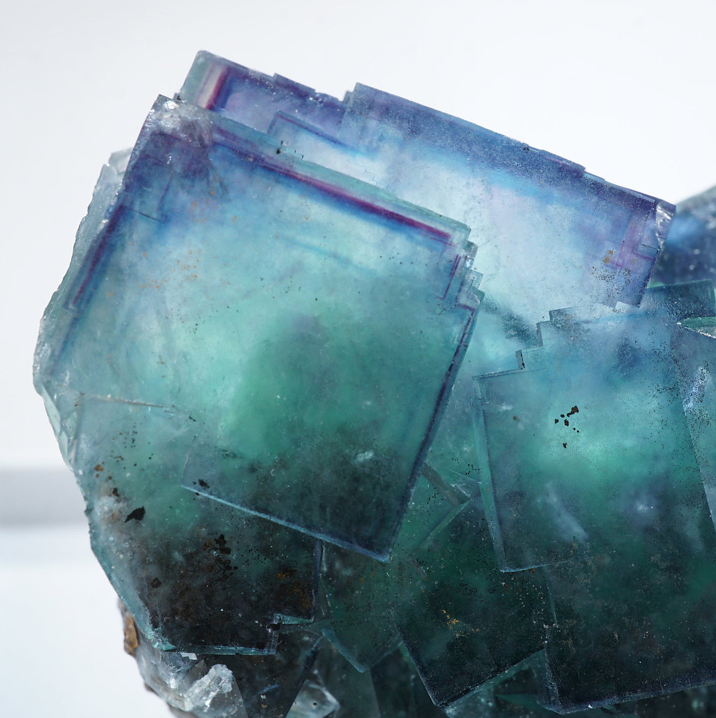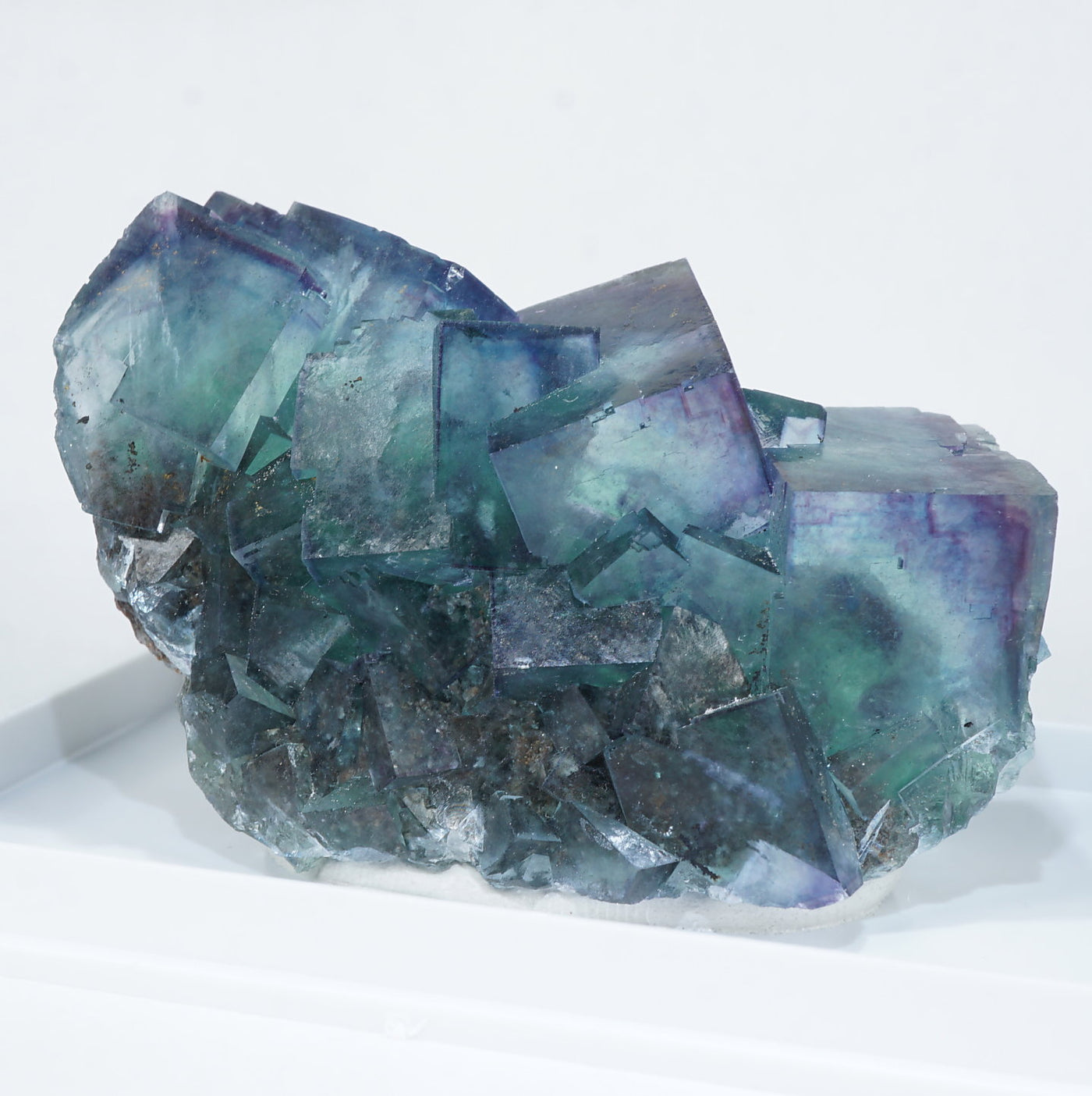 人気のナミビアOkorusu(オコルス)産のフローライトです。深みのある緑色とコーナーの紫色のグラデーションが特徴的な美しい標本です。光を透過させるとその美しさが際立ちます。ブルーとパープルの二重のゾーニングの美しさも魅力です。紫外線ライトを当てると蛍光します。