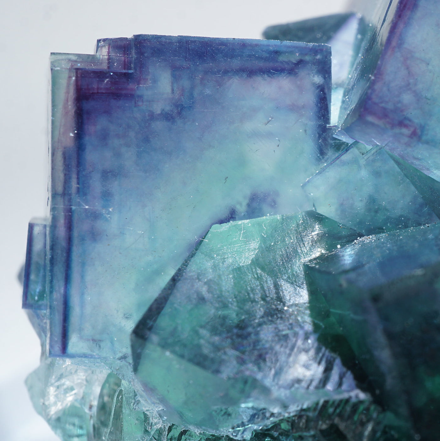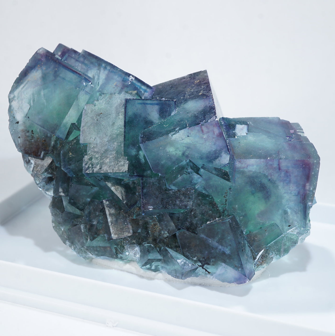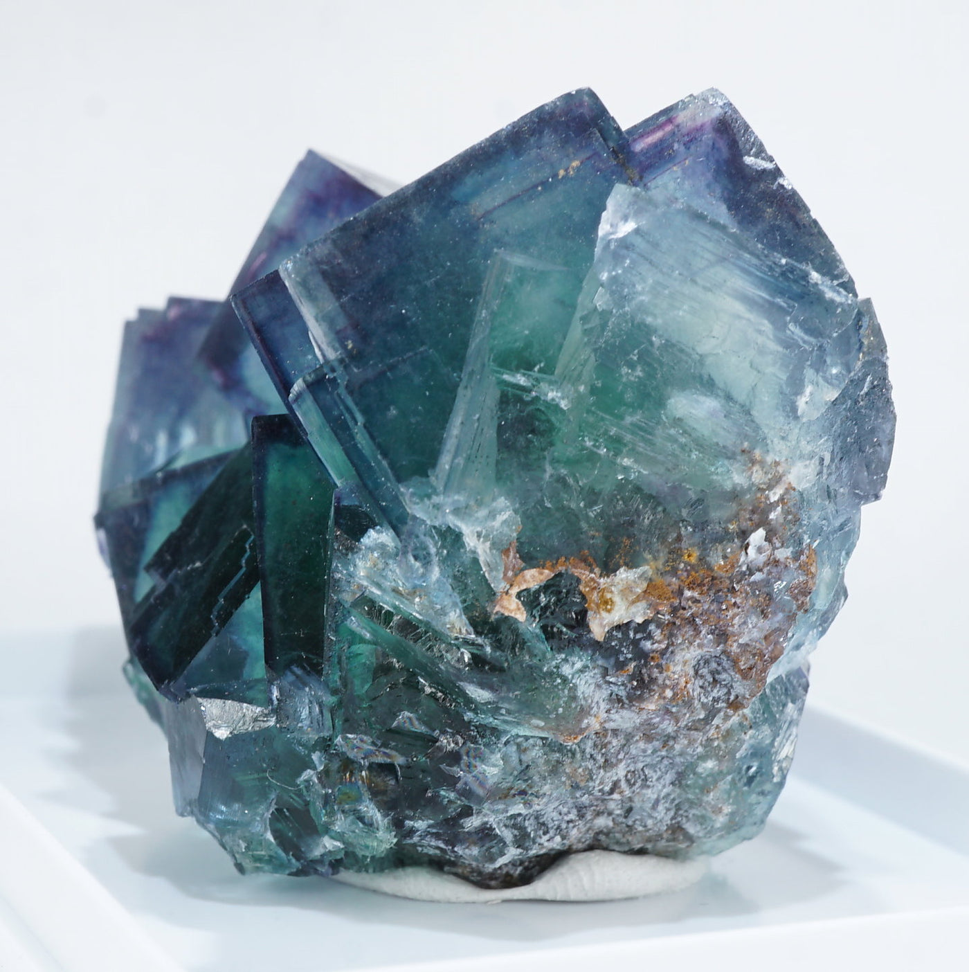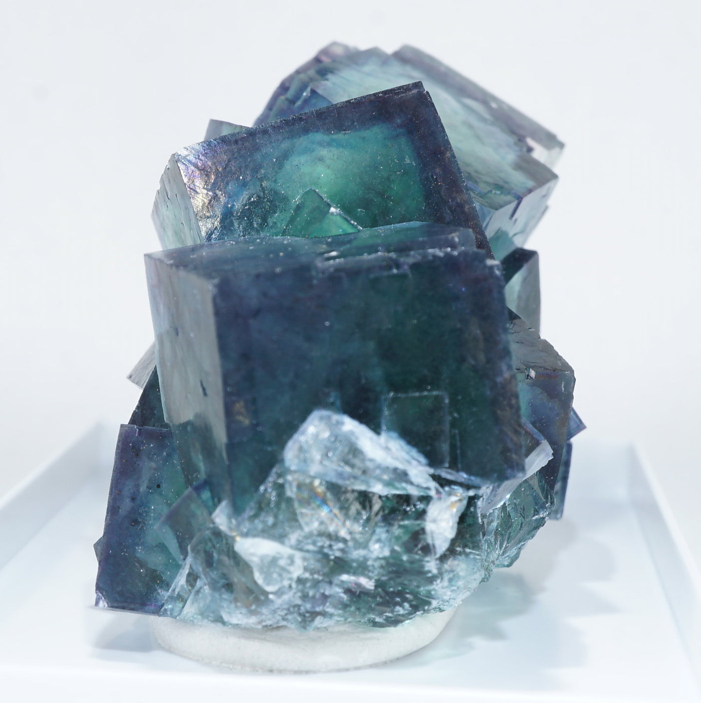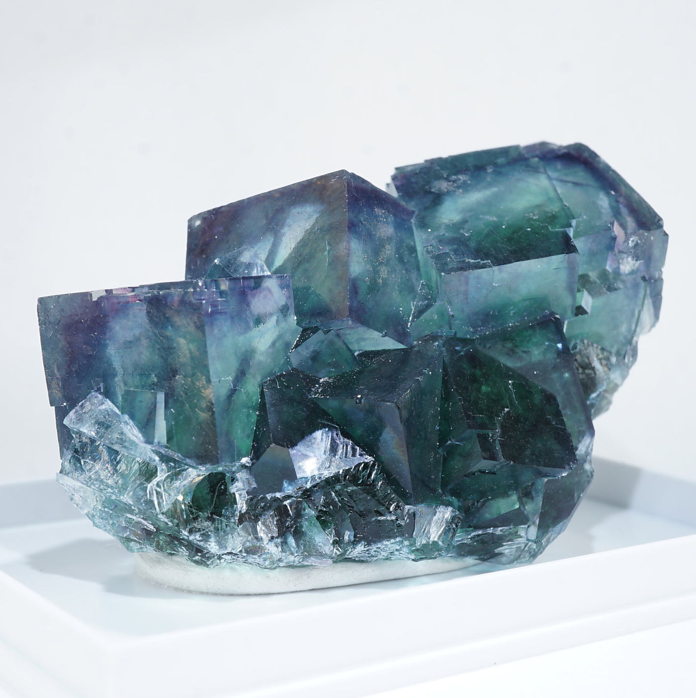 人気のナミビアOkorusu(オコルス)産のフローライトです。深みのある緑色とコーナーの紫色のグラデーションが特徴的な美しい標本です。光を透過させるとその美しさが際立ちます。ブルーとパープルの二重のゾーニングの美しさも魅力です。紫外線ライトを当てると蛍光します。