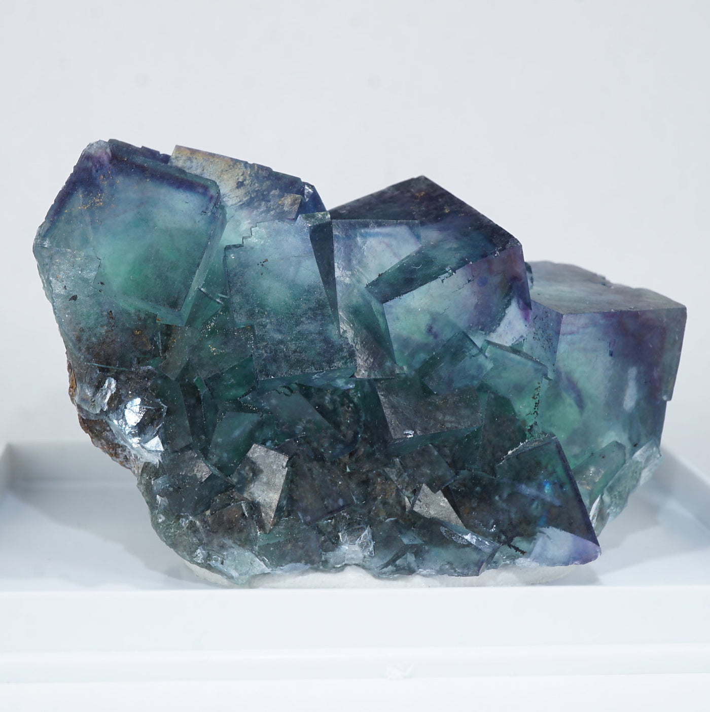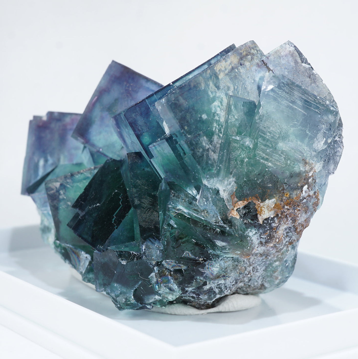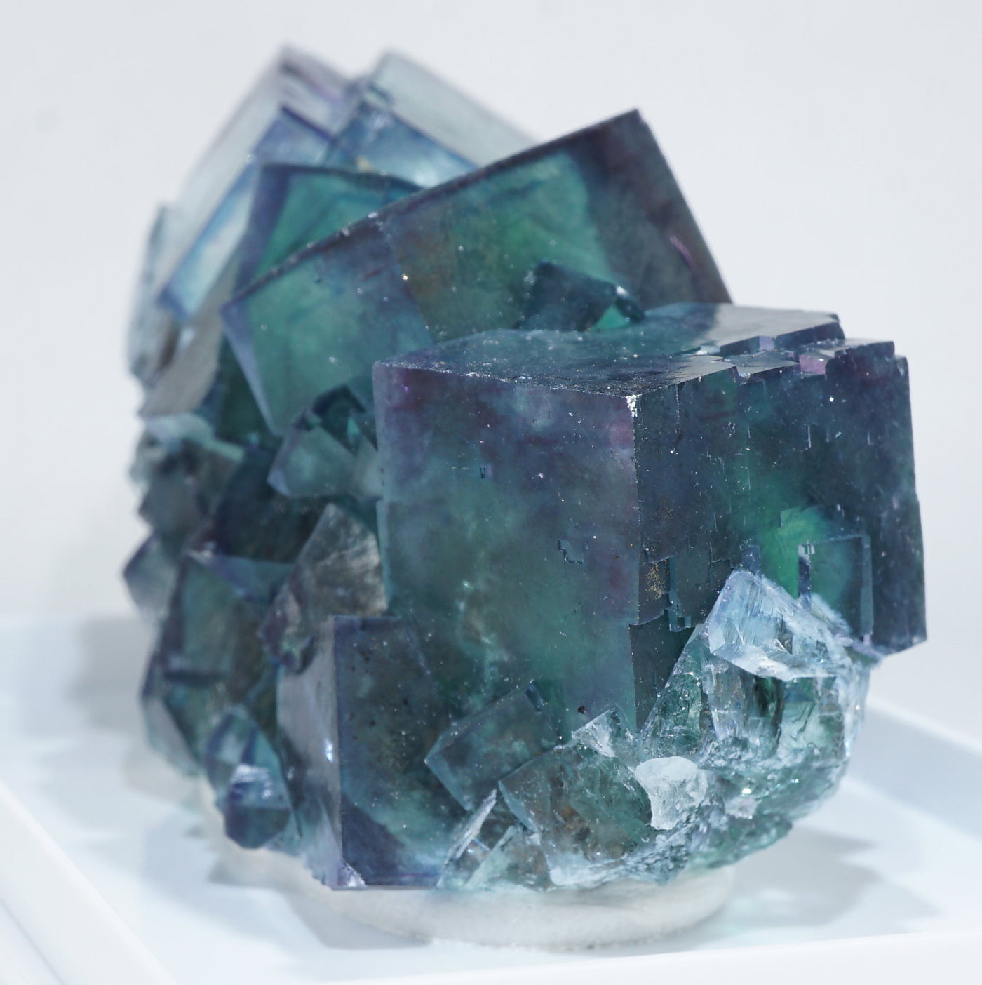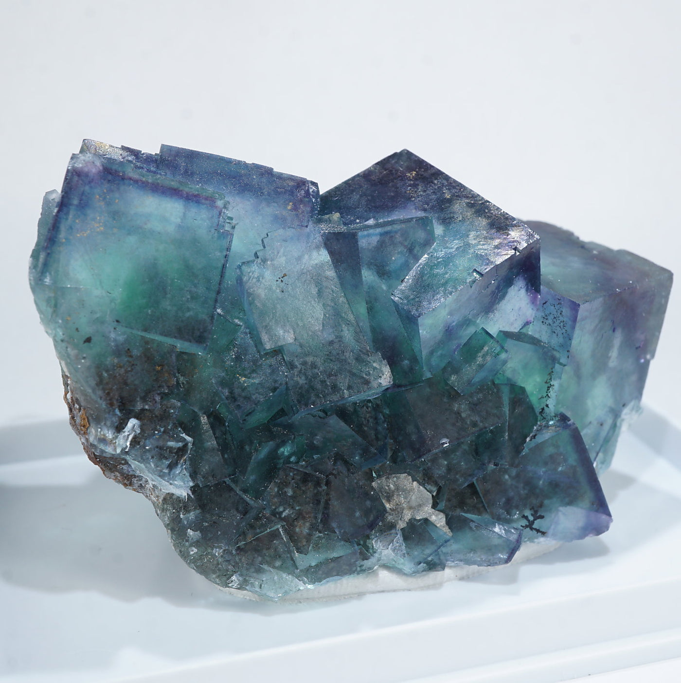 人気のナミビアOkorusu(オコルス)産のフローライトです。深みのある緑色とコーナーの紫色のグラデーションが特徴的な美しい標本です。光を透過させるとその美しさが際立ちます。ブルーとパープルの二重のゾーニングの美しさも魅力です。紫外線ライトを当てると蛍光します。
