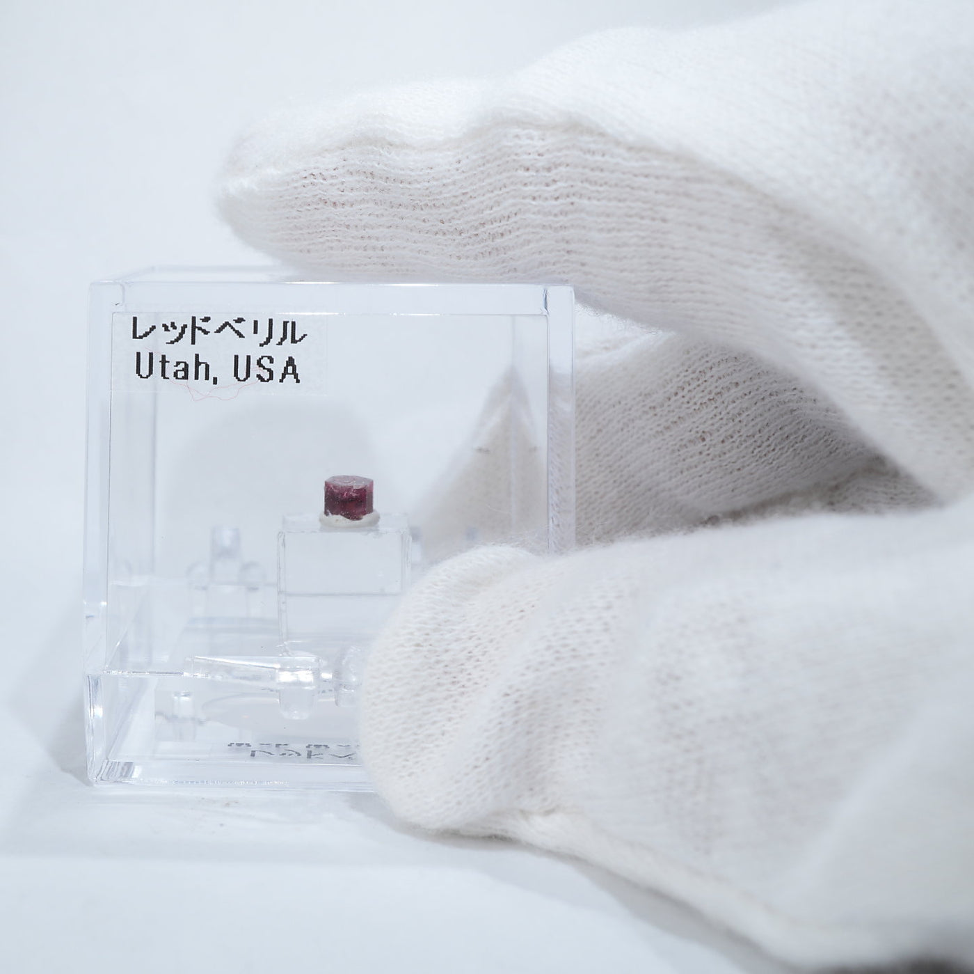 アメリカ ユタ州産のレッドベリルです。鮮やかな赤紫色が特徴です。透明感と艶のある良質な結晶です。【産地】Wah Wah Mts, Utah, USA【サイズ】約3.9mm×3.3mm×3.0mm【ご注意】ライトを当てて撮影しております、またご覧になるモニター環境によっても差があり、色合いの違いを感じられる事が有ります。 商品は天然ゆえ写真では確認できない細かな傷や凹み等がある場合もございます。イメージの違いに関しての返品は受付出来かねますのでご了承ください。【その他】価格は税込表示です、送料は全国一律全て無料です。宅配便またはポスト投函便(ヤマト運輸ネコポス)にて配送いたします。発送方法の指定はできません。