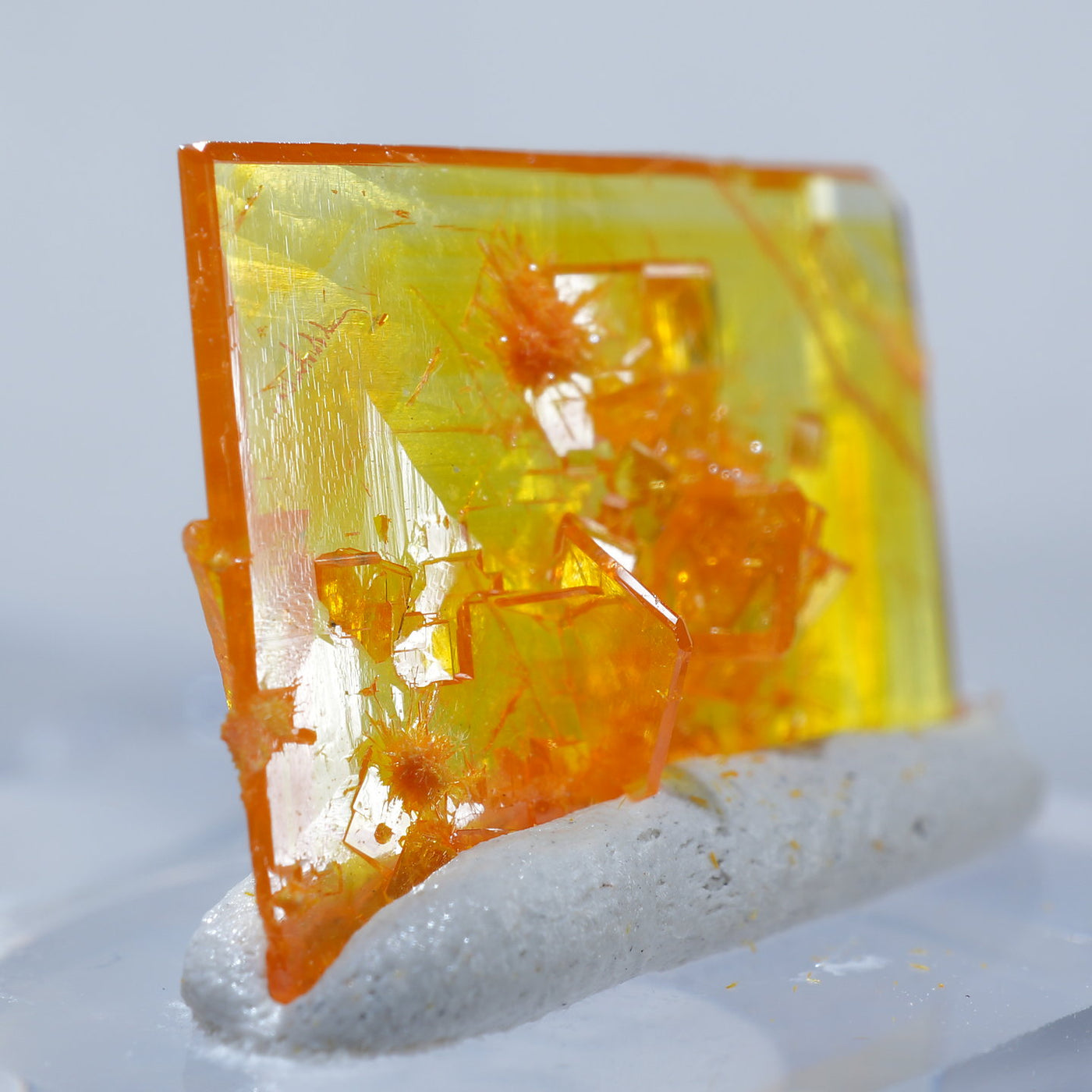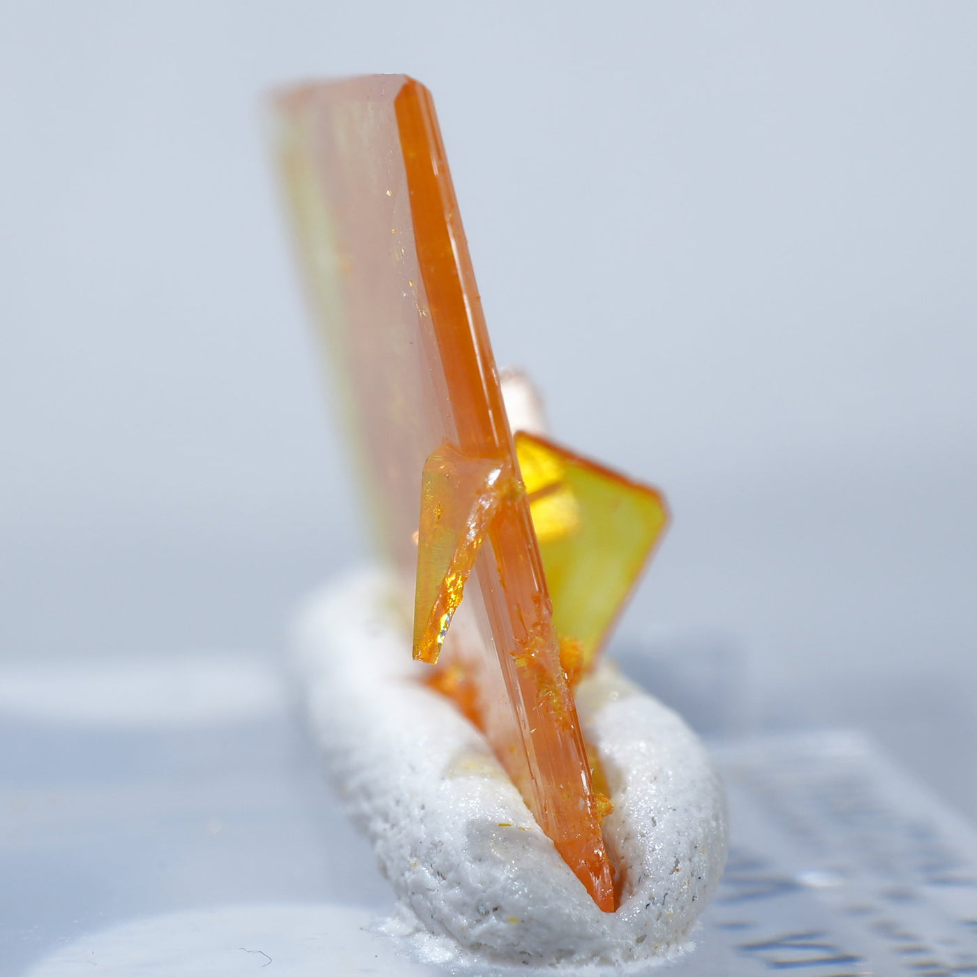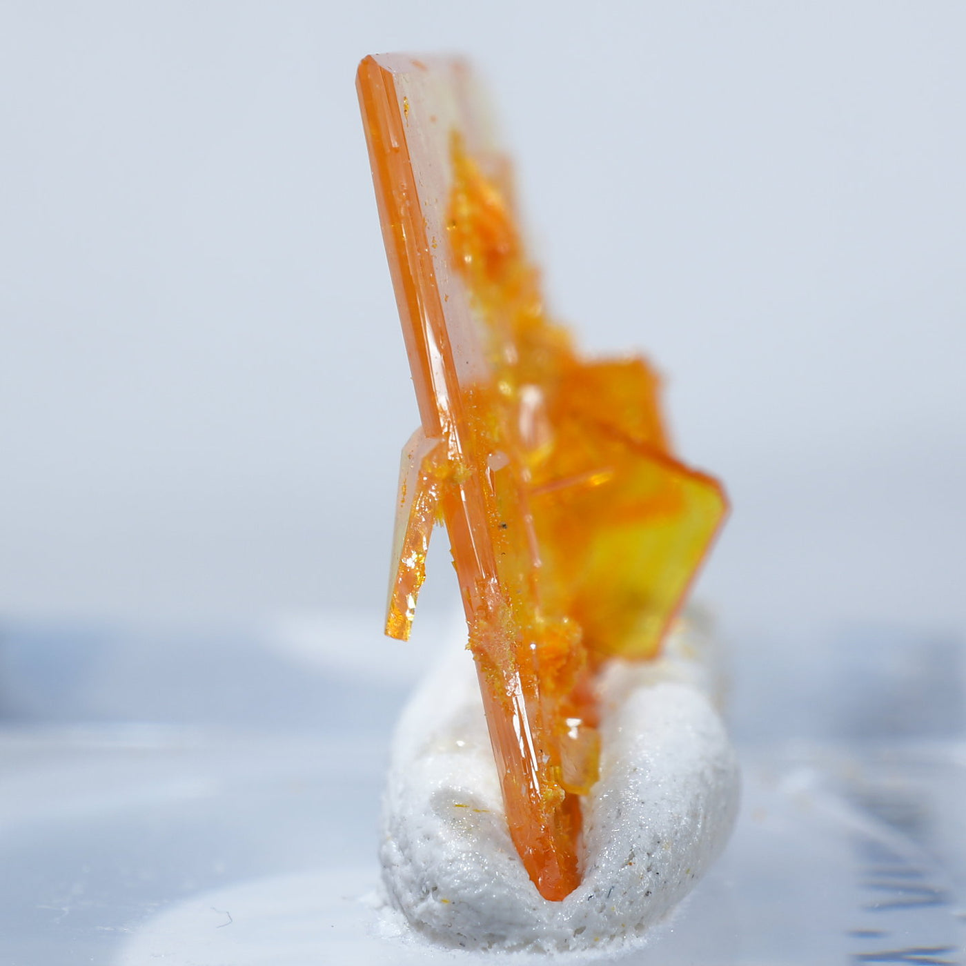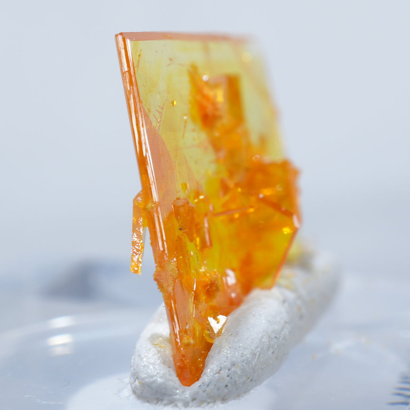 アメリカ アリゾナ州産 Wulfenite・Mimetite(ウルフェナイト・ミメタイト)です。紙のように薄くて繊細な板状のウルフェナイトが印象的です。シャープなウルフェナイトにほわほわのミメタイトが共生しています。透明感があり、発色のよい良質な標本です。【産地】Rowley Mine, Theba, Maricopa County, Arizona, USA【サイズ】約16mm×10mm×3mm【ご注意】ライトを当てて撮影しております、またご覧になるモニター環境によっても差があり、色合いの違いを感じられる事が有ります。 商品は天然ゆえ写真では確認できない細かな傷や凹み等がある場合もございます。イメージの違いに関しての返品は受付出来かねますのでご了承ください。【その他】価格は税込表示です、送料は全国一律全て無料です。宅配便またはポスト投函便(ヤマト運輸ネコポス)にて配送いたします。発送方法の指定はできません。