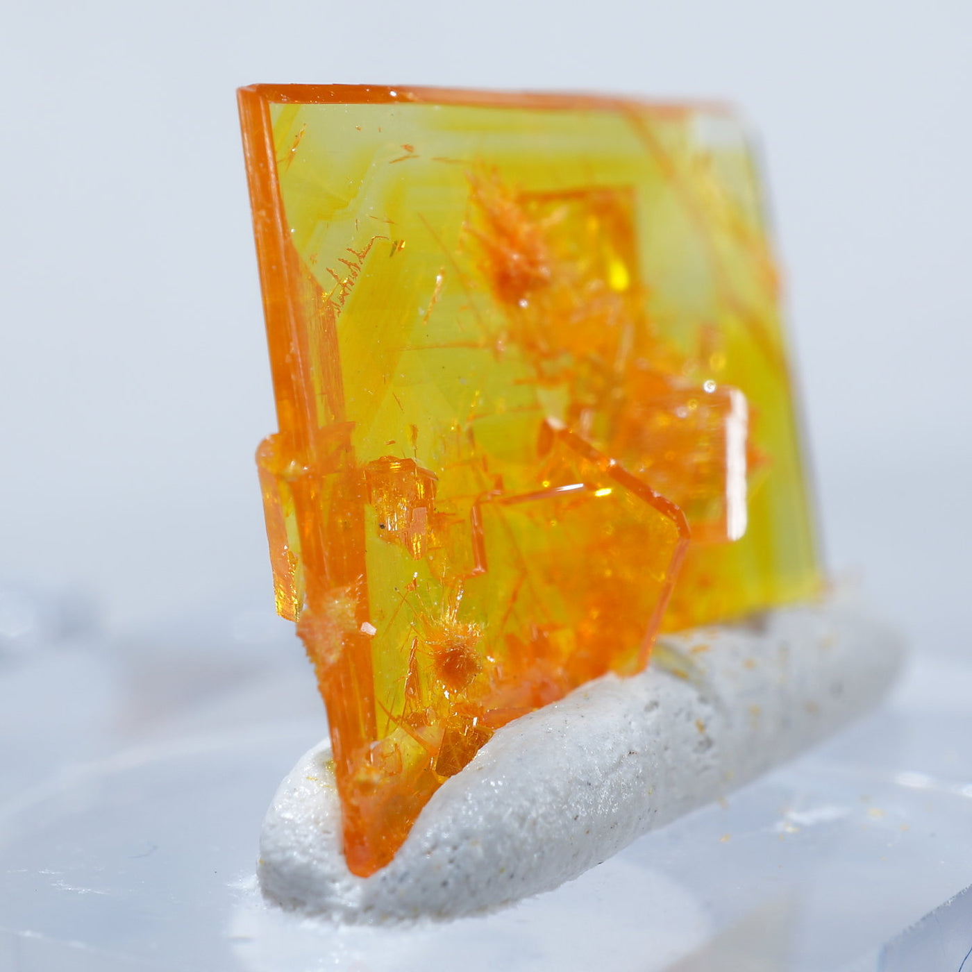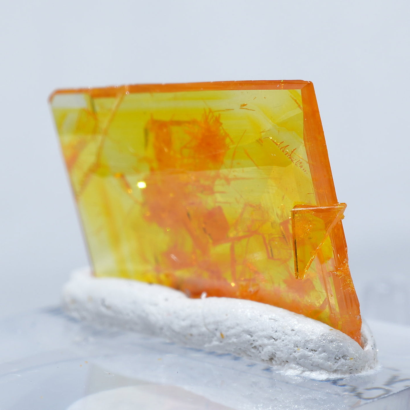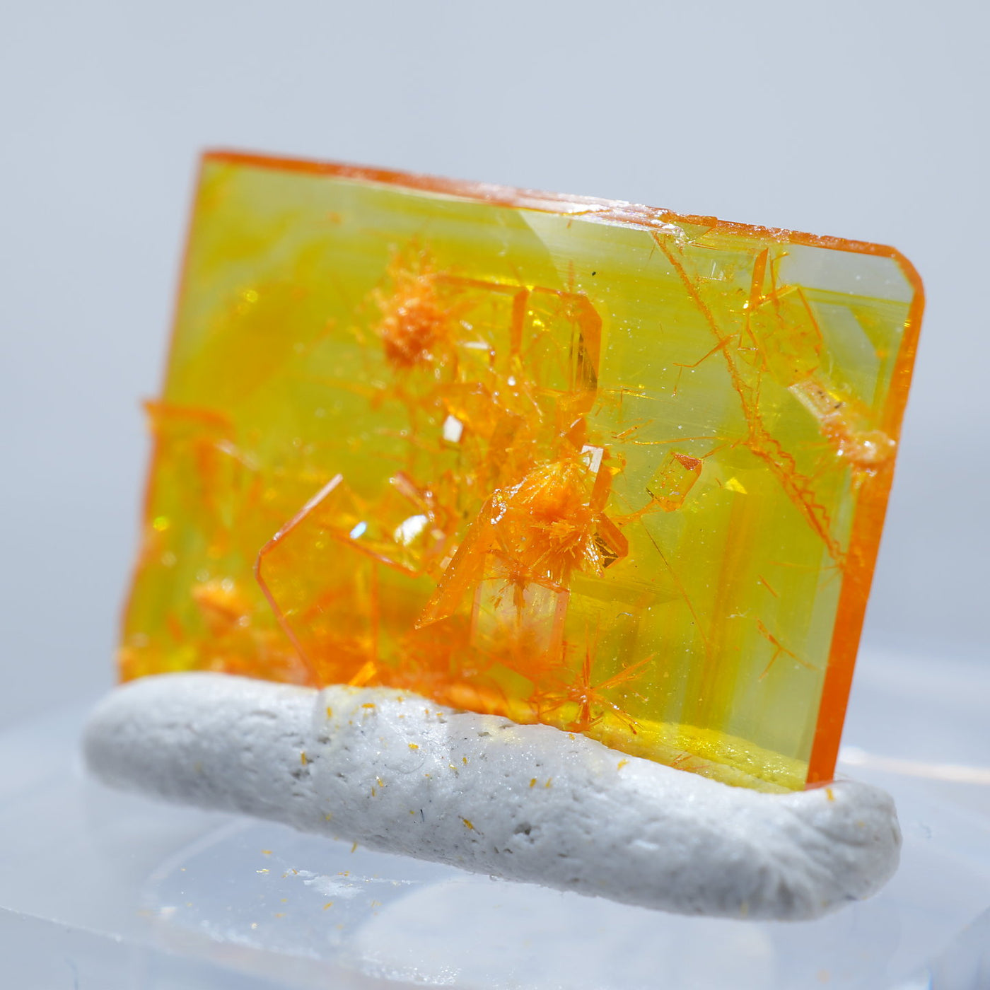 アメリカ アリゾナ州産 Wulfenite・Mimetite(ウルフェナイト・ミメタイト)です。紙のように薄くて繊細な板状のウルフェナイトが印象的です。シャープなウルフェナイトにほわほわのミメタイトが共生しています。透明感があり、発色のよい良質な標本です。【産地】Rowley Mine, Theba, Maricopa County, Arizona, USA【サイズ】約16mm×10mm×3mm【ご注意】ライトを当てて撮影しております、またご覧になるモニター環境によっても差があり、色合いの違いを感じられる事が有ります。 商品は天然ゆえ写真では確認できない細かな傷や凹み等がある場合もございます。イメージの違いに関しての返品は受付出来かねますのでご了承ください。【その他】価格は税込表示です、送料は全国一律全て無料です。宅配便またはポスト投函便(ヤマト運輸ネコポス)にて配送いたします。発送方法の指定はできません。