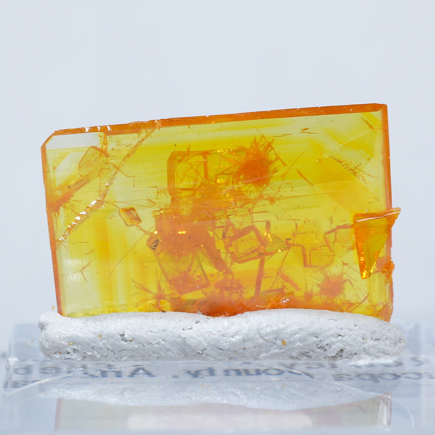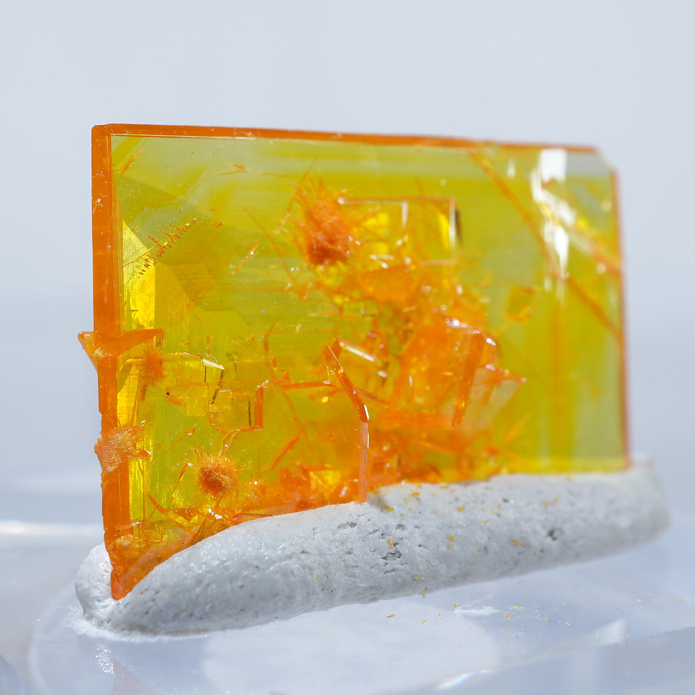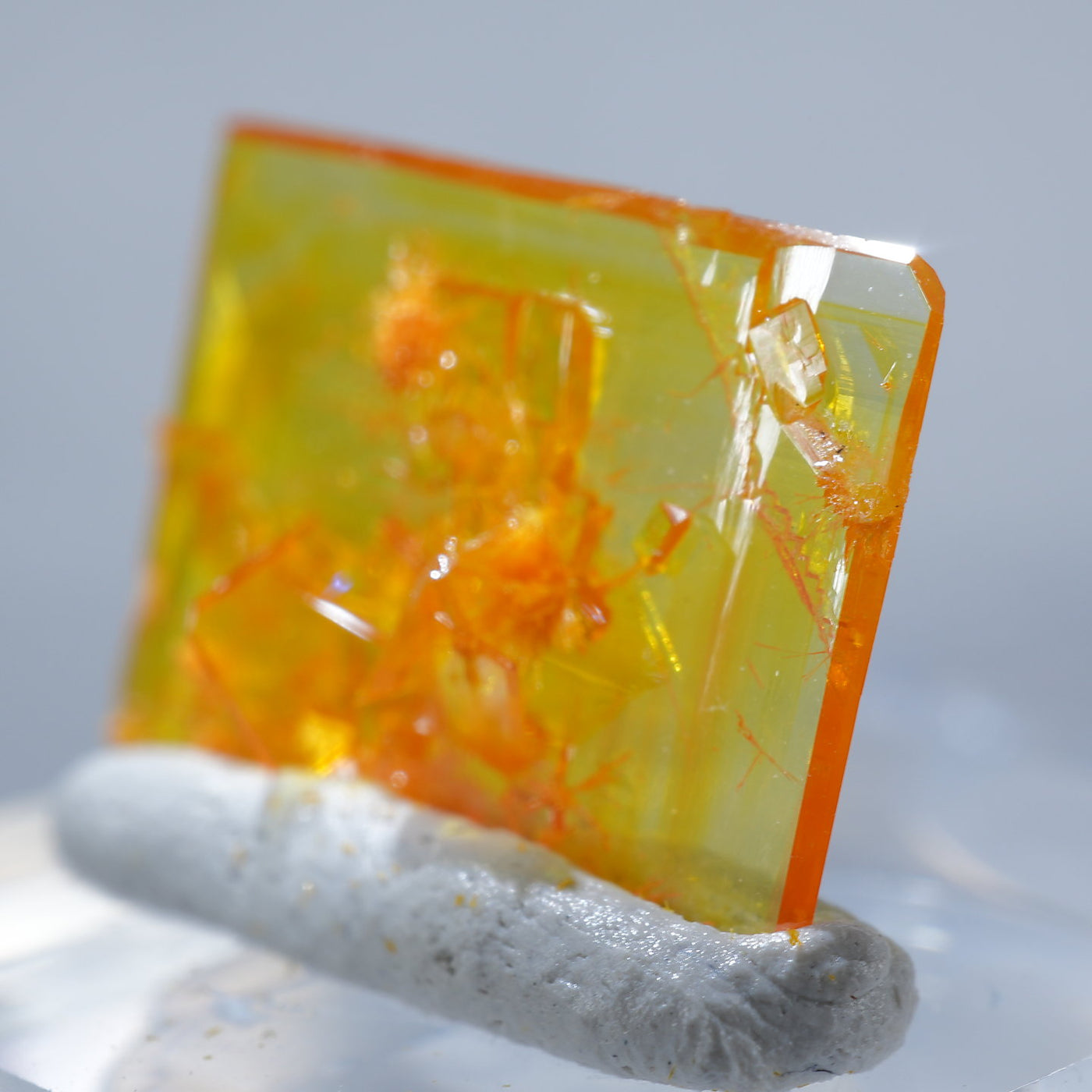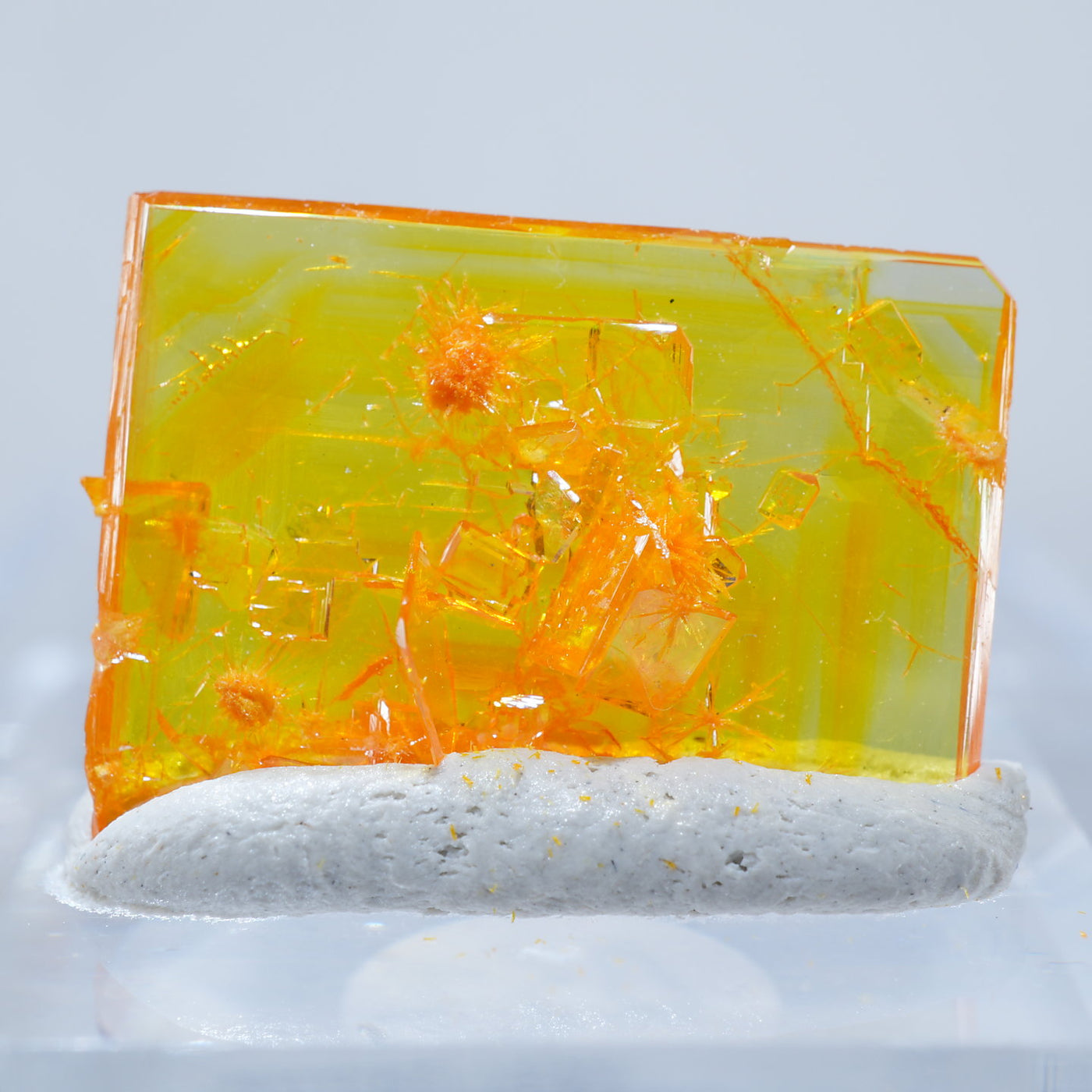 アメリカ アリゾナ州産 Wulfenite・Mimetite(ウルフェナイト・ミメタイト)です。紙のように薄くて繊細な板状のウルフェナイトが印象的です。シャープなウルフェナイトにほわほわのミメタイトが共生しています。透明感があり、発色のよい良質な標本です。【産地】Rowley Mine, Theba, Maricopa County, Arizona, USA【サイズ】約16mm×10mm×3mm【ご注意】ライトを当てて撮影しております、またご覧になるモニター環境によっても差があり、色合いの違いを感じられる事が有ります。 商品は天然ゆえ写真では確認できない細かな傷や凹み等がある場合もございます。イメージの違いに関しての返品は受付出来かねますのでご了承ください。【その他】価格は税込表示です、送料は全国一律全て無料です。宅配便またはポスト投函便(ヤマト運輸ネコポス)にて配送いたします。発送方法の指定はできません。