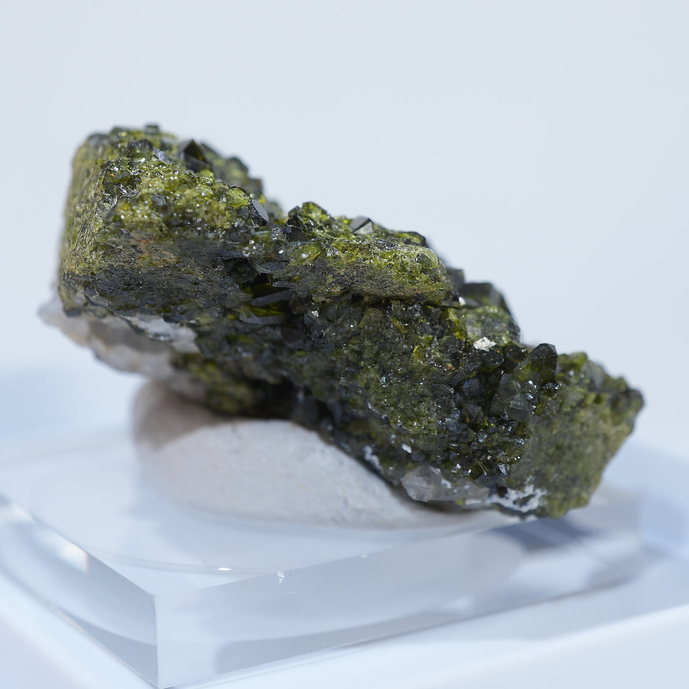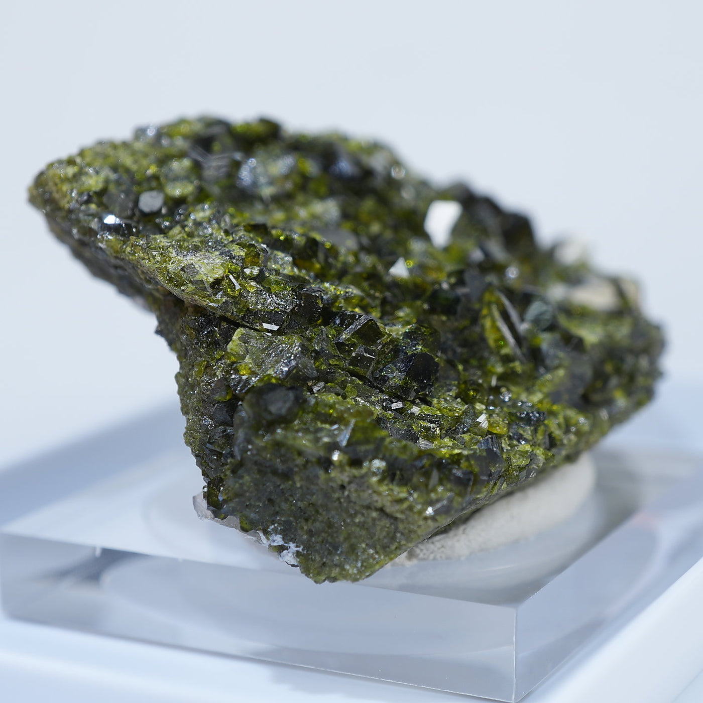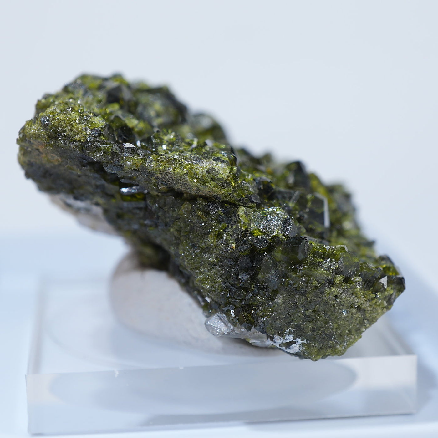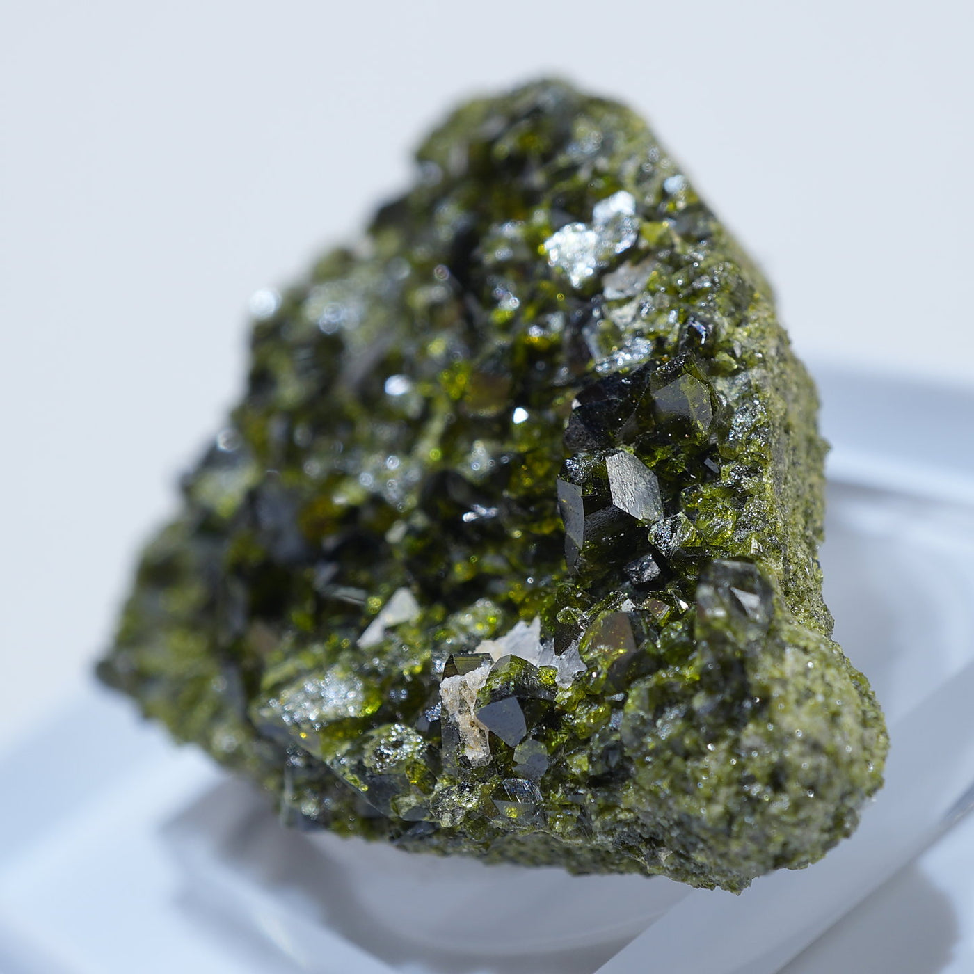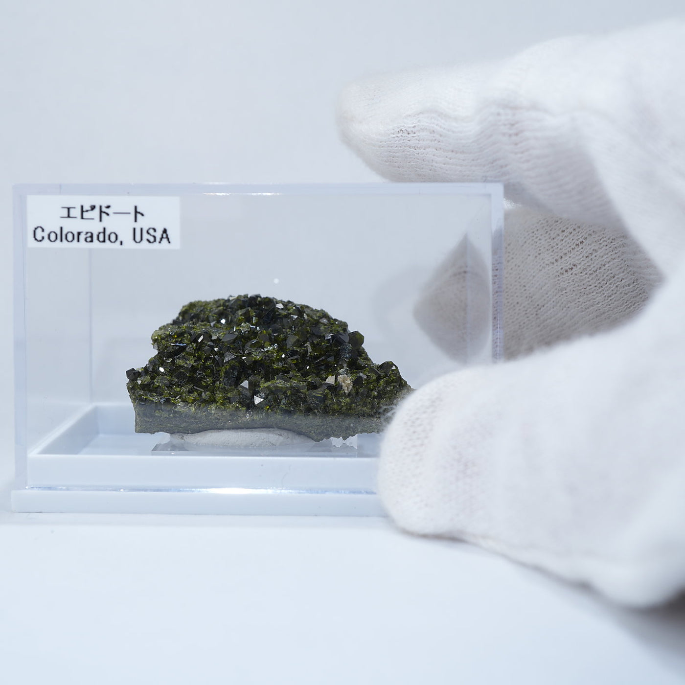 アメリカ コロラド州産のエピドート(緑簾石)です。照りのあるオリーブグリーンの結晶がきらきらと美しい標本です。【産地】Calumet Mine, Chaffee County, Colorado, USA