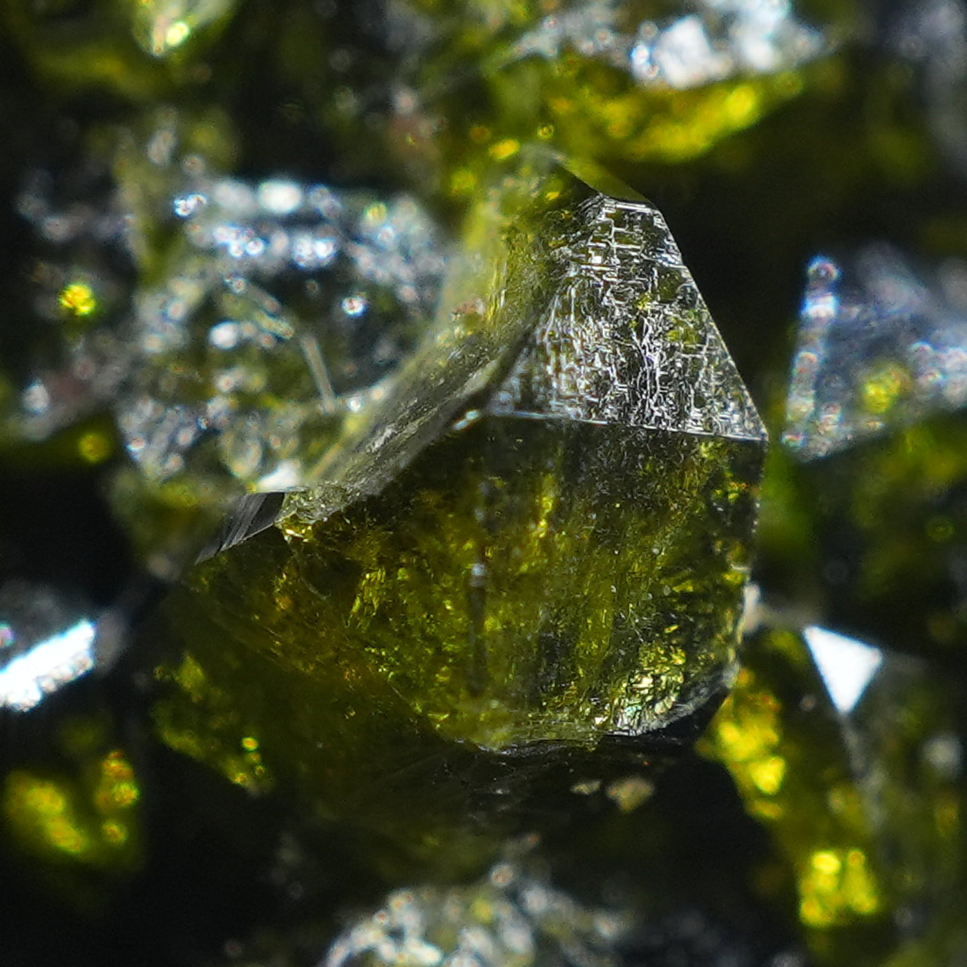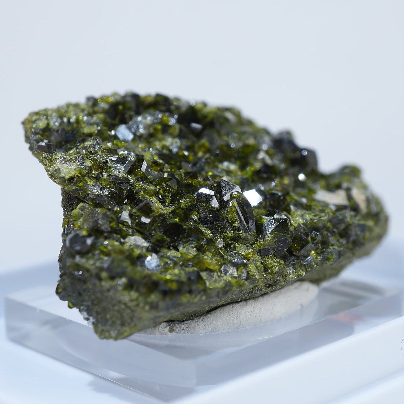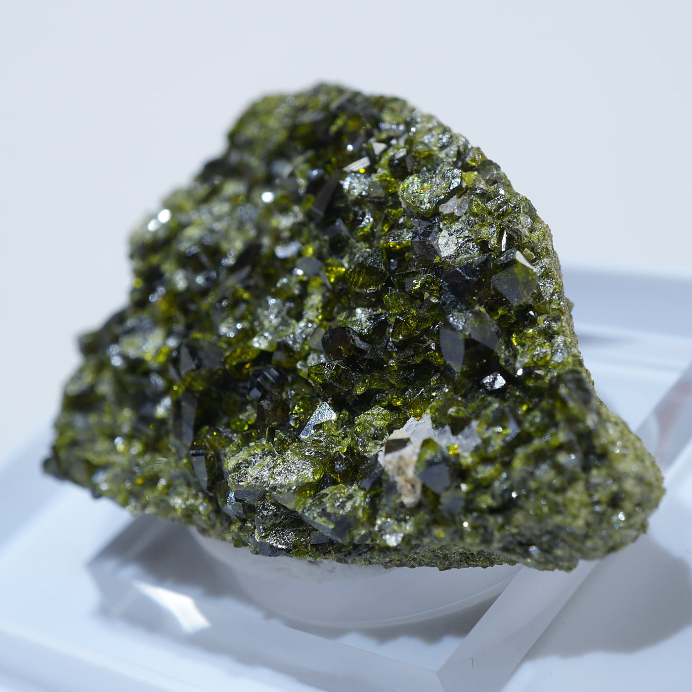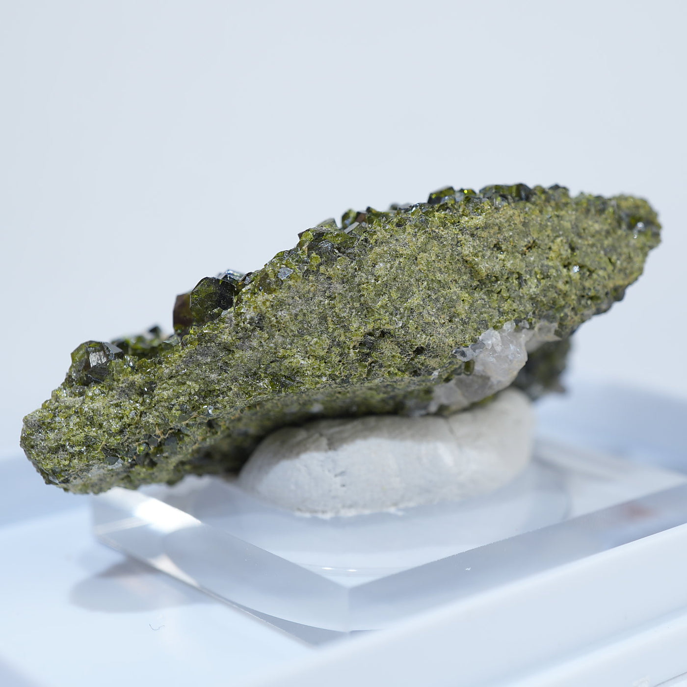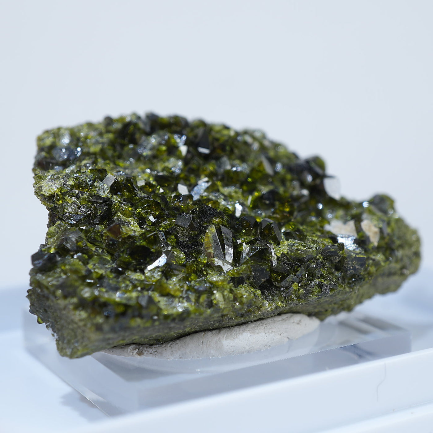 アメリカ コロラド州産のエピドート(緑簾石)です。照りのあるオリーブグリーンの結晶がきらきらと美しい標本です。【産地】Calumet Mine, Chaffee County, Colorado, USA