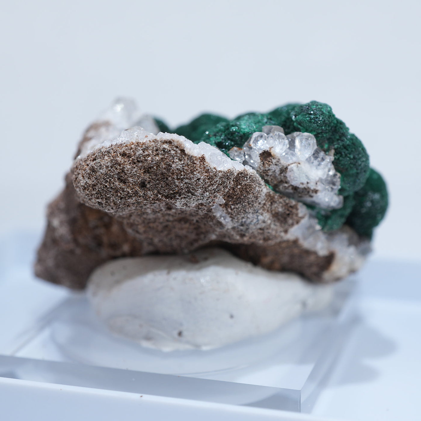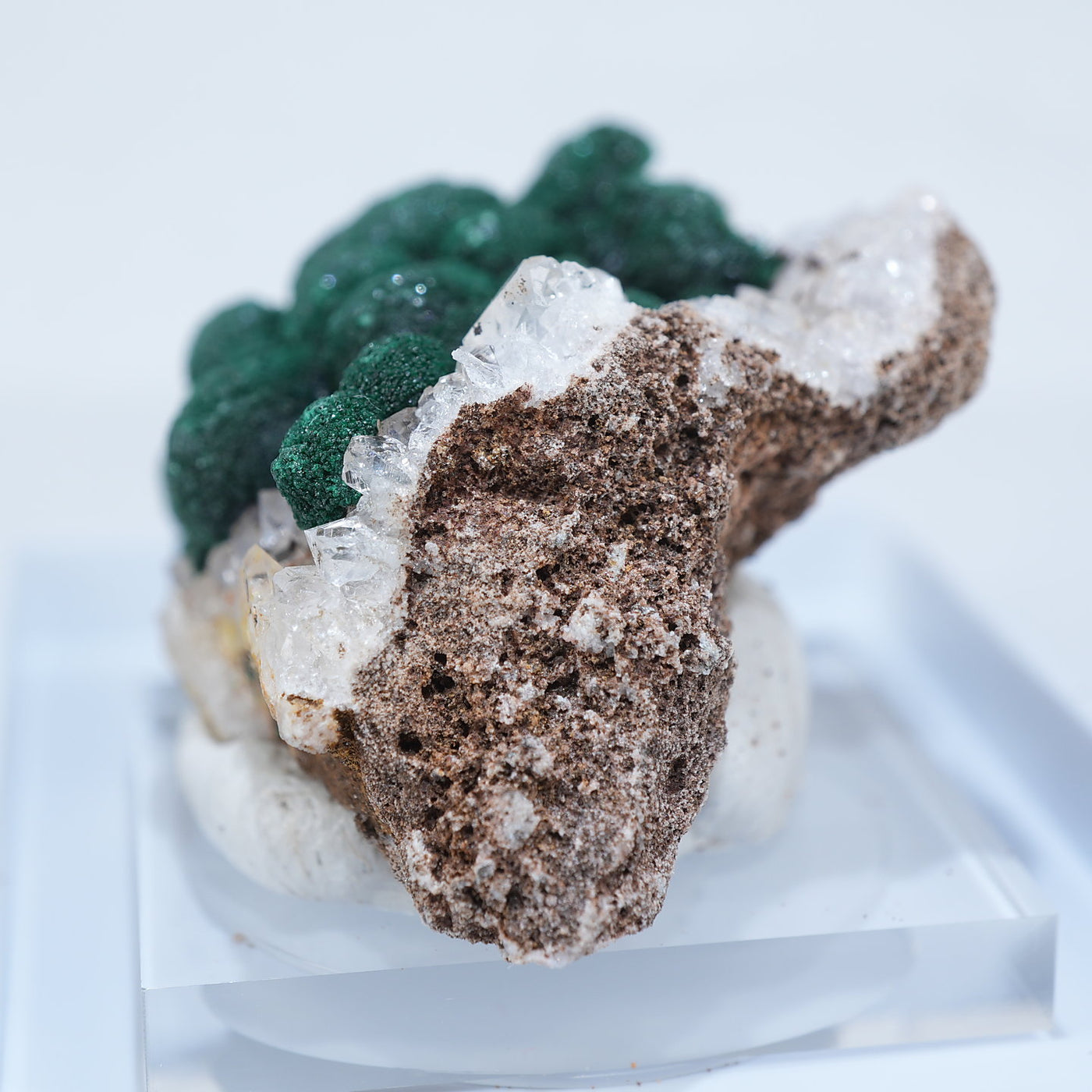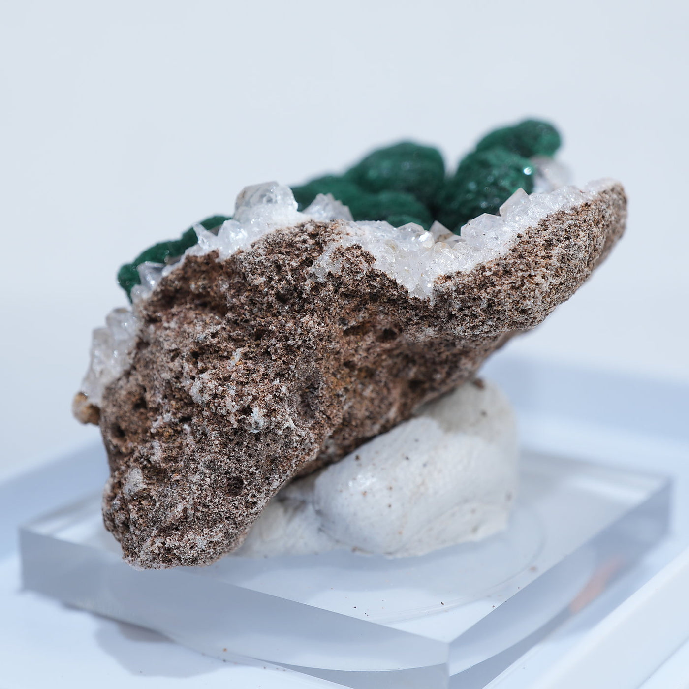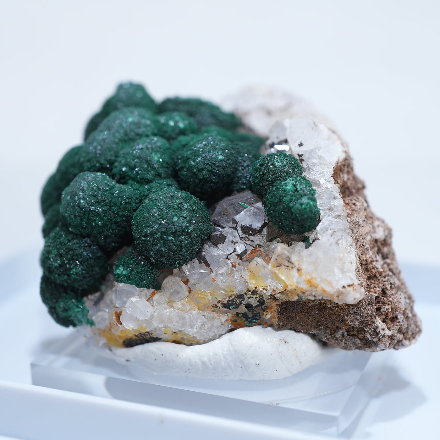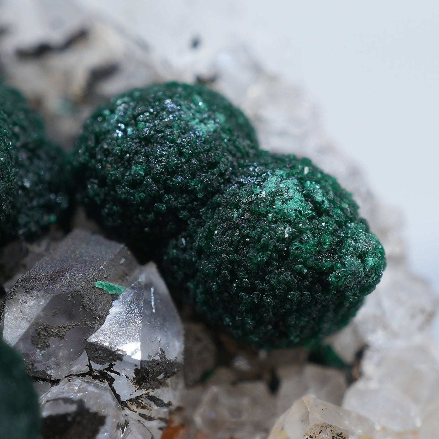 球状の鮮やかな濃いグリーンの美しい標本です。母岩とのコントラストも綺麗です。