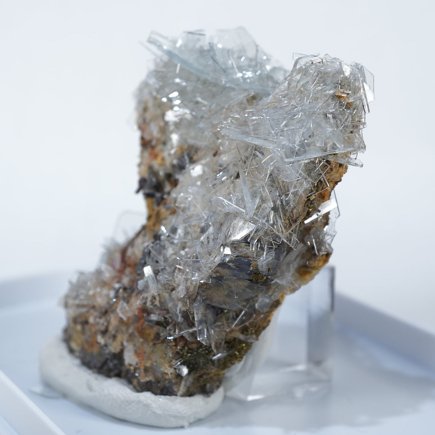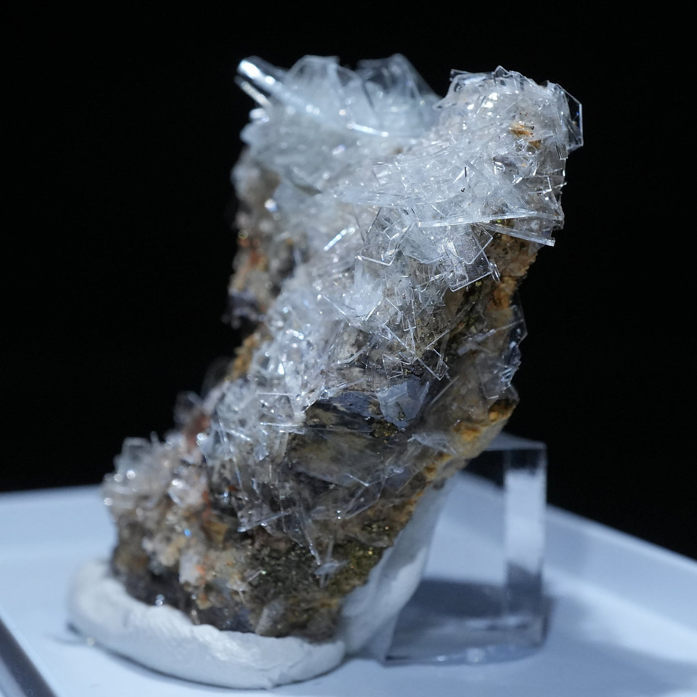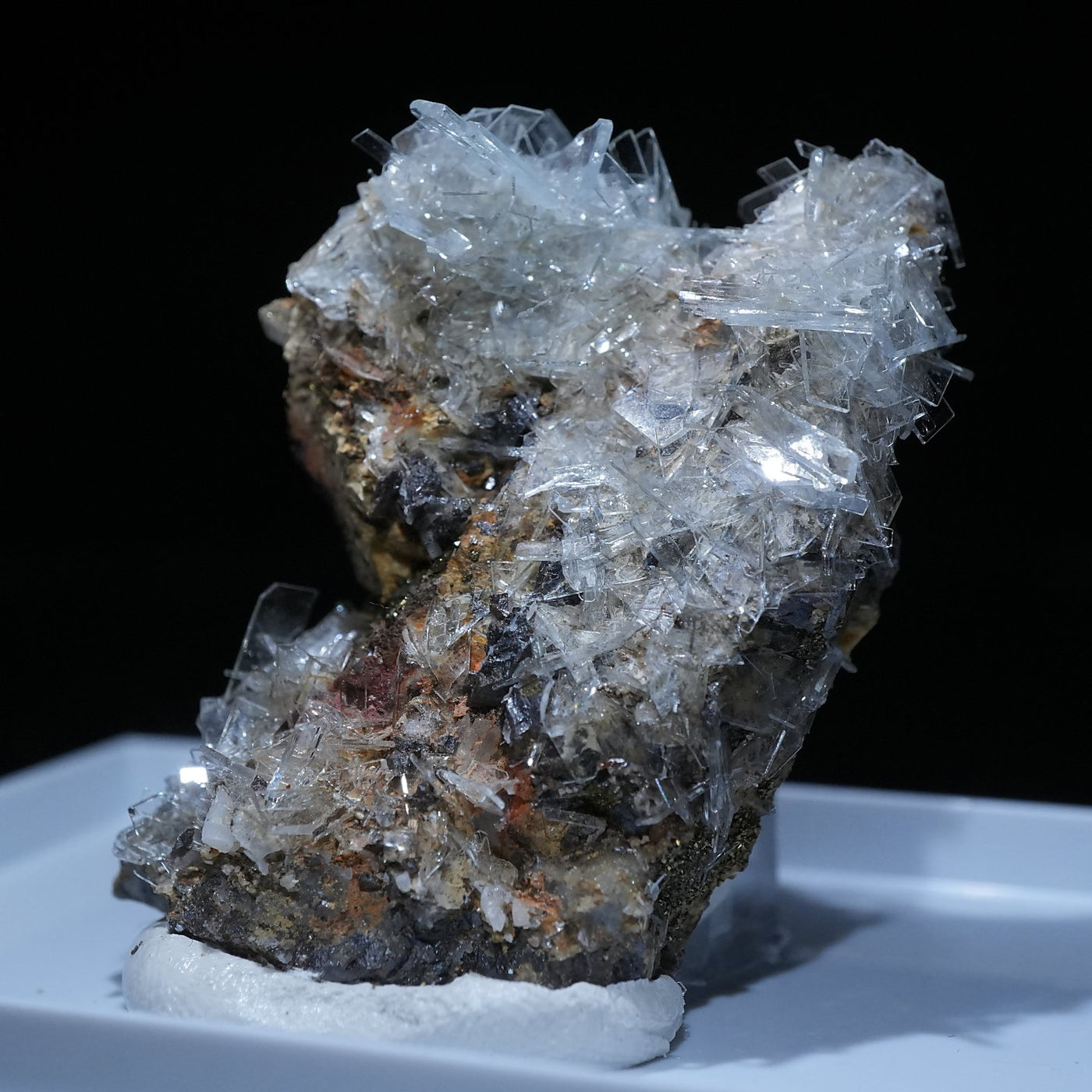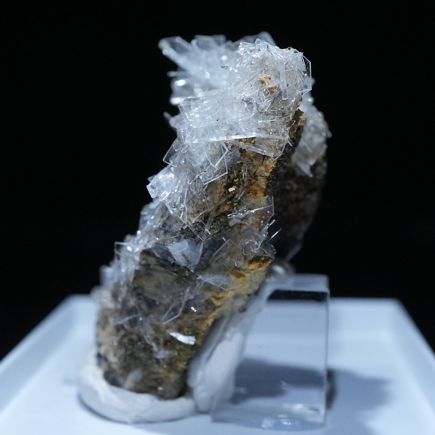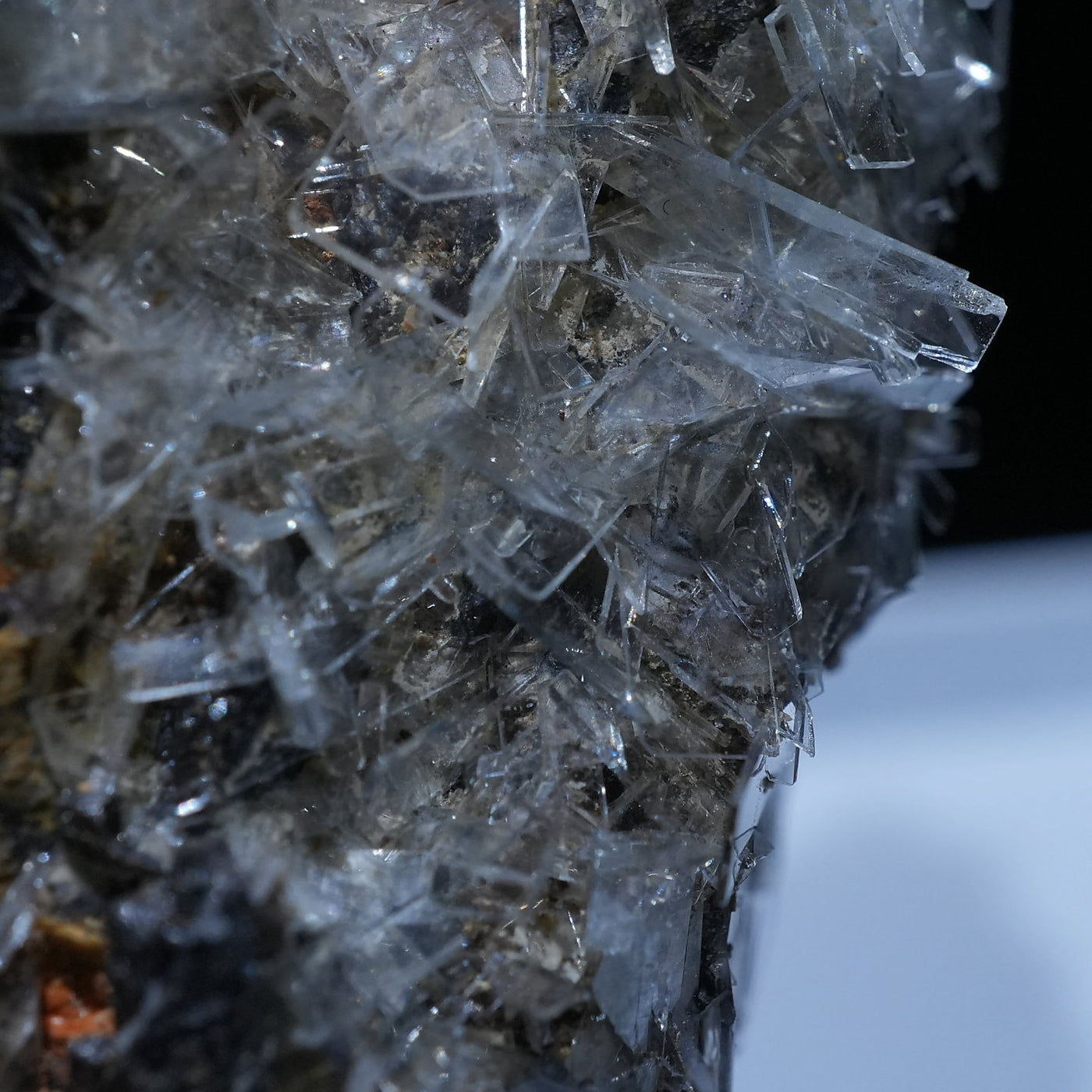 照りのある透明の繊細な結晶が印象的です。母岩いっぱいにに広がる立体感豊かな姿が非常に美しい標本です。