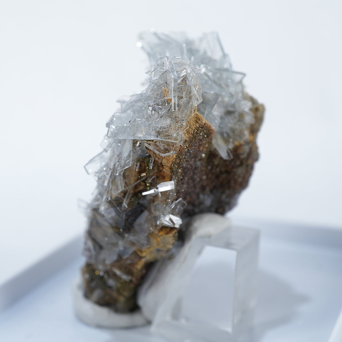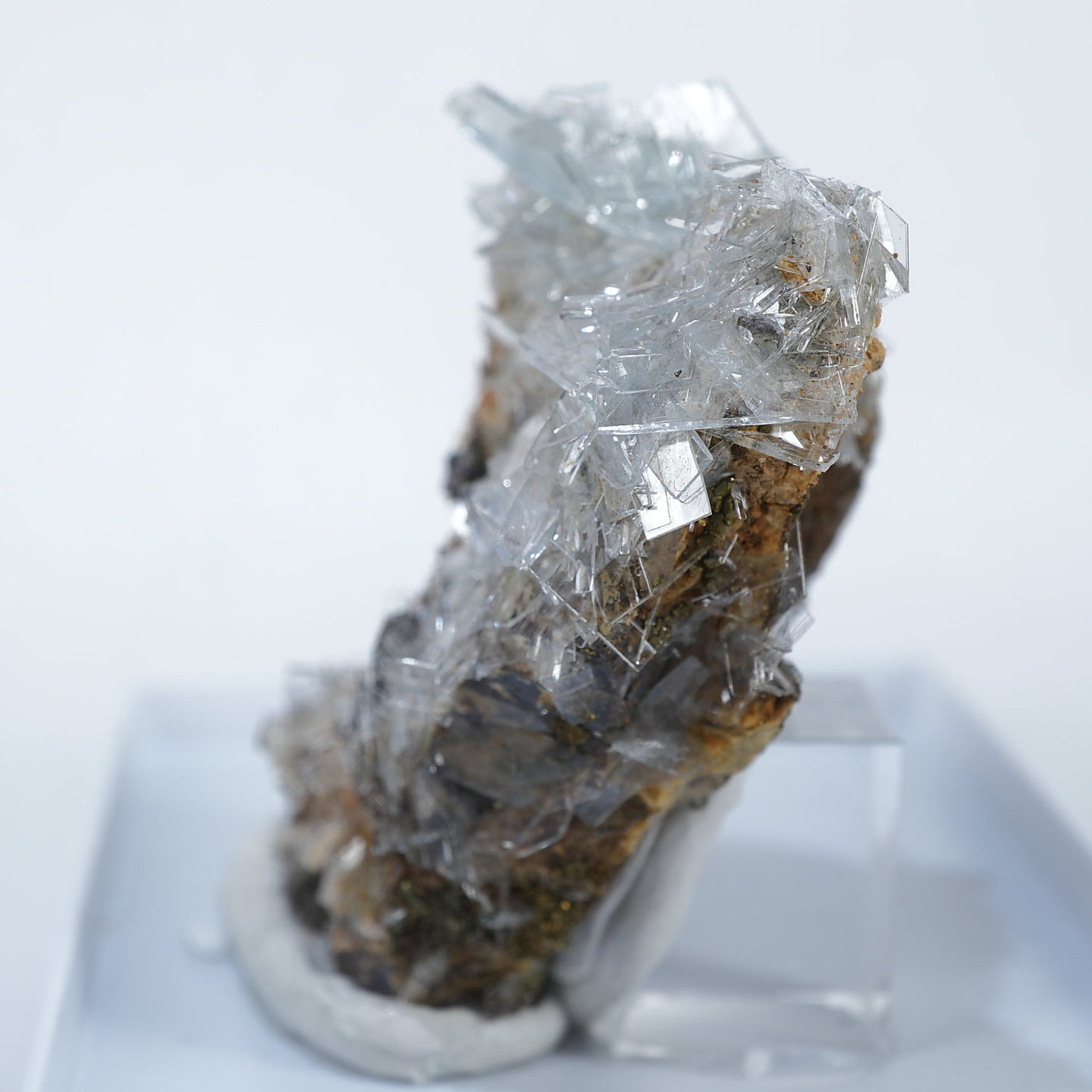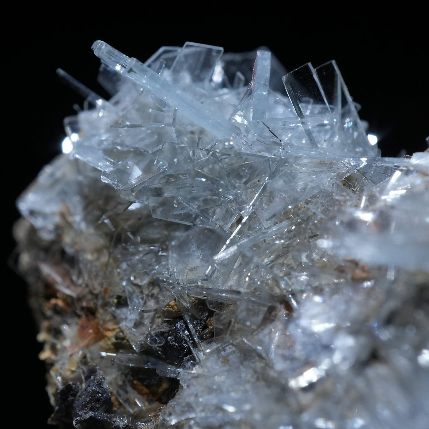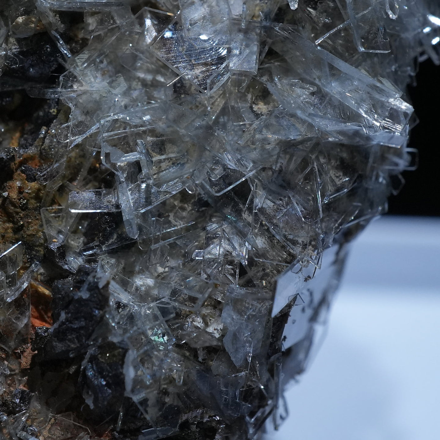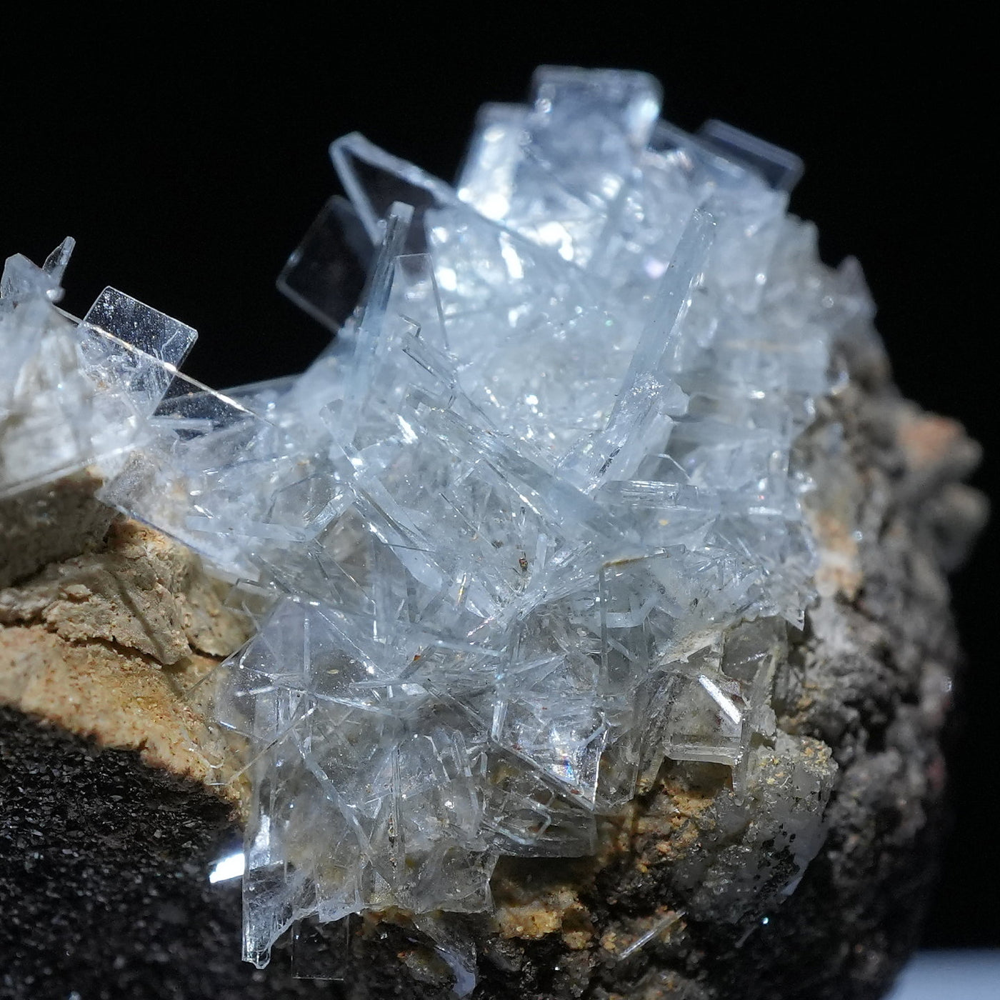 照りのある透明の繊細な結晶が印象的です。母岩いっぱいにに広がる立体感豊かな姿が非常に美しい標本です。