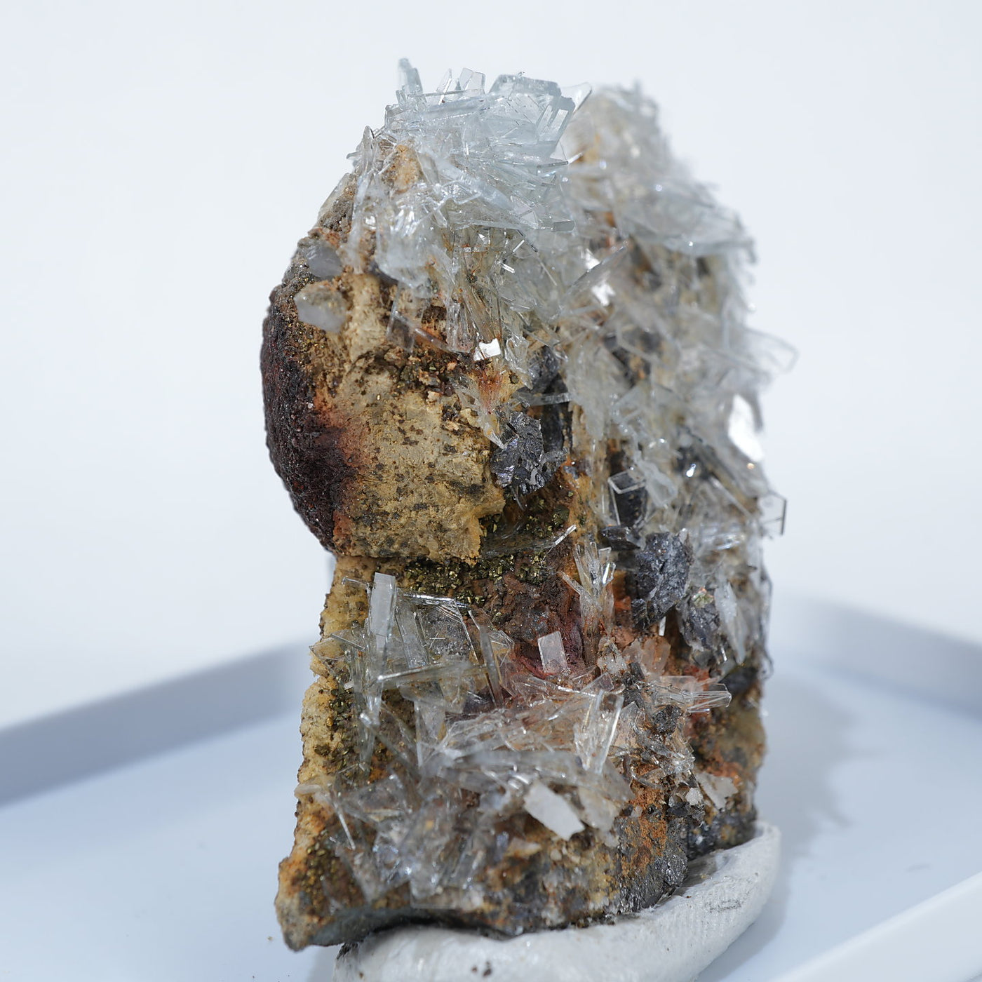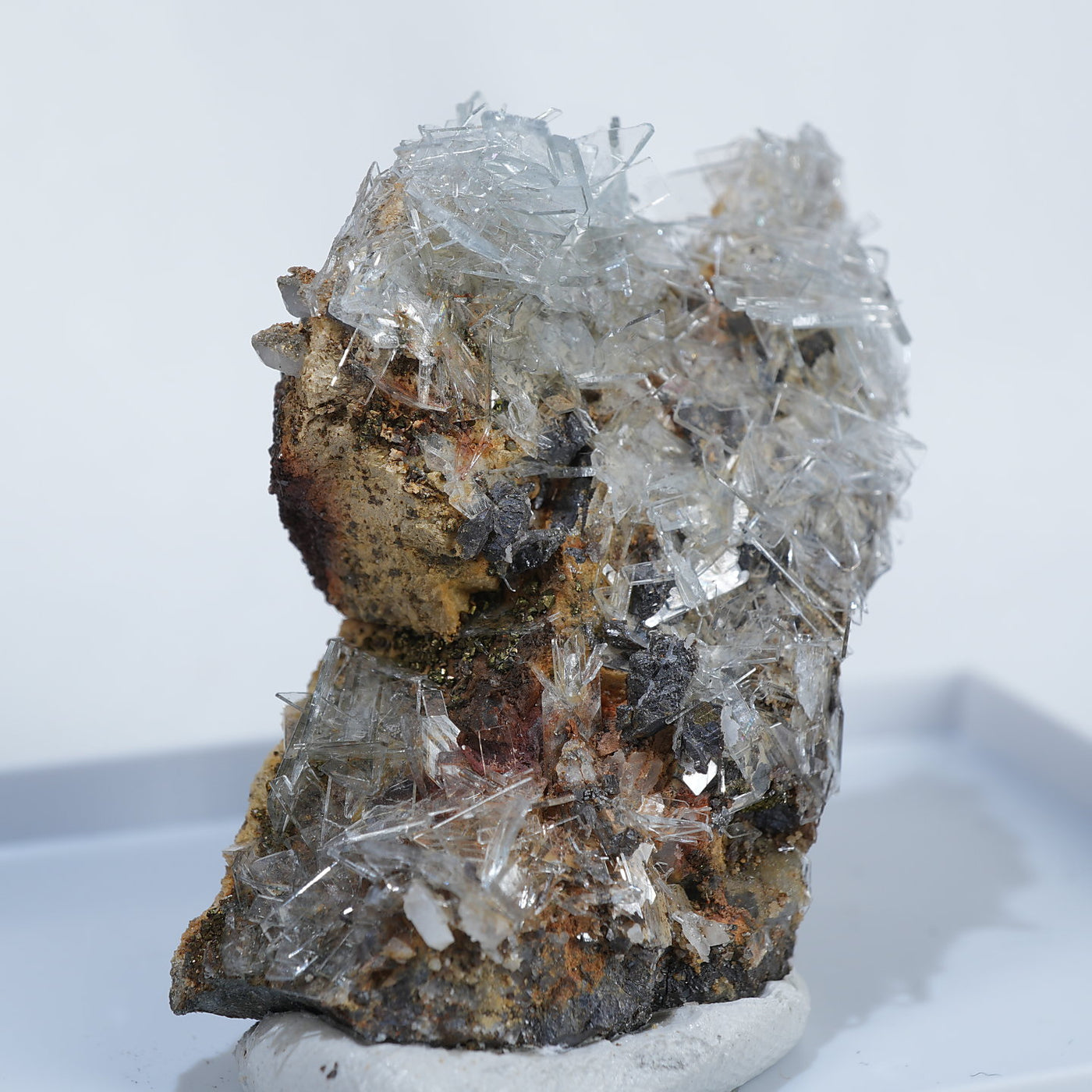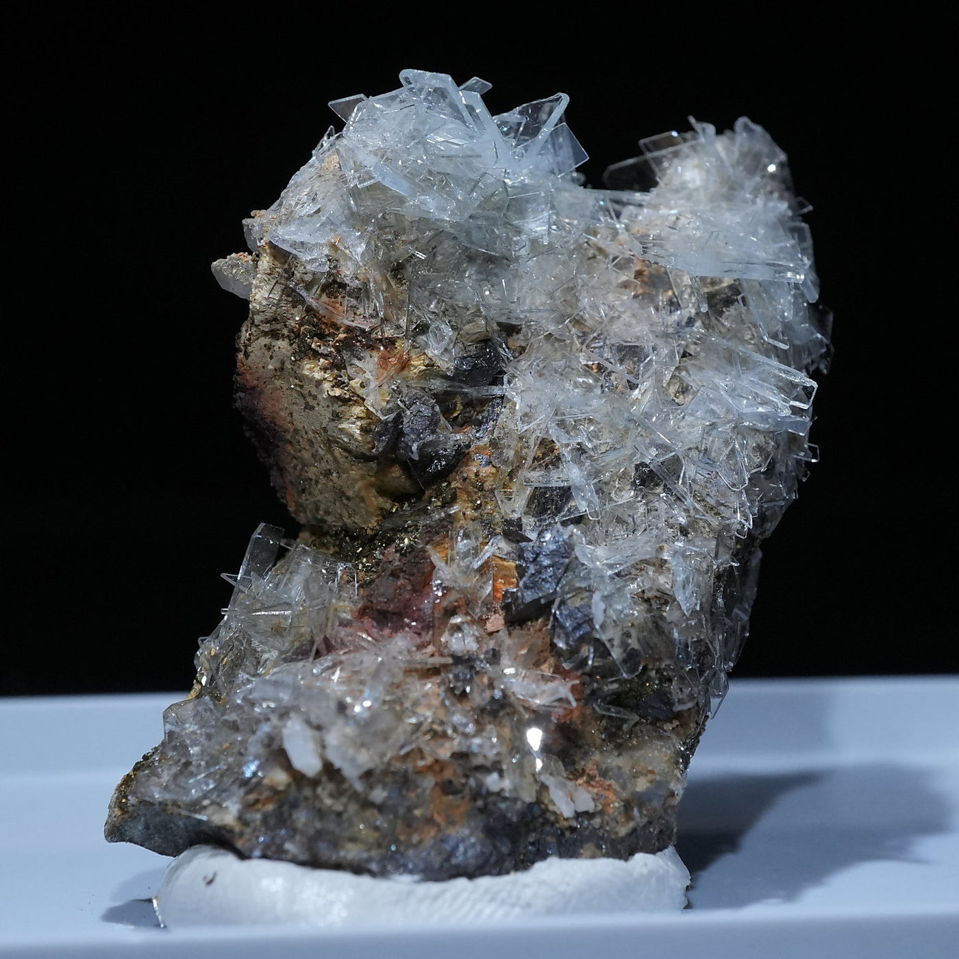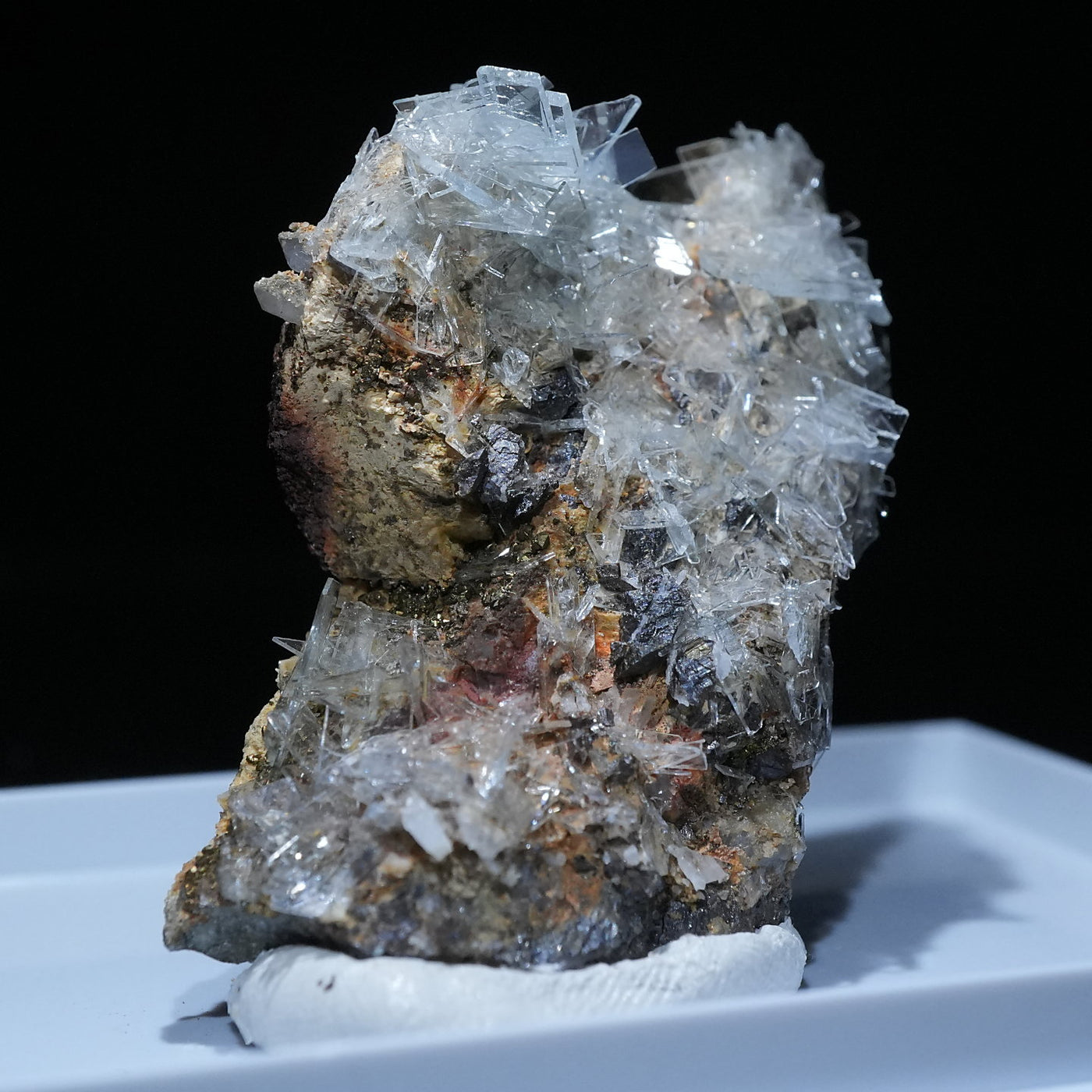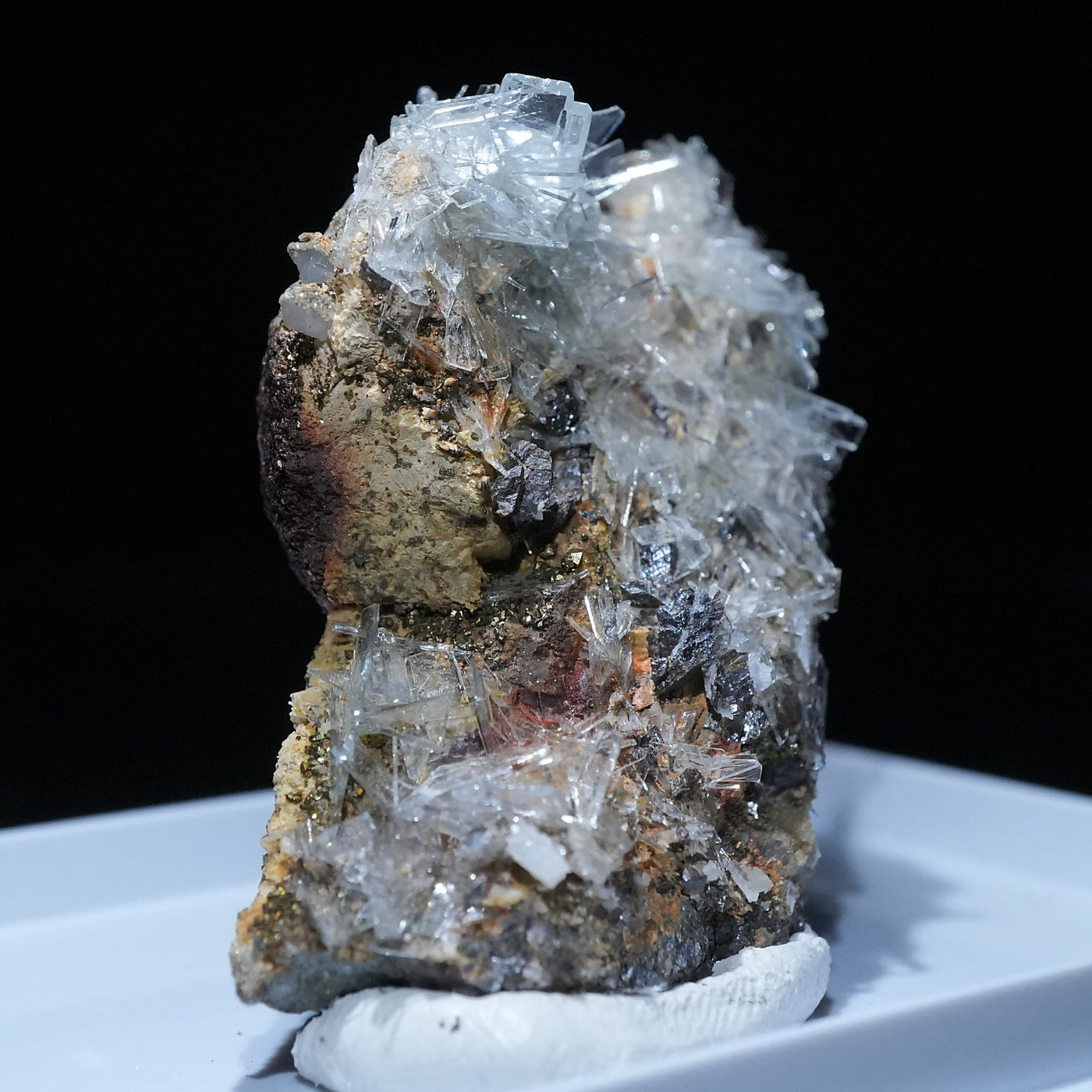 照りのある透明の繊細な結晶が印象的です。母岩いっぱいにに広がる立体感豊かな姿が非常に美しい標本です。